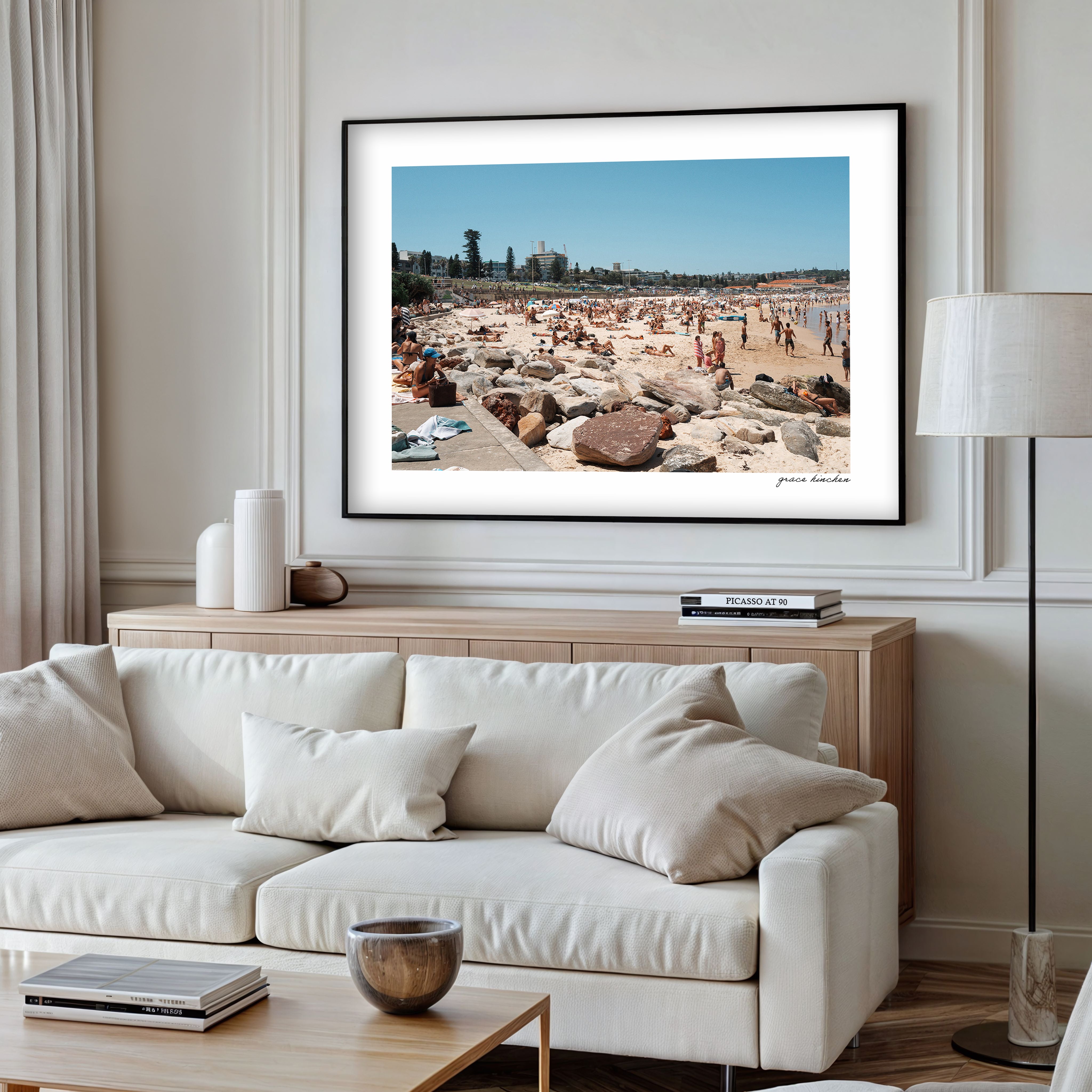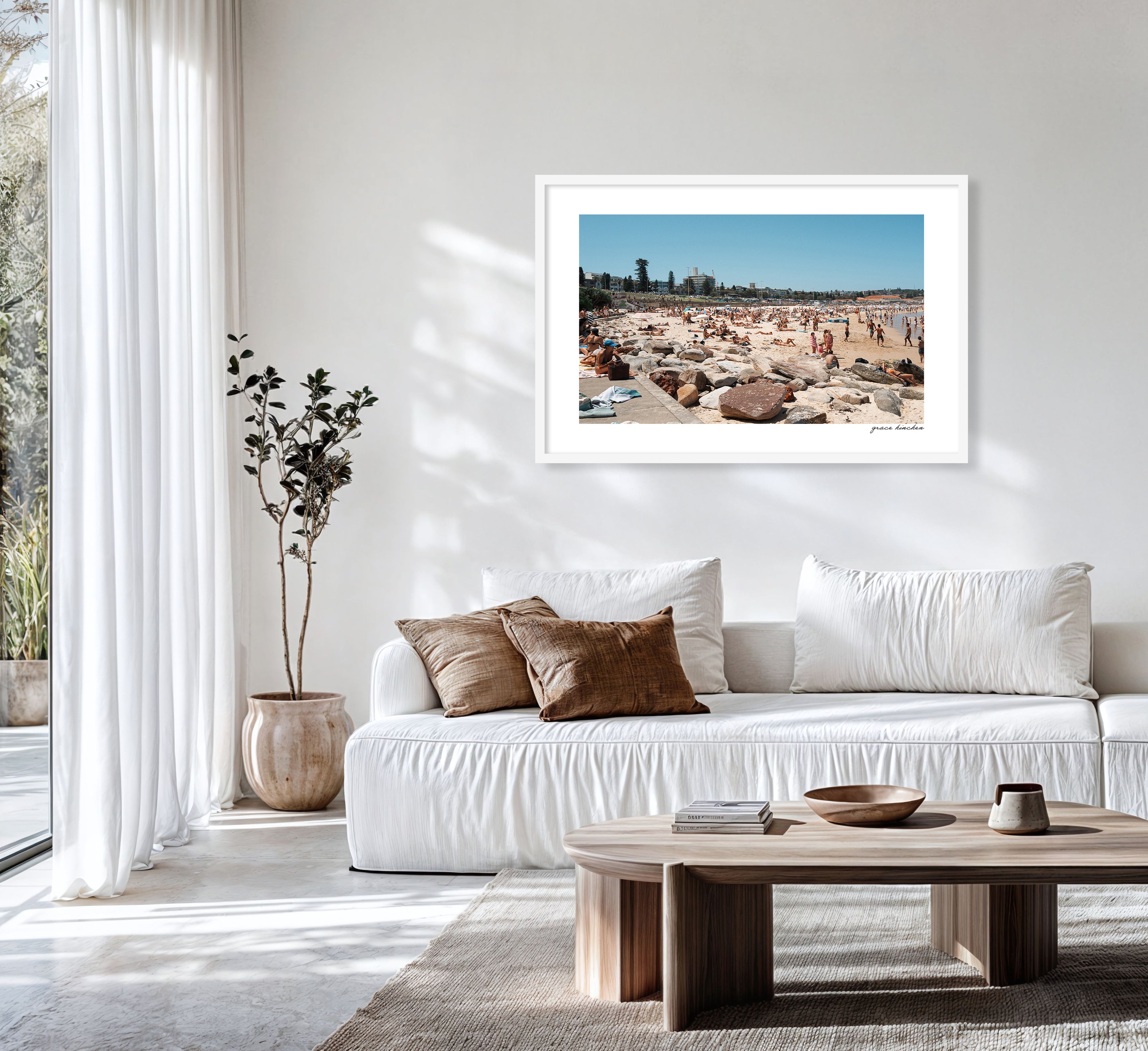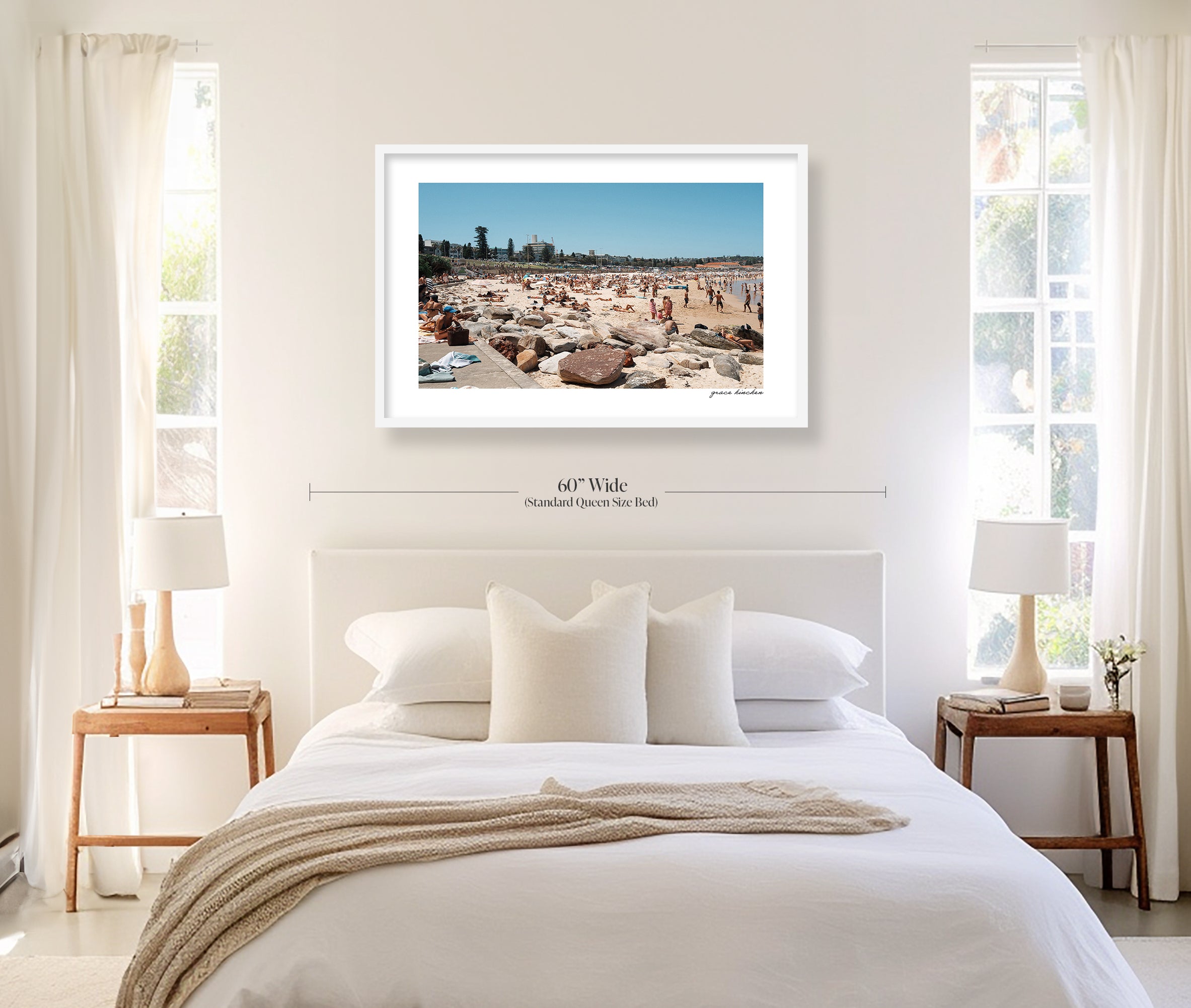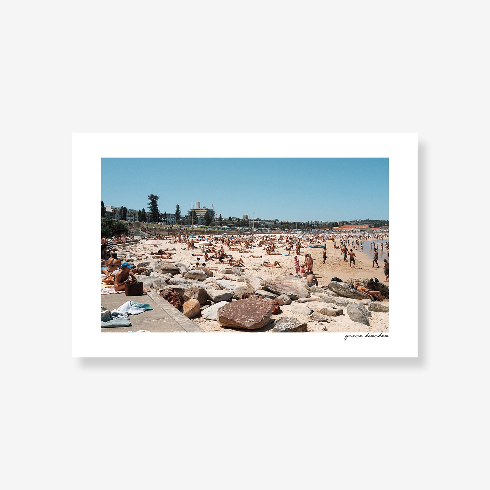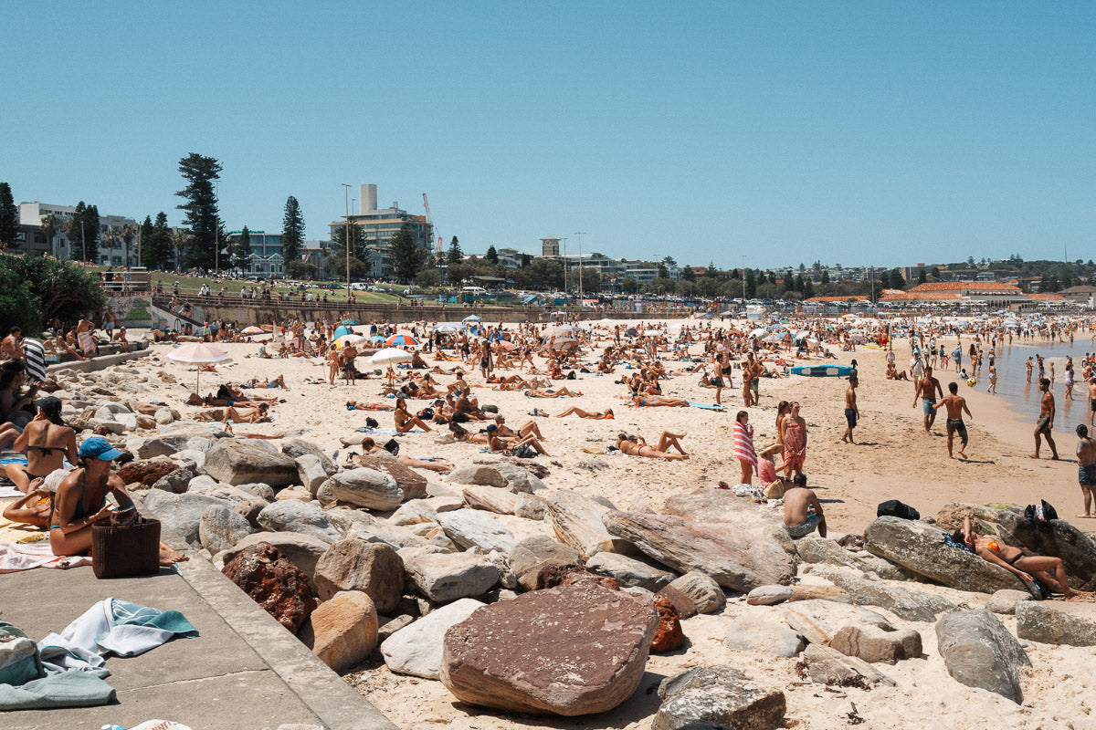 The area known as 'Backpackers' at the southern end of Bondi Beach fills with beachgoers. The nickname comes from its proximity to the bus stop, making it a popular entry point for tourists and backpackers, January 2025.