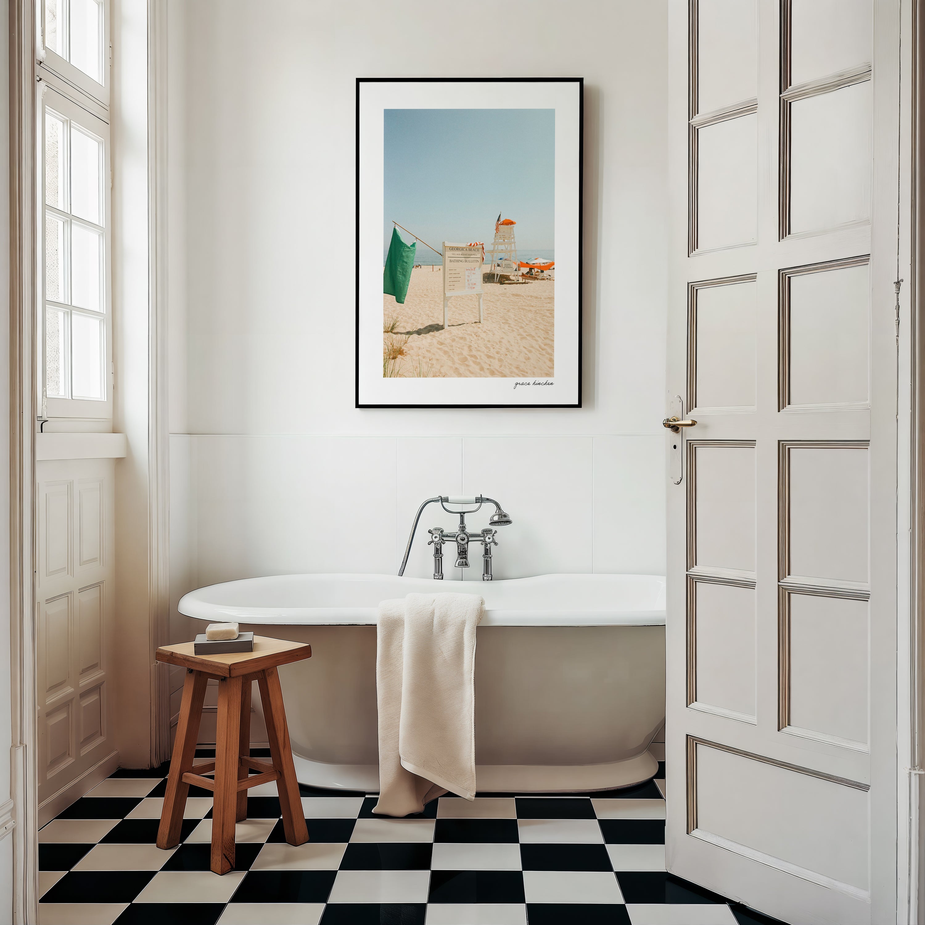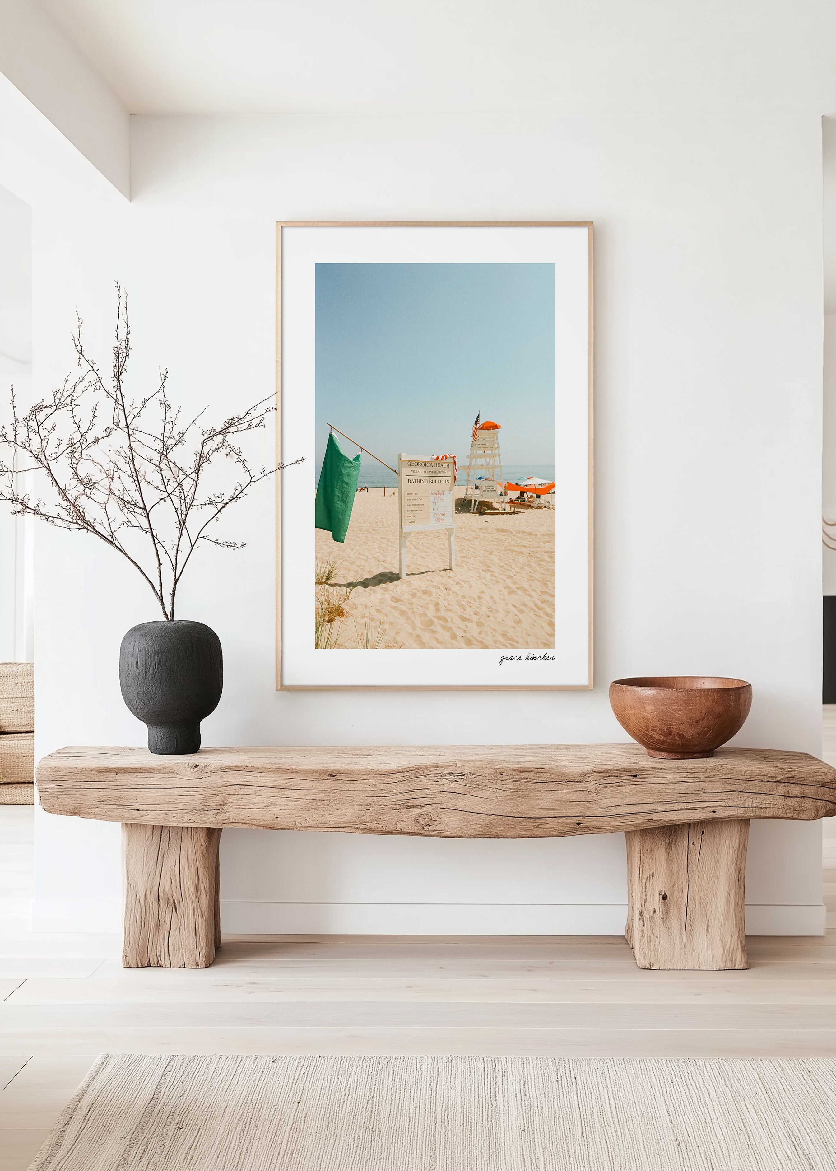 Georgica Beach’s bathing bulletin shows perfect conditions for a day by the ocean. Shot on film, July 2025.