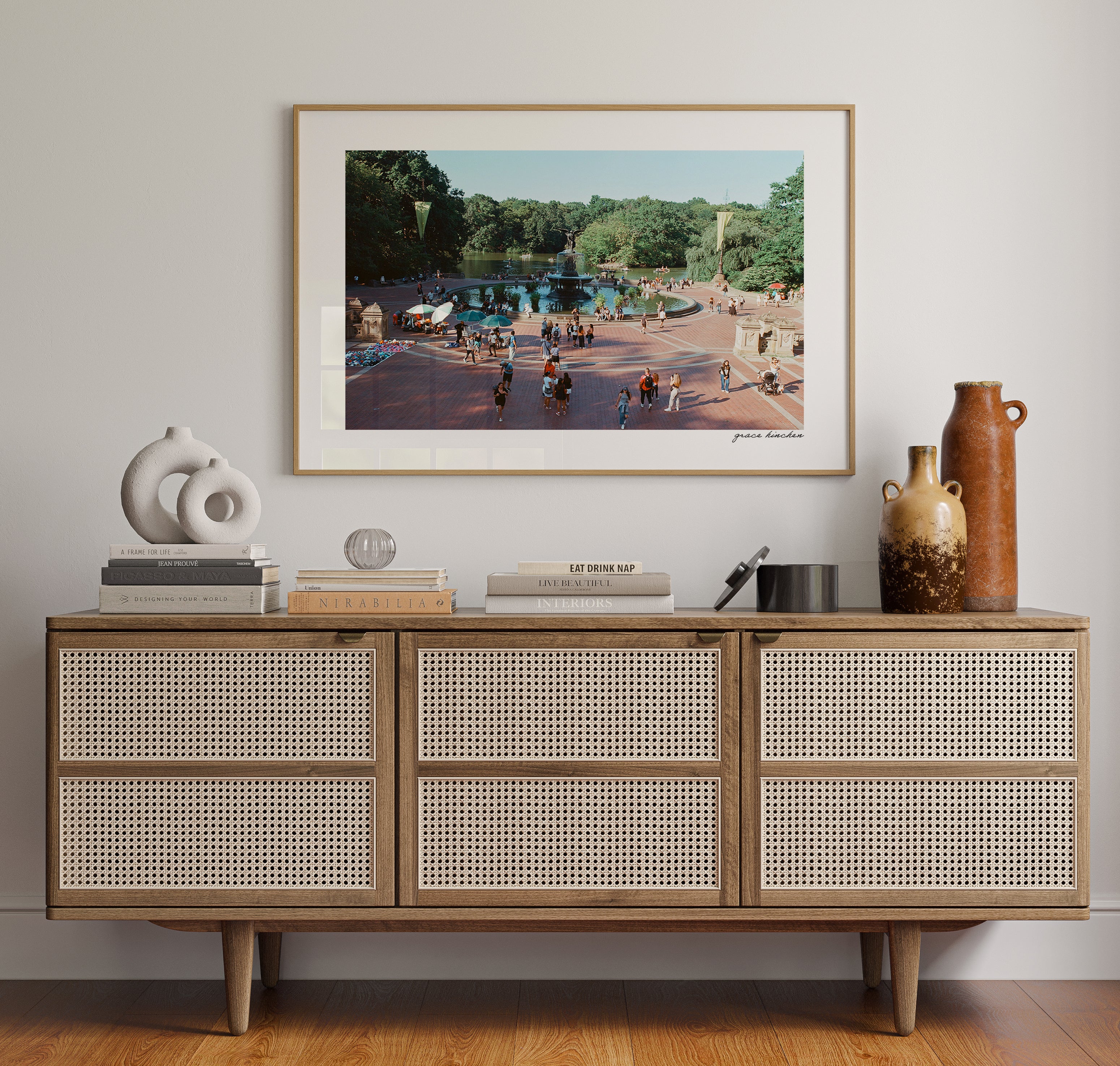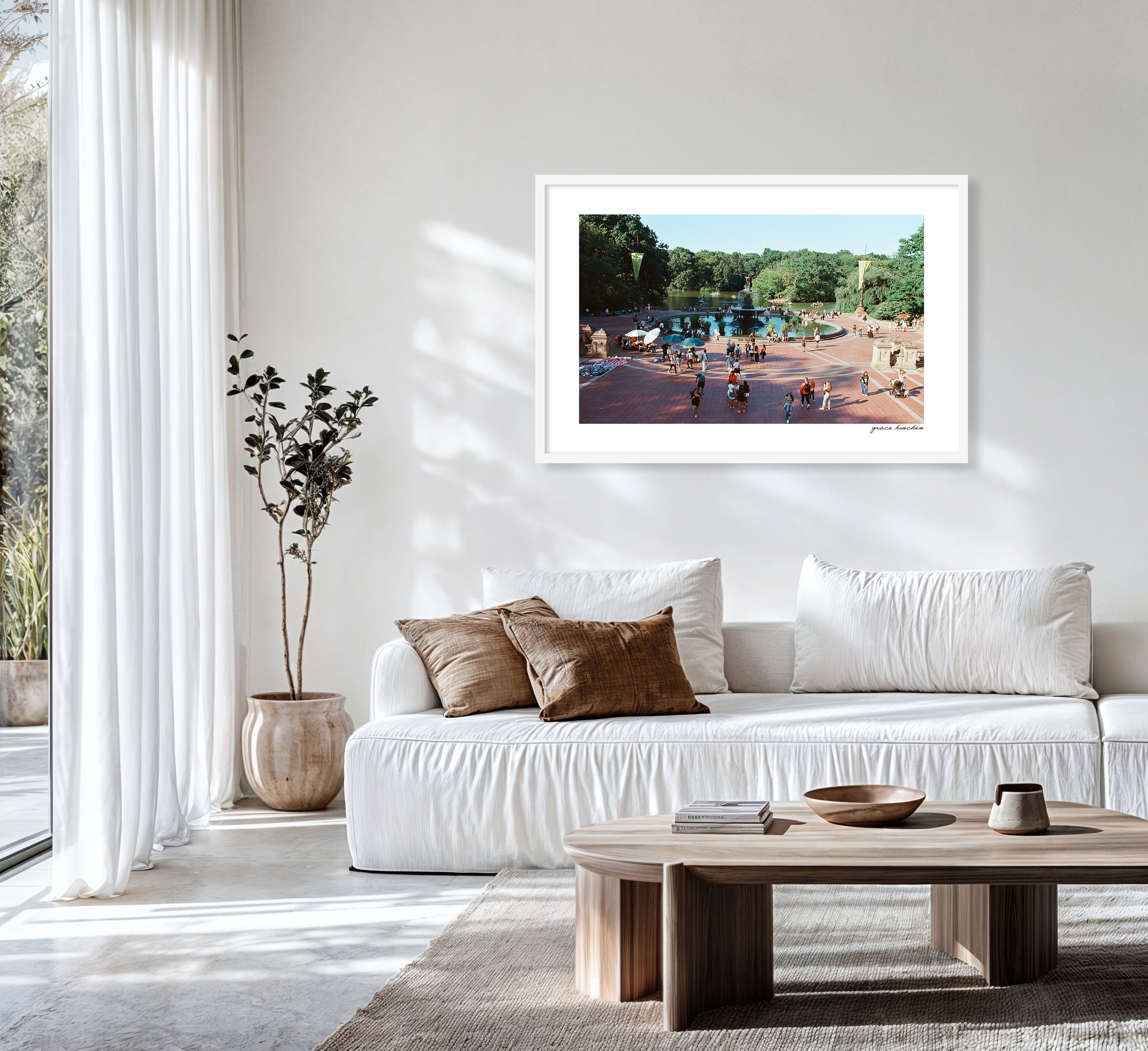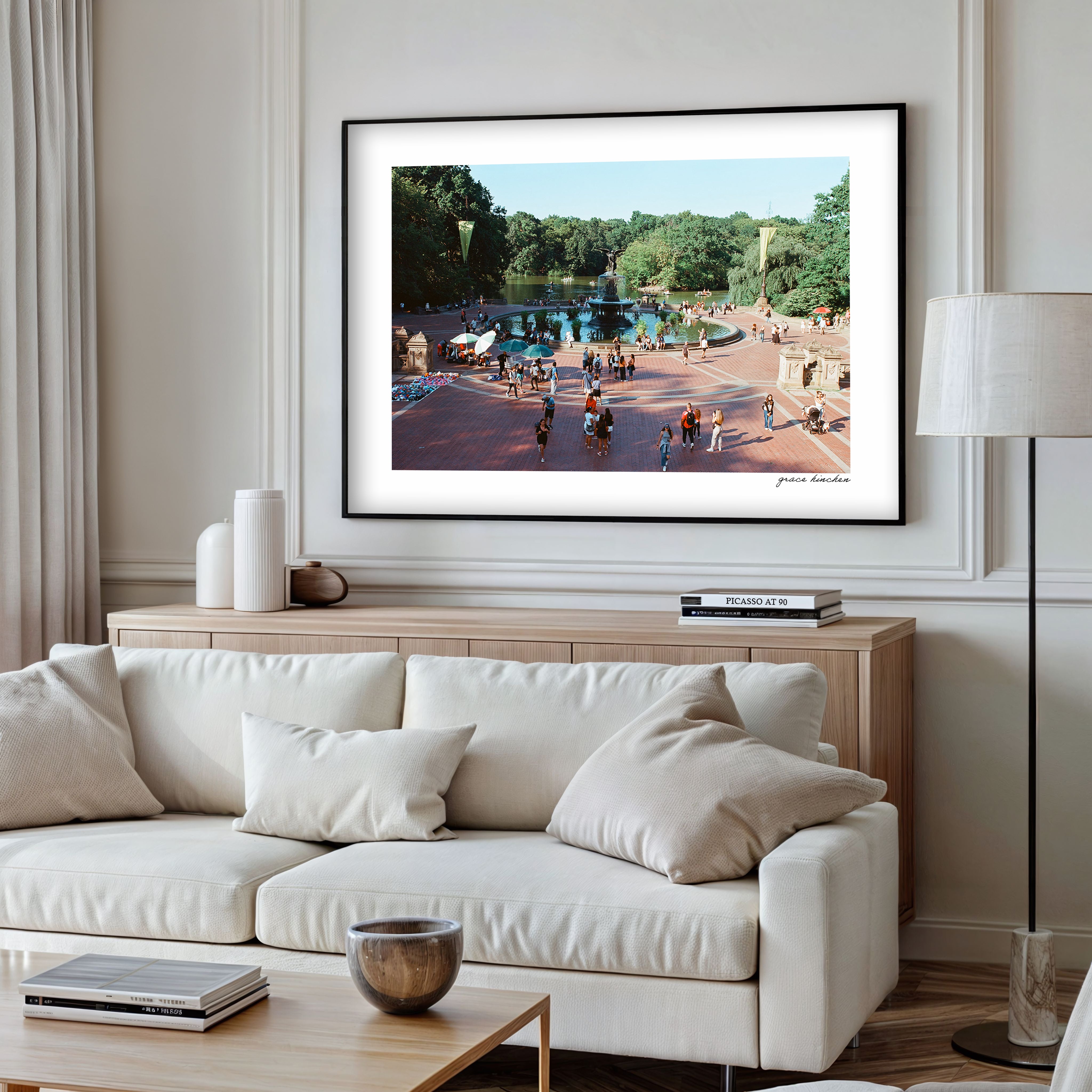 People gathered by Bethesda Fountain in Central Park, New York City, on a summer day, July 2024. Shot on film.