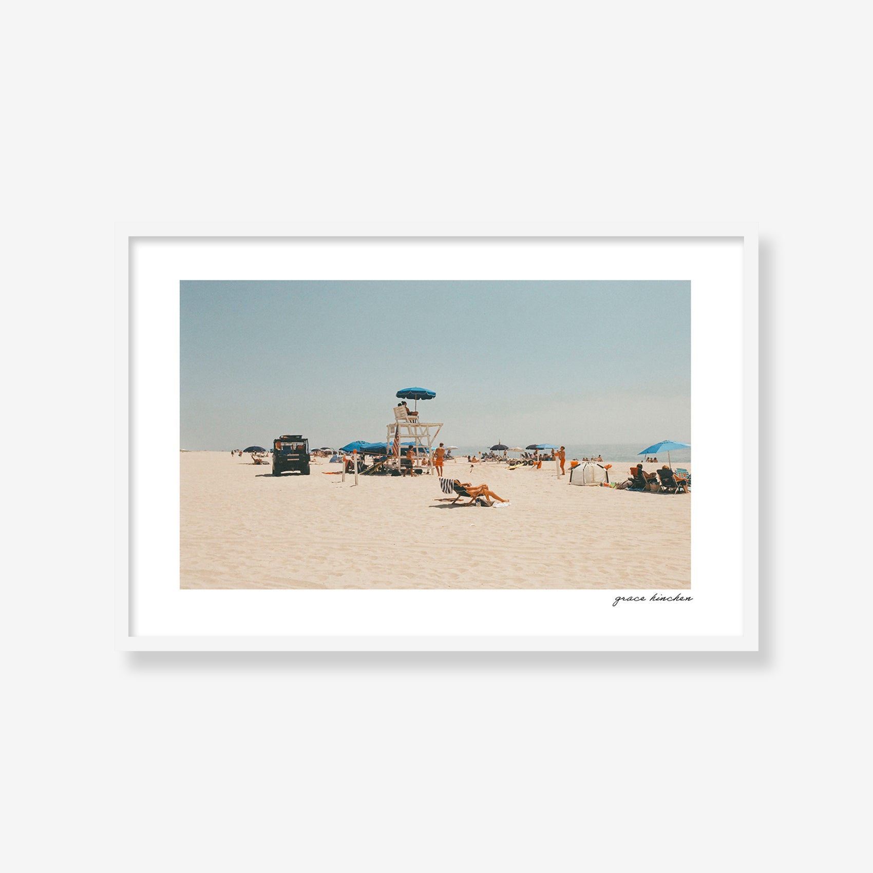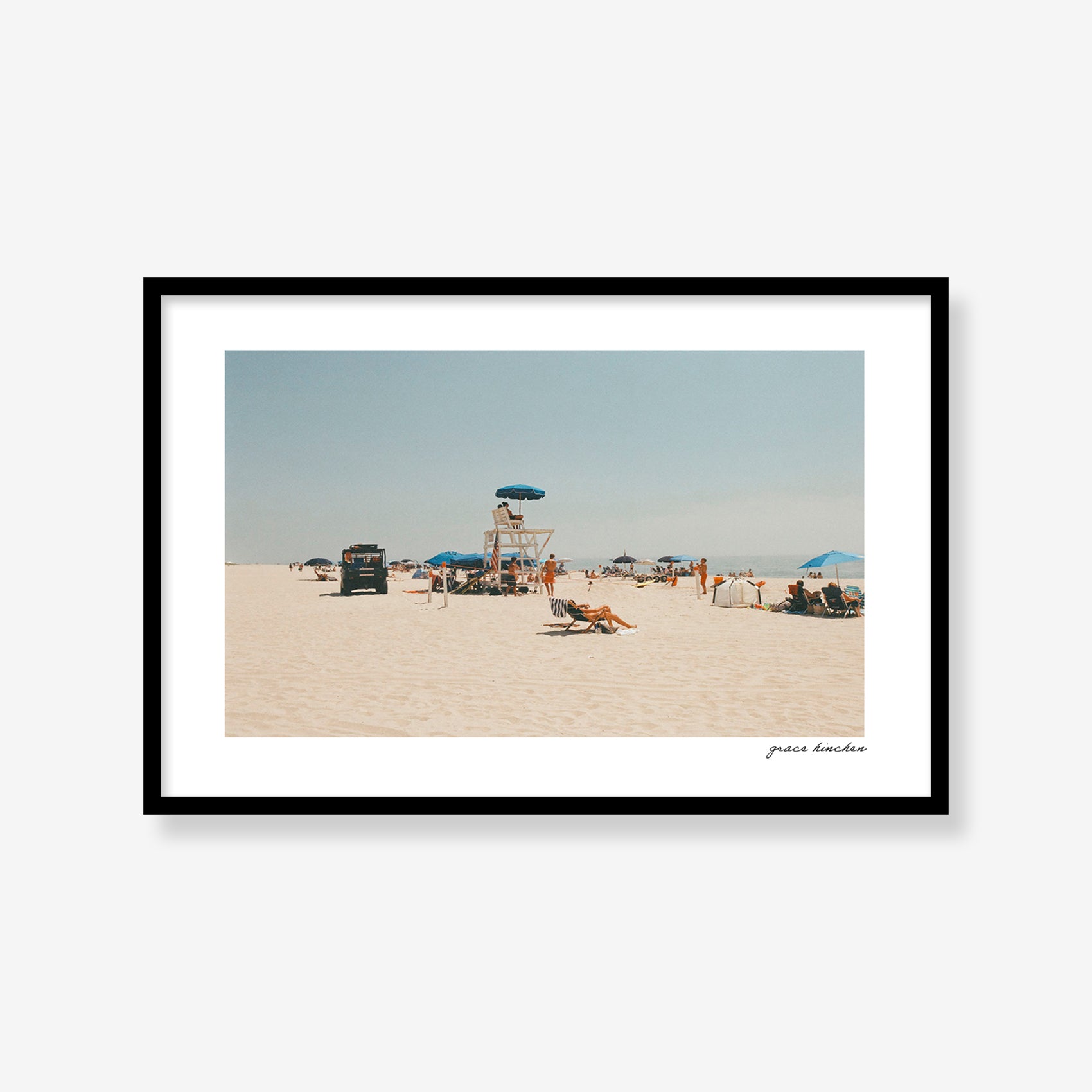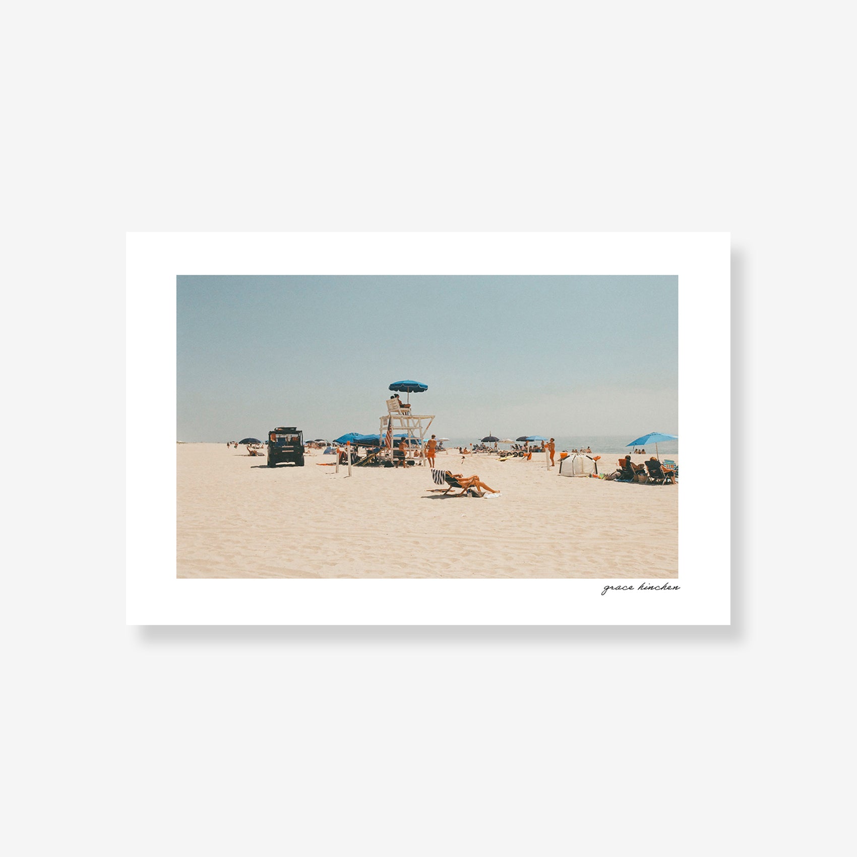 At Coopers Beach, voted number one in America, a woman works on her tan while the beach is in full swing. Shot on film, July 2025.