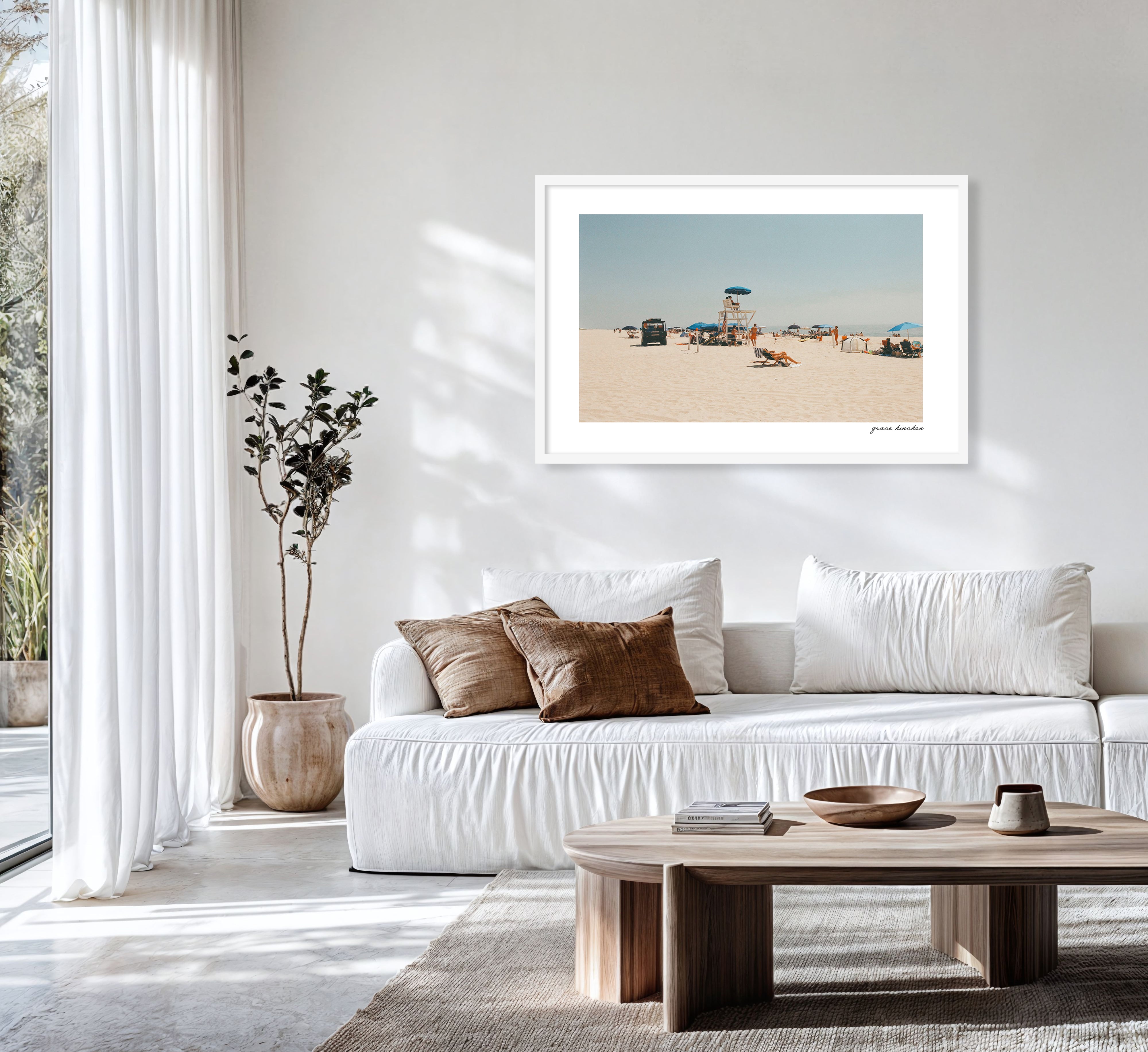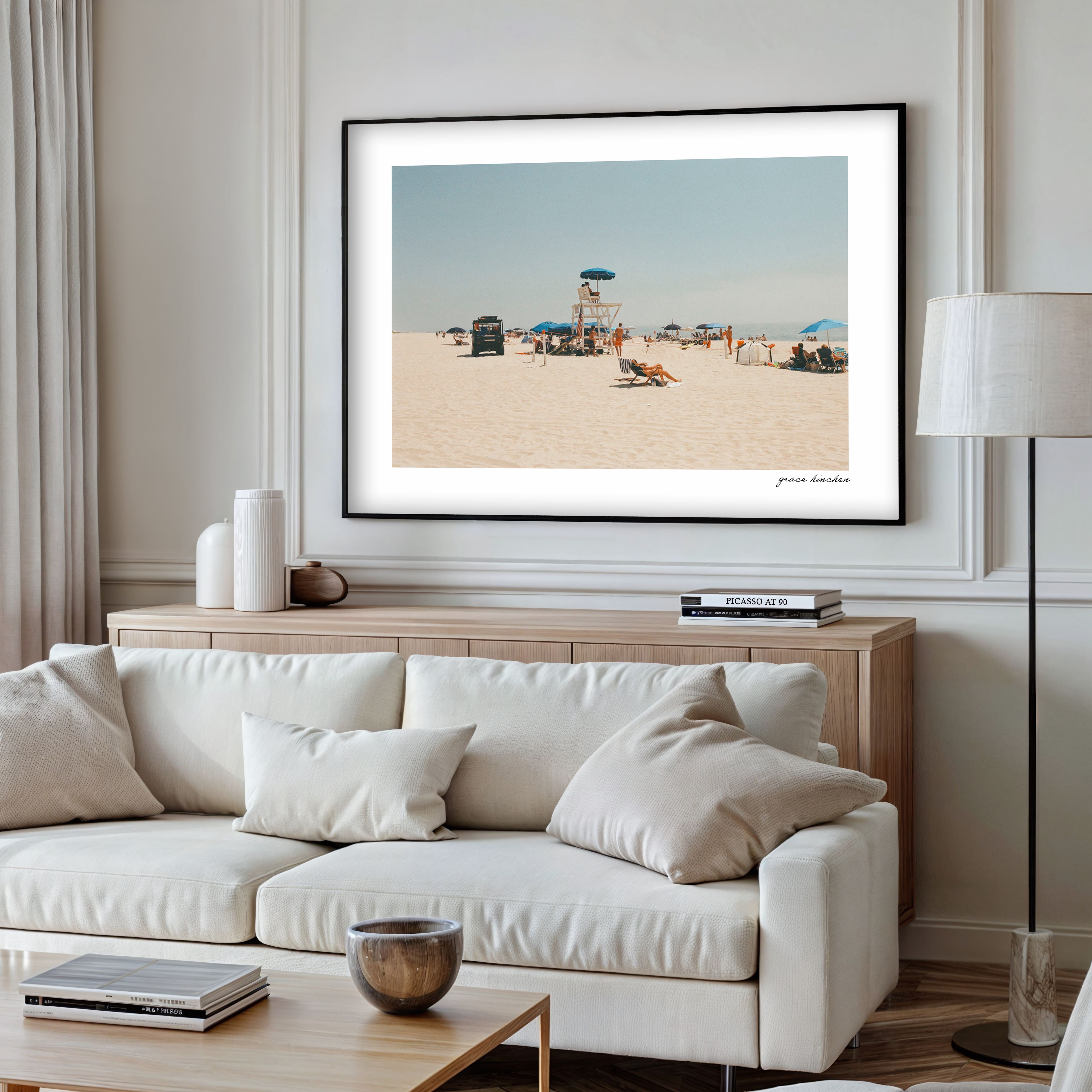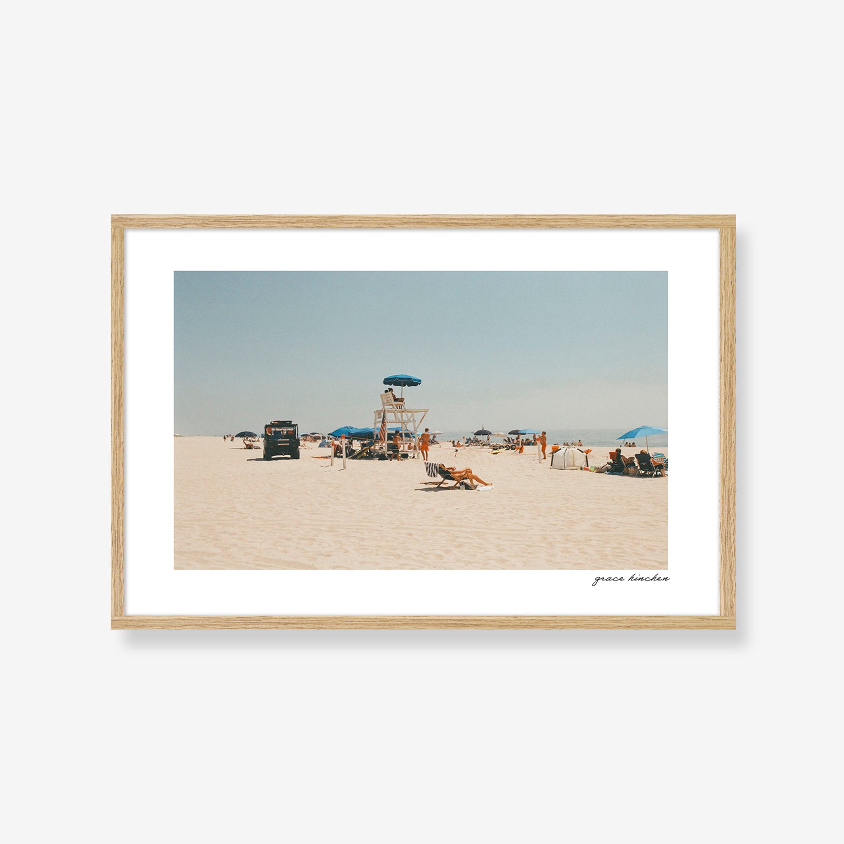 At Coopers Beach, voted number one in America, a woman works on her tan while the beach is in full swing. Shot on film, July 2025.