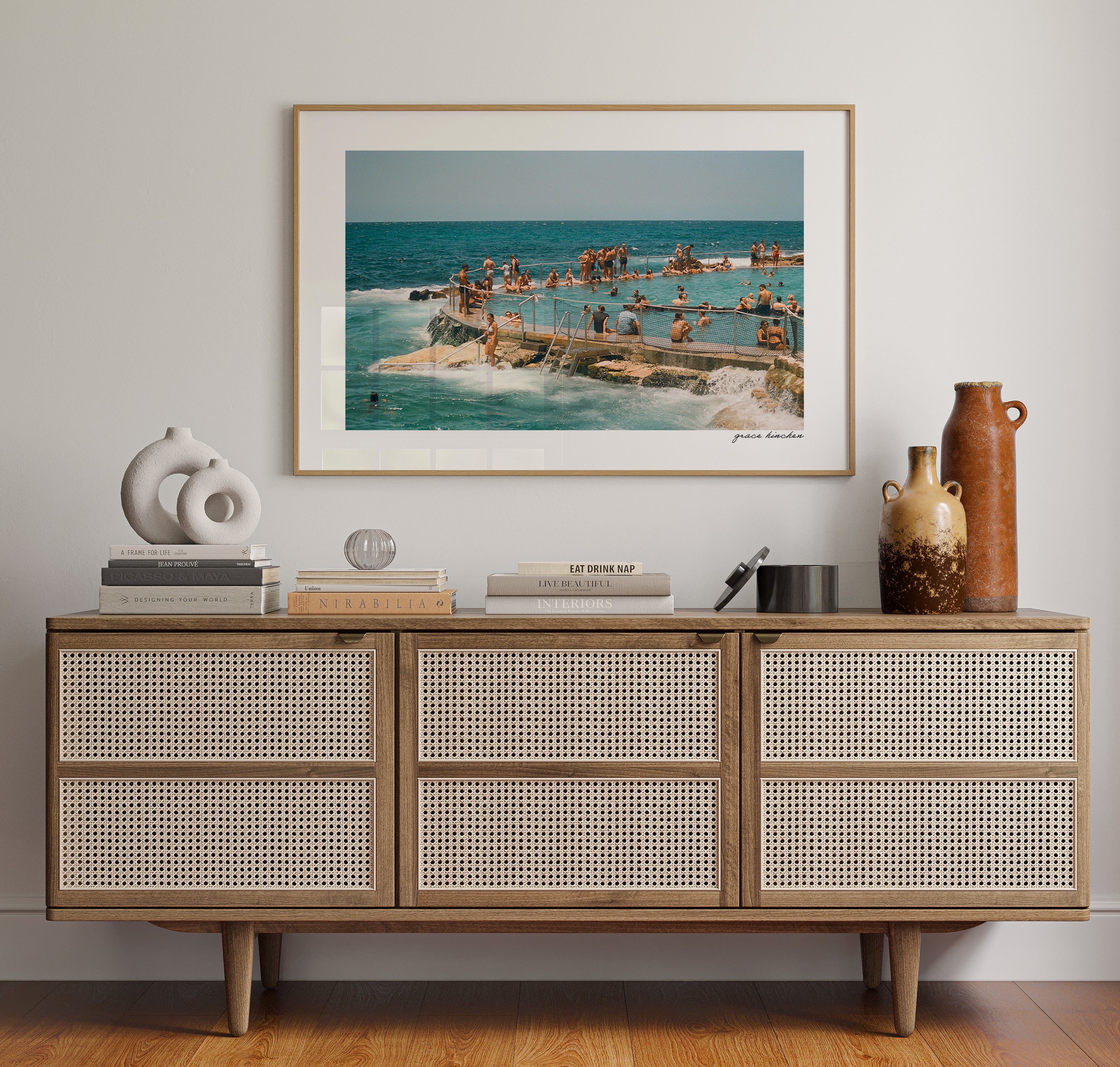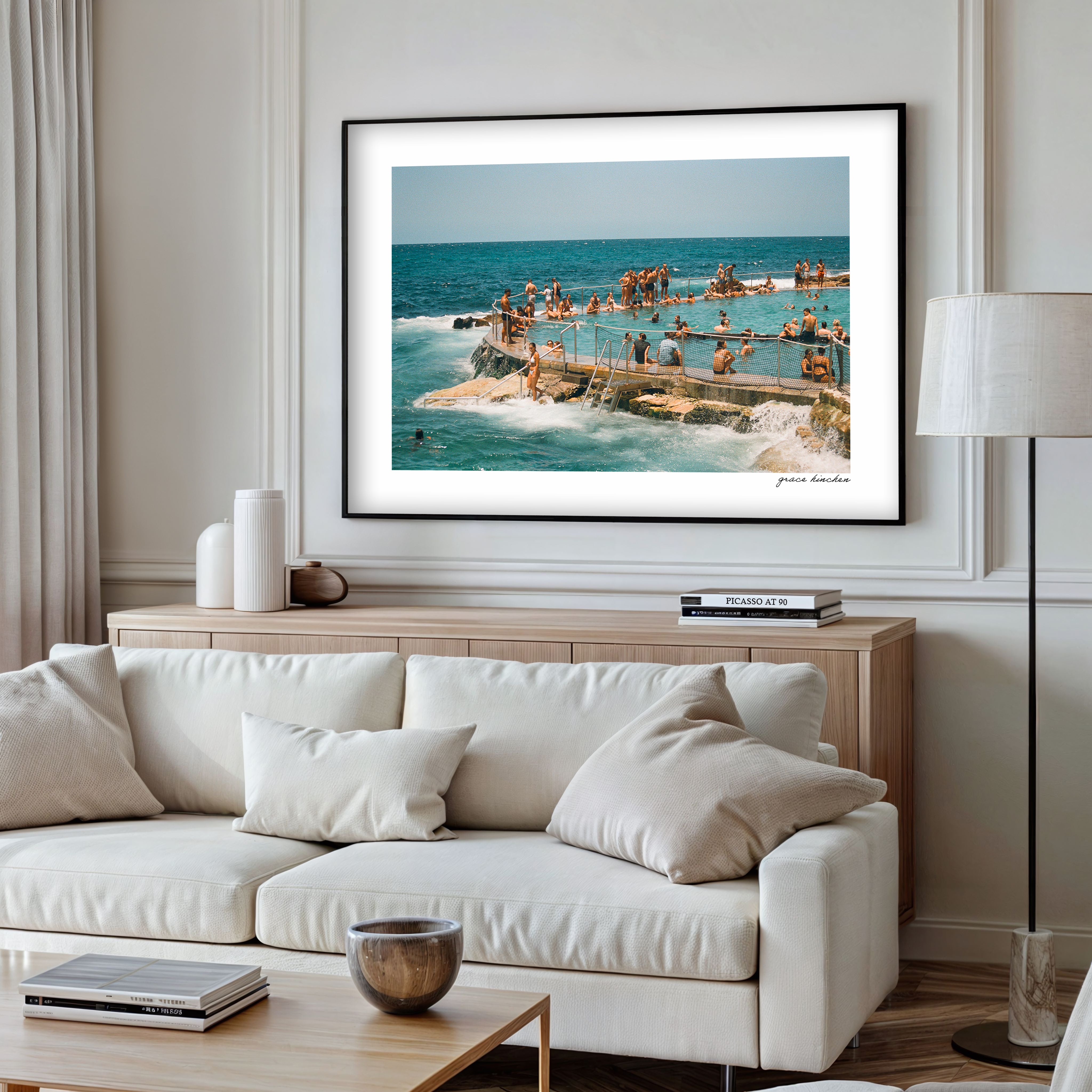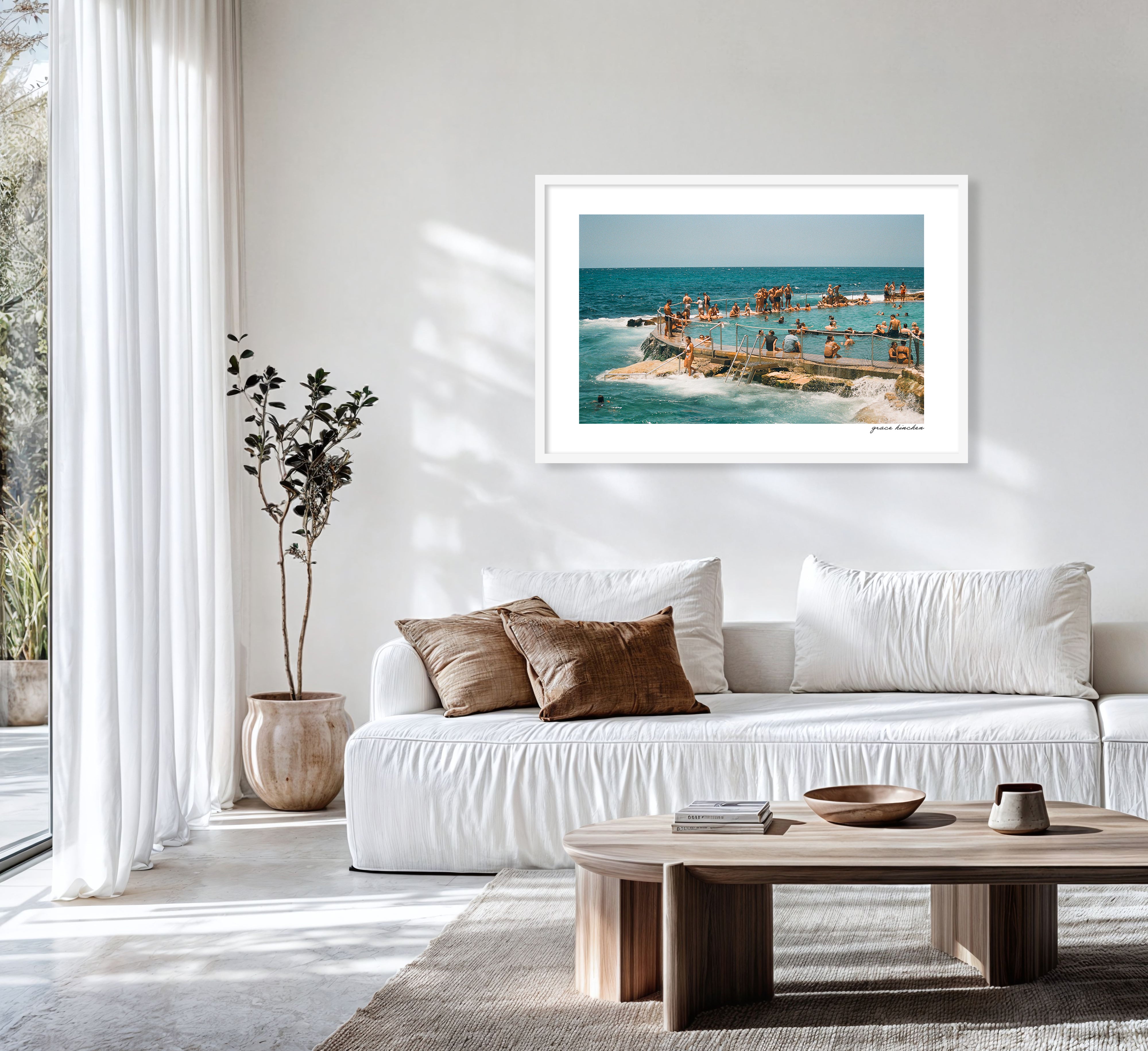 People swim and lounge in Bronte's ocean-fed rock pool, January 2025. Shot on film.