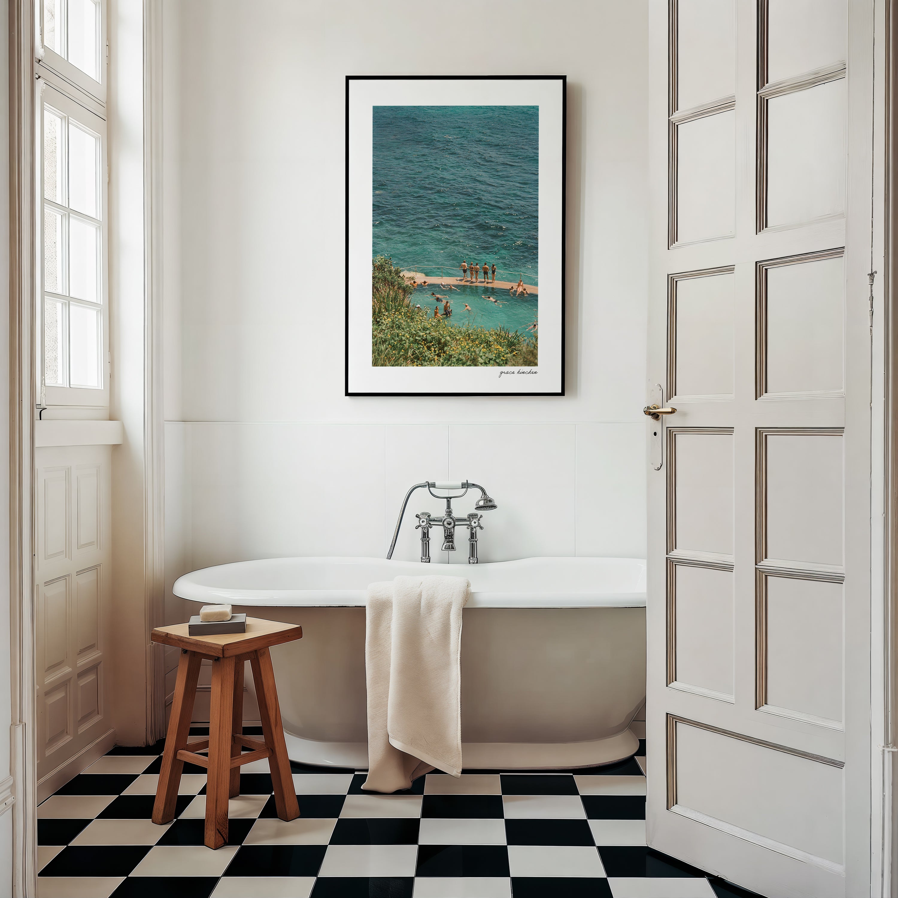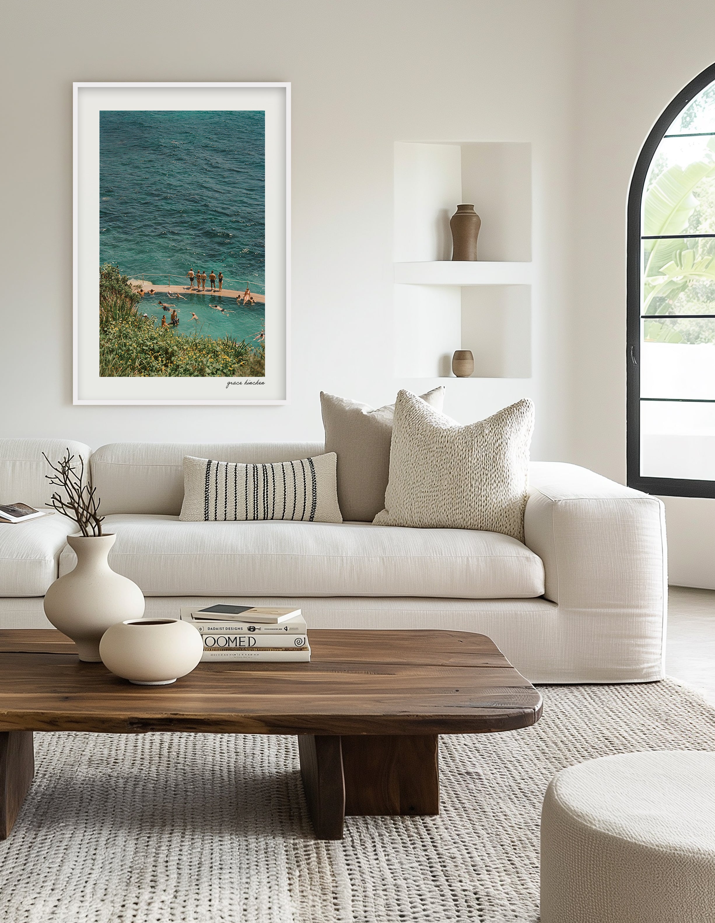 People gather at the edge of Bronte Rock Pool, taking in the ocean view, January 2025. Shot on film.