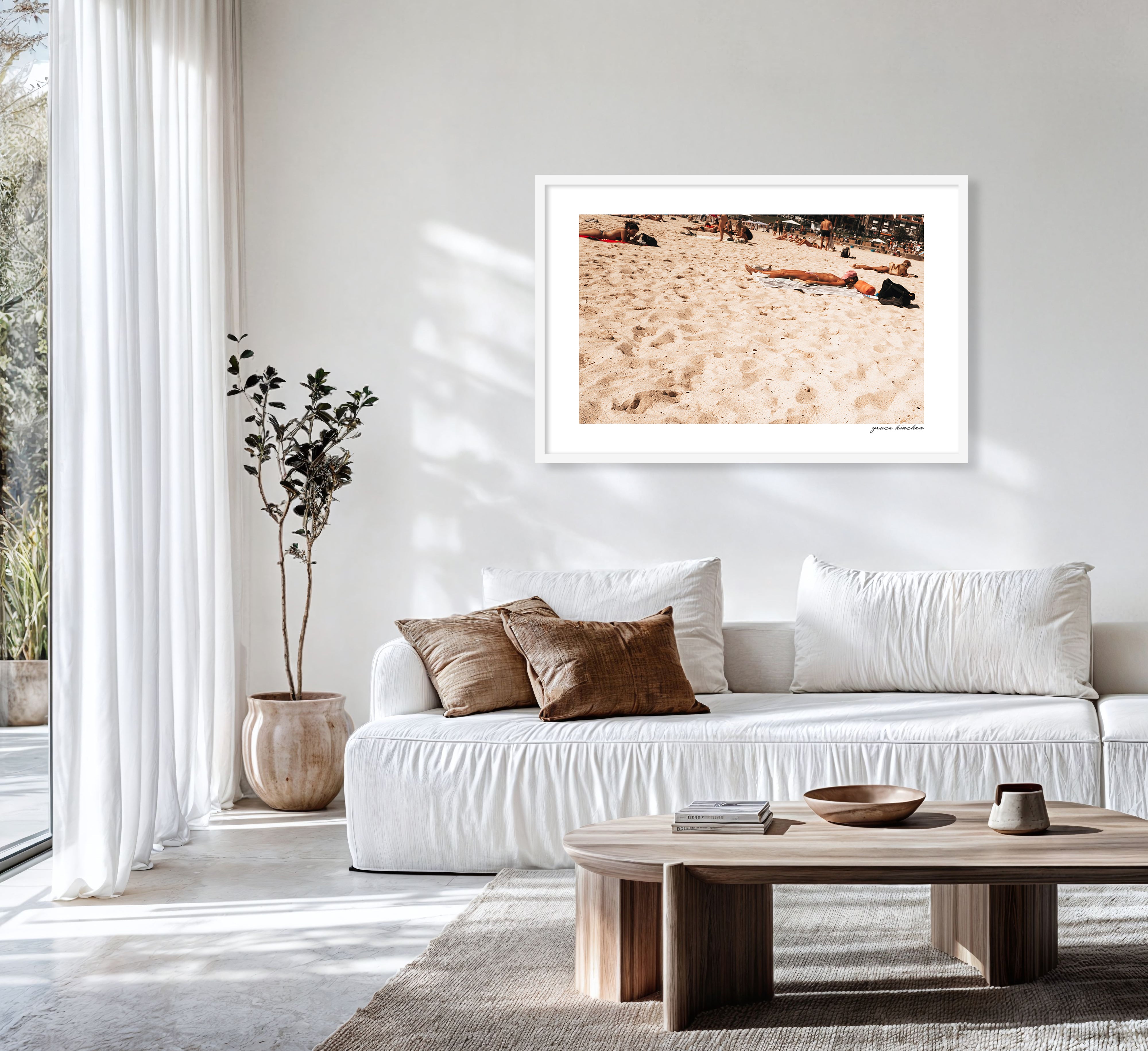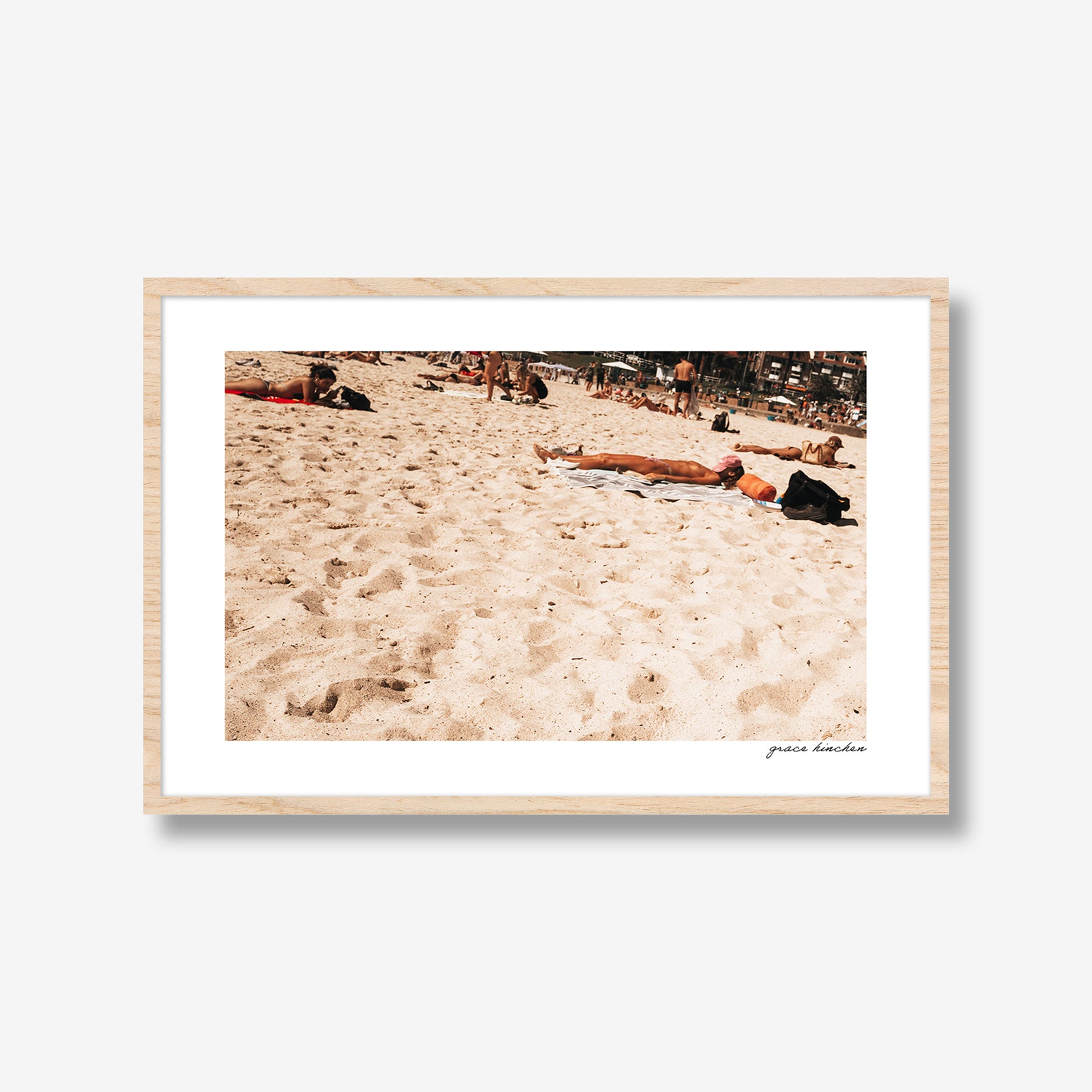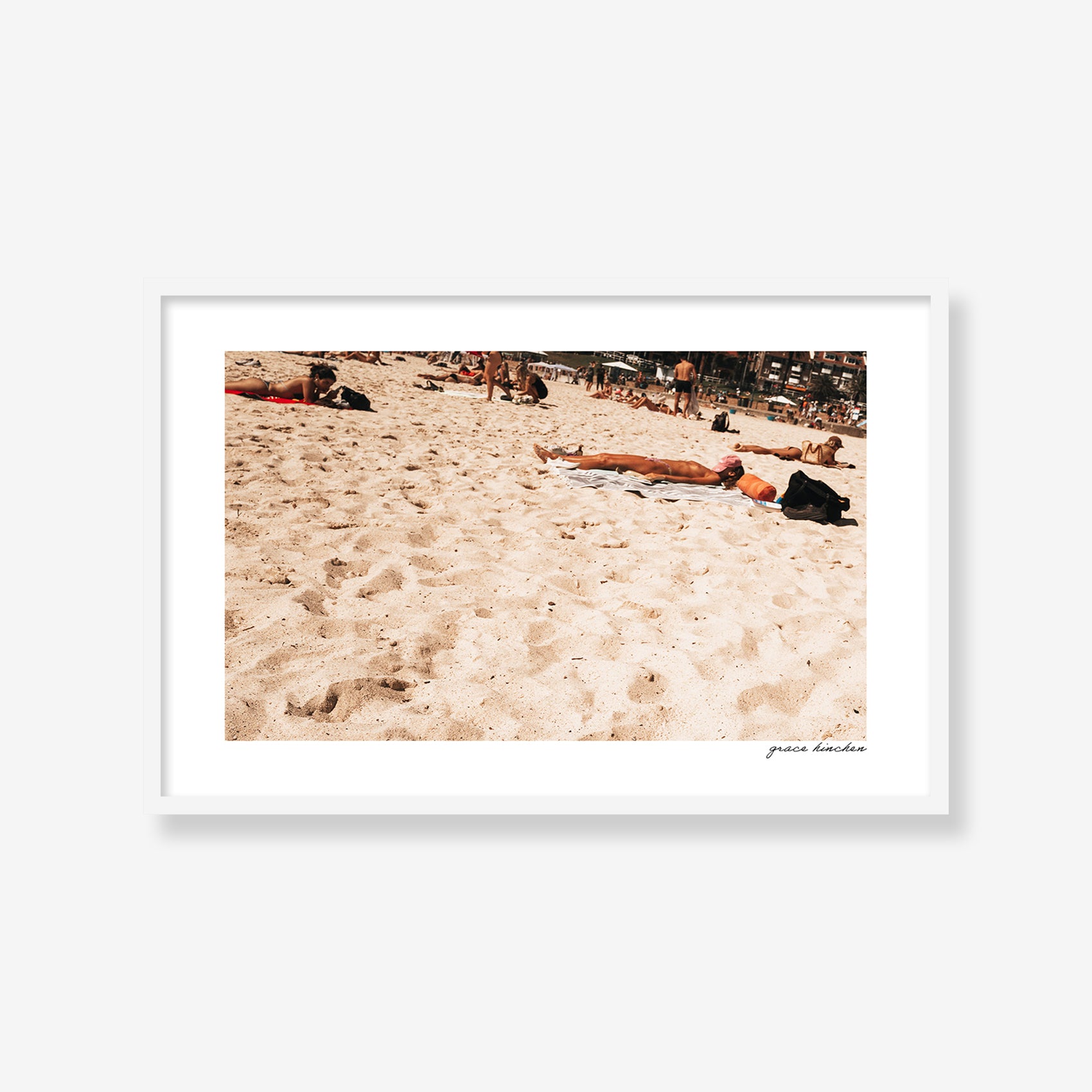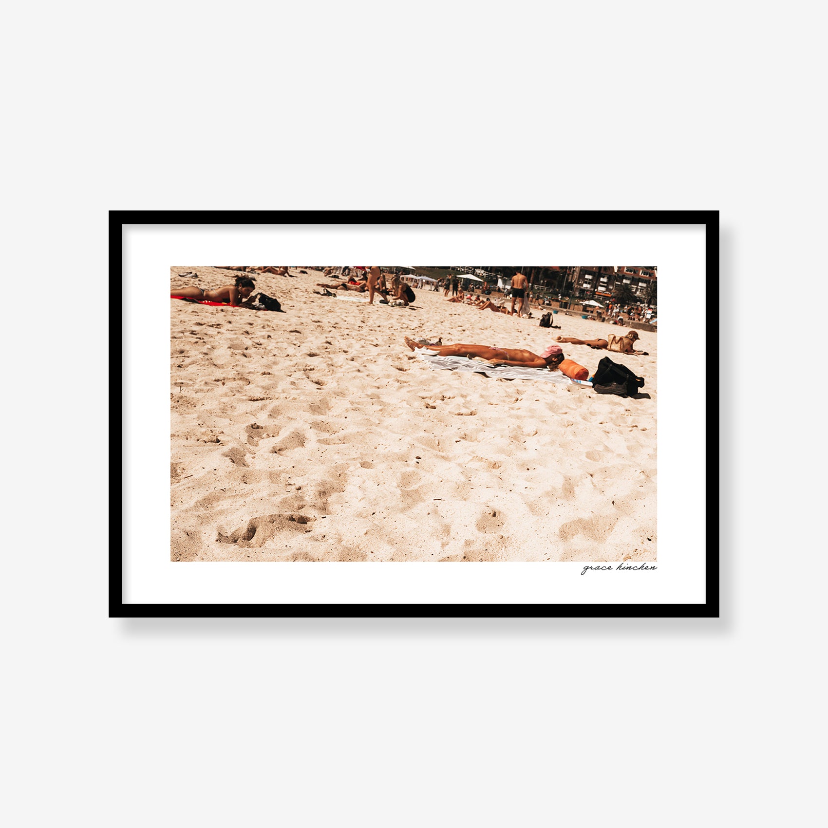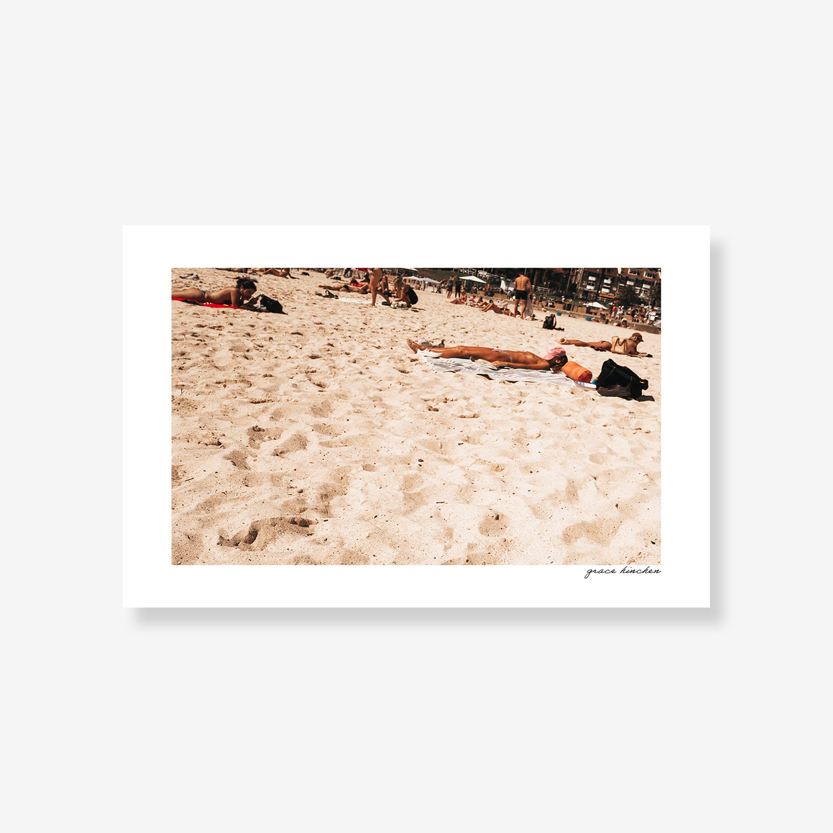 A topless sunbather soaks in the light on the sand at Bronte Beach, January 2025.