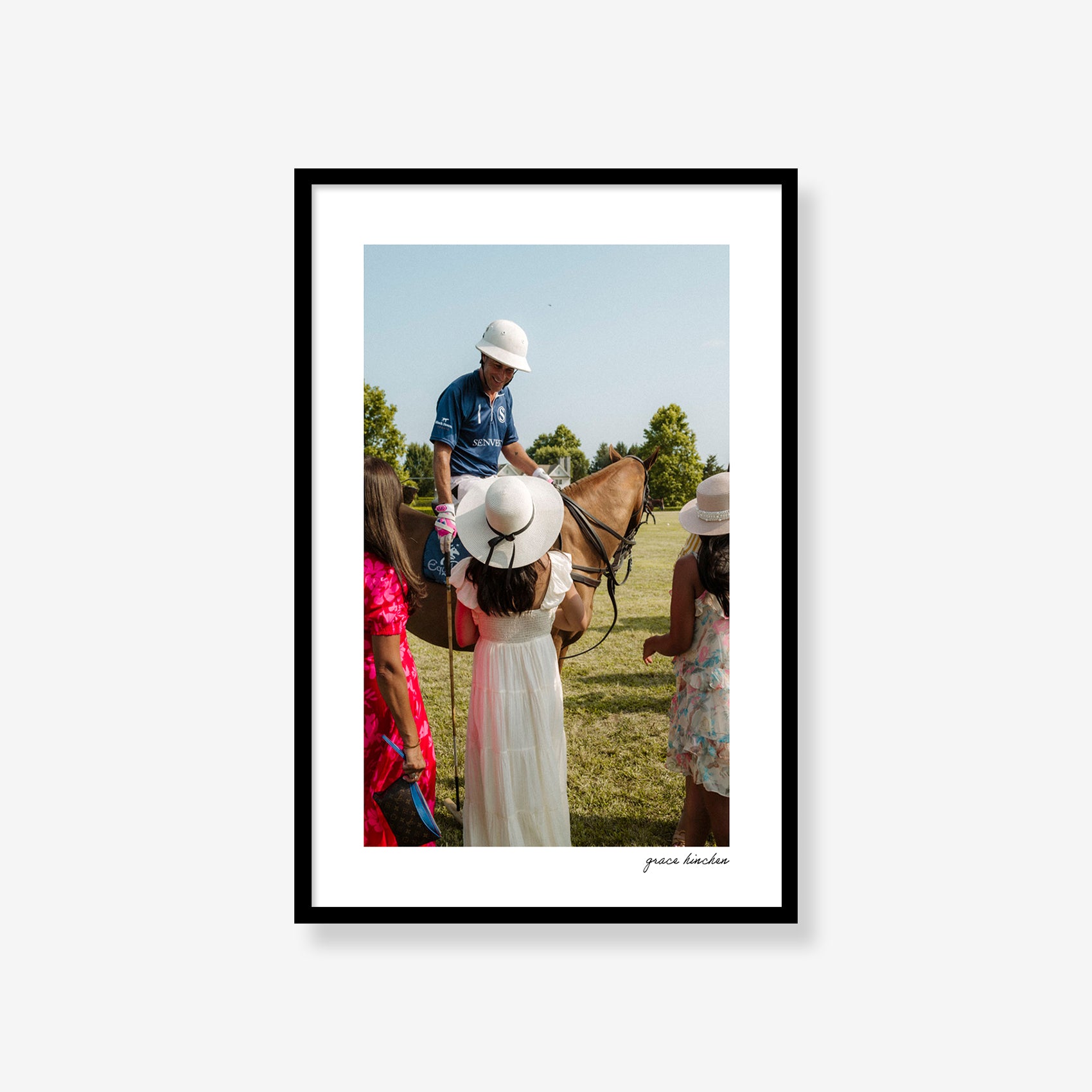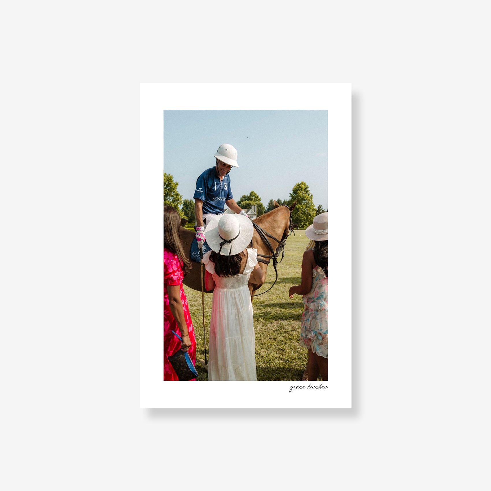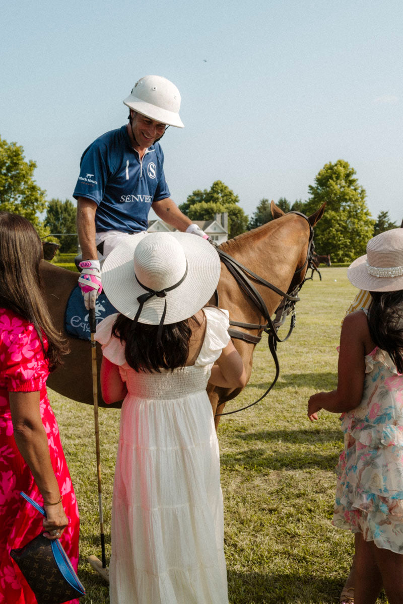 At halftime of a Hamptons polo match, spectators join the tradition of stomping divots, mingling on the field, and enjoying the social side of the sport. Shot in July 2024.