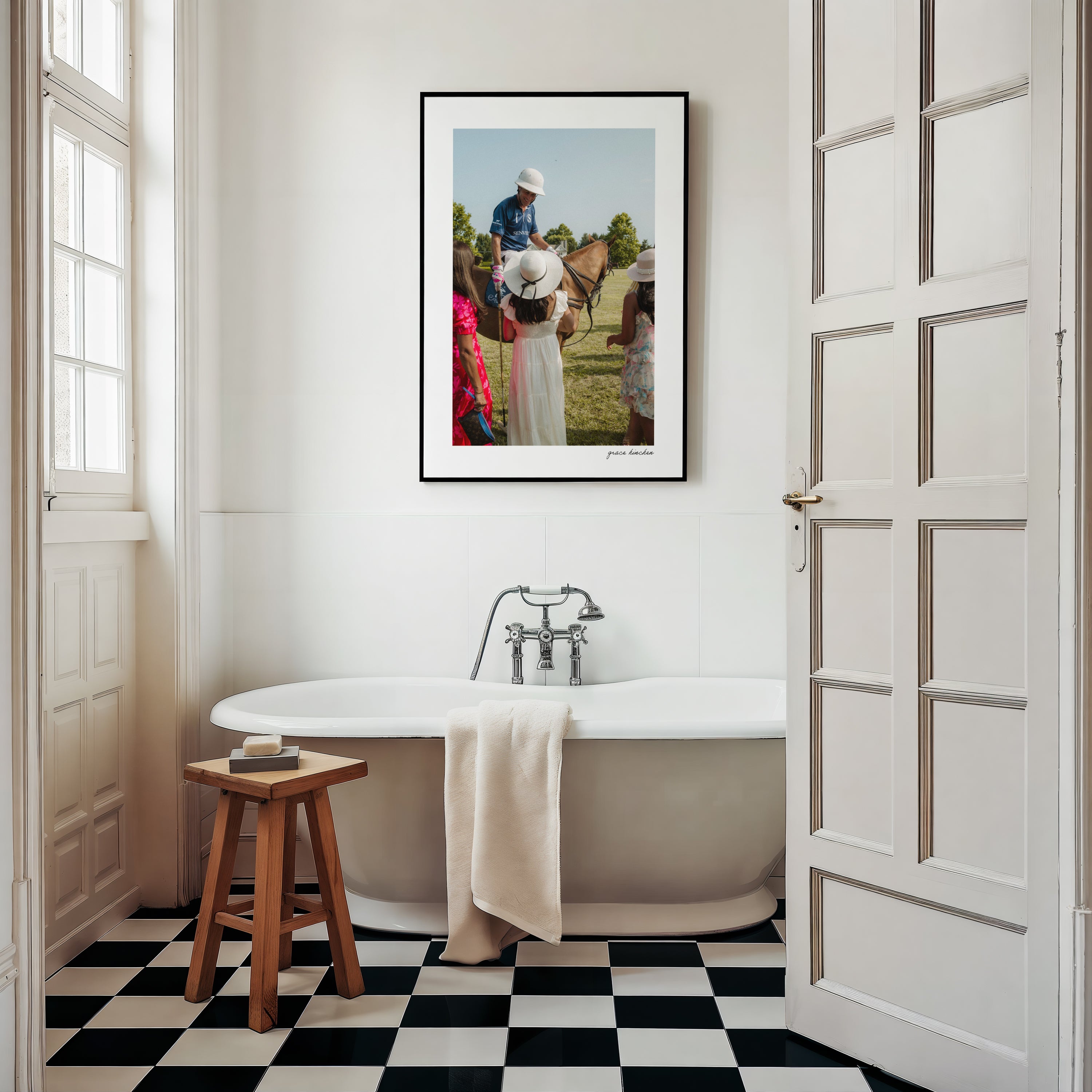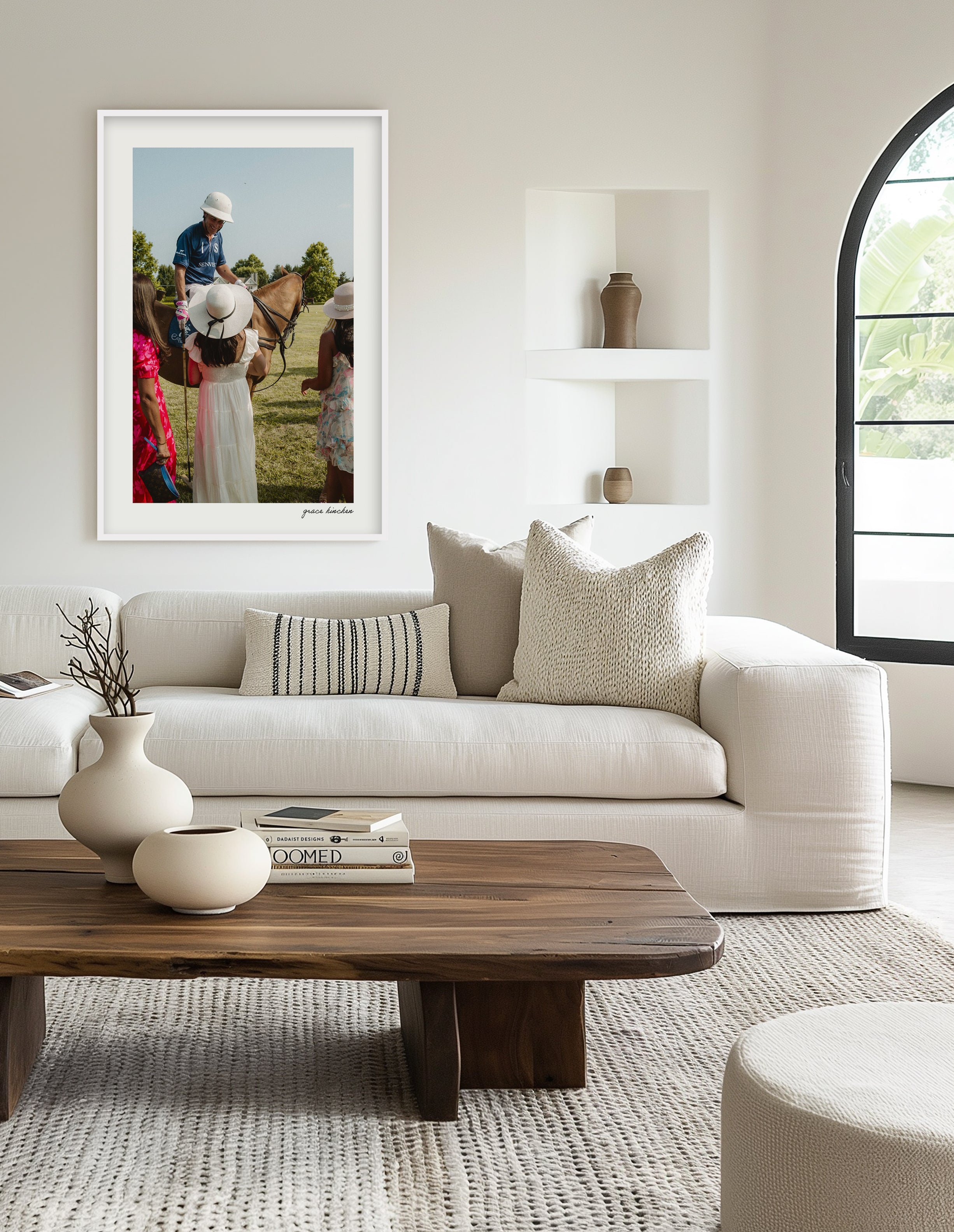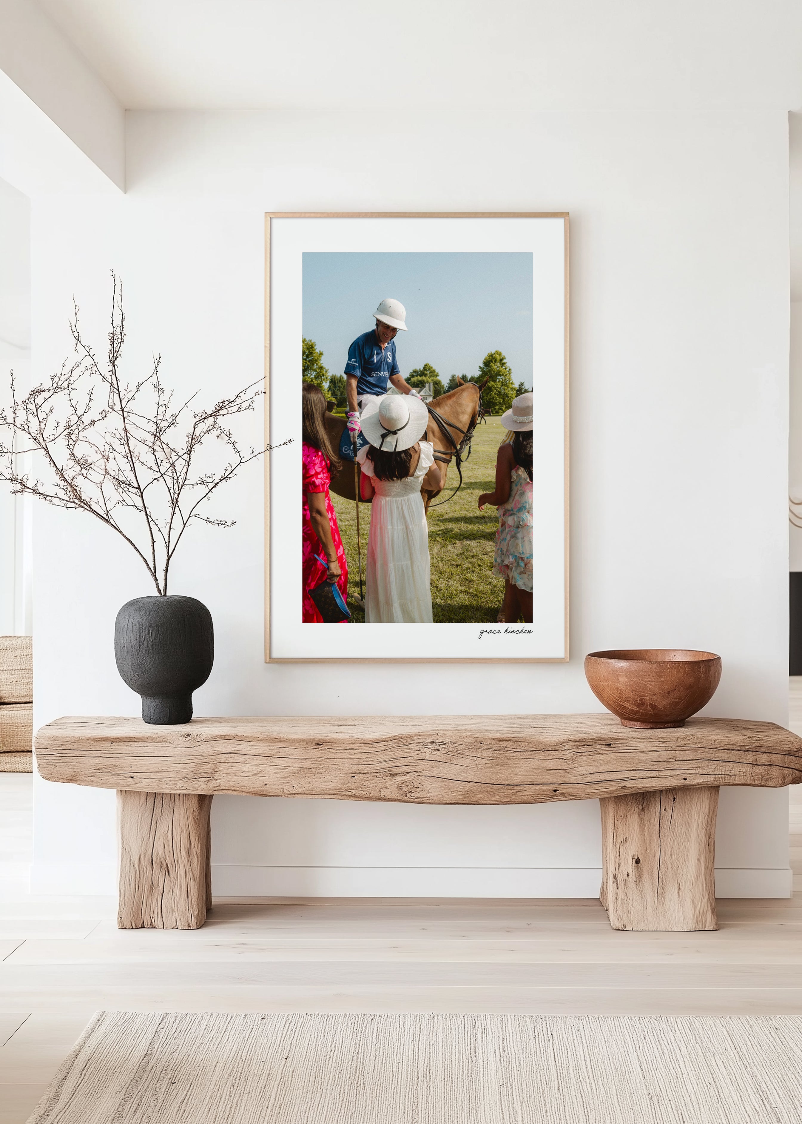 At halftime of a Hamptons polo match, spectators join the tradition of stomping divots, mingling on the field, and enjoying the social side of the sport. Shot in July 2024.