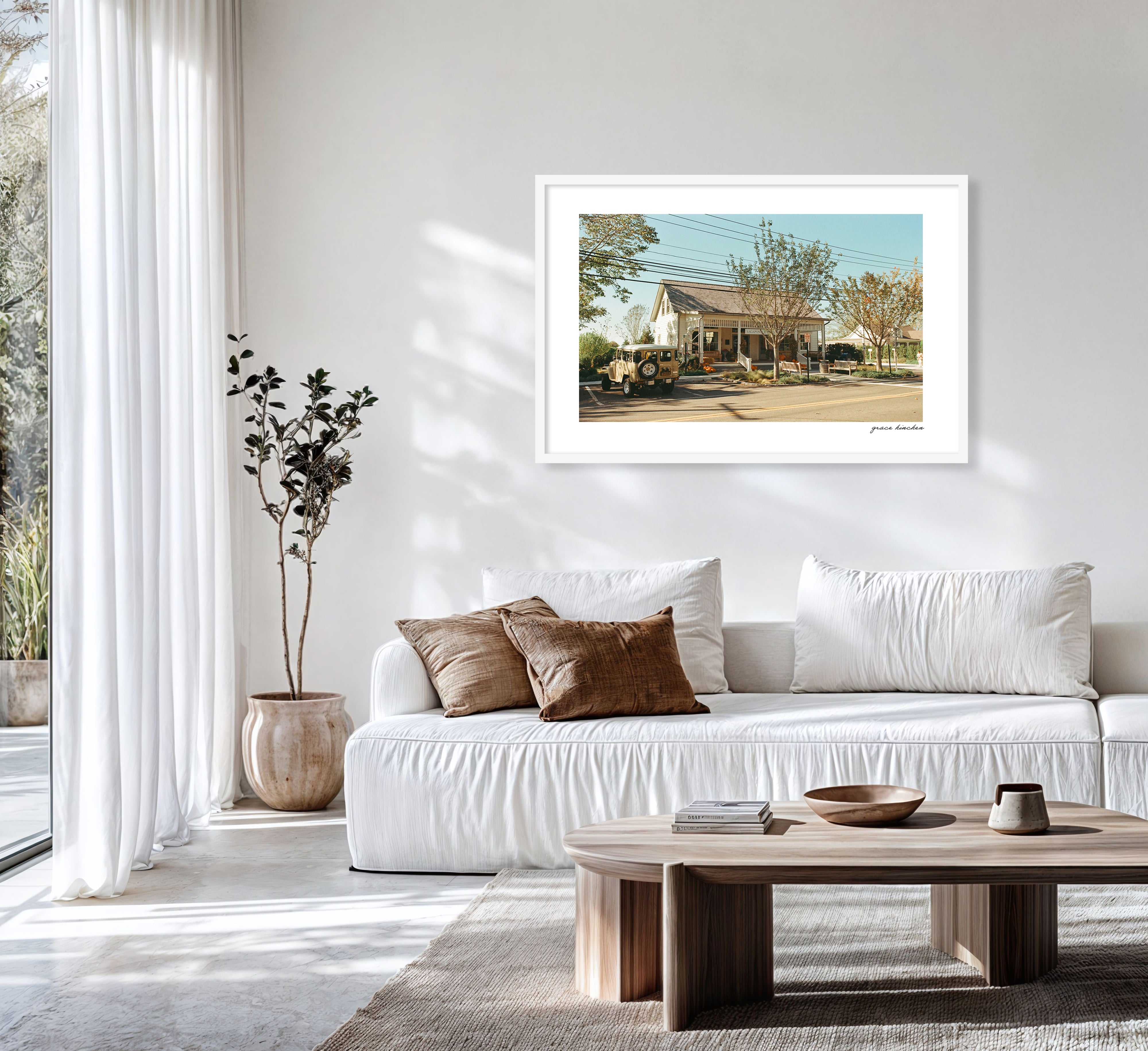Each print is signed by Grace in the lower right corner. All frames are hand-made of wood, and available in three styles - natural oak, white or black finish. Frames are presented in a modern shadow box format, with ⅜ to ¼ inch spacing between the glass and archival dry mounted photographs. Small prints include a one-inch white border, while all other sizes feature a two-inch white border around the image, offering space to breathe and enhancing the visual presence once framed.