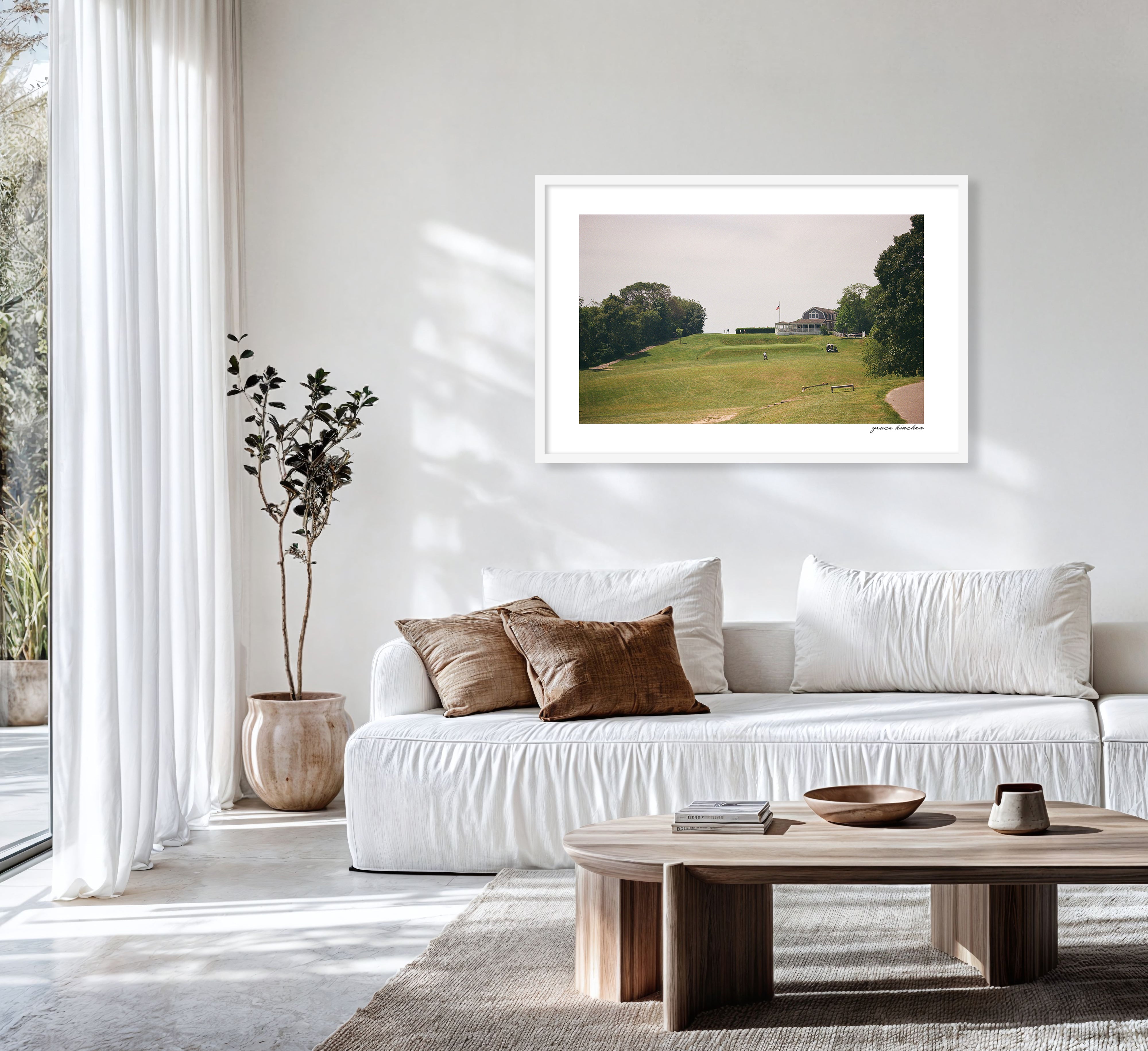 Golfers approaching a hole at Shelter Island Country Club, known locally as Goat Hill, a public nine-hole course, July 2024. Shot on film.
