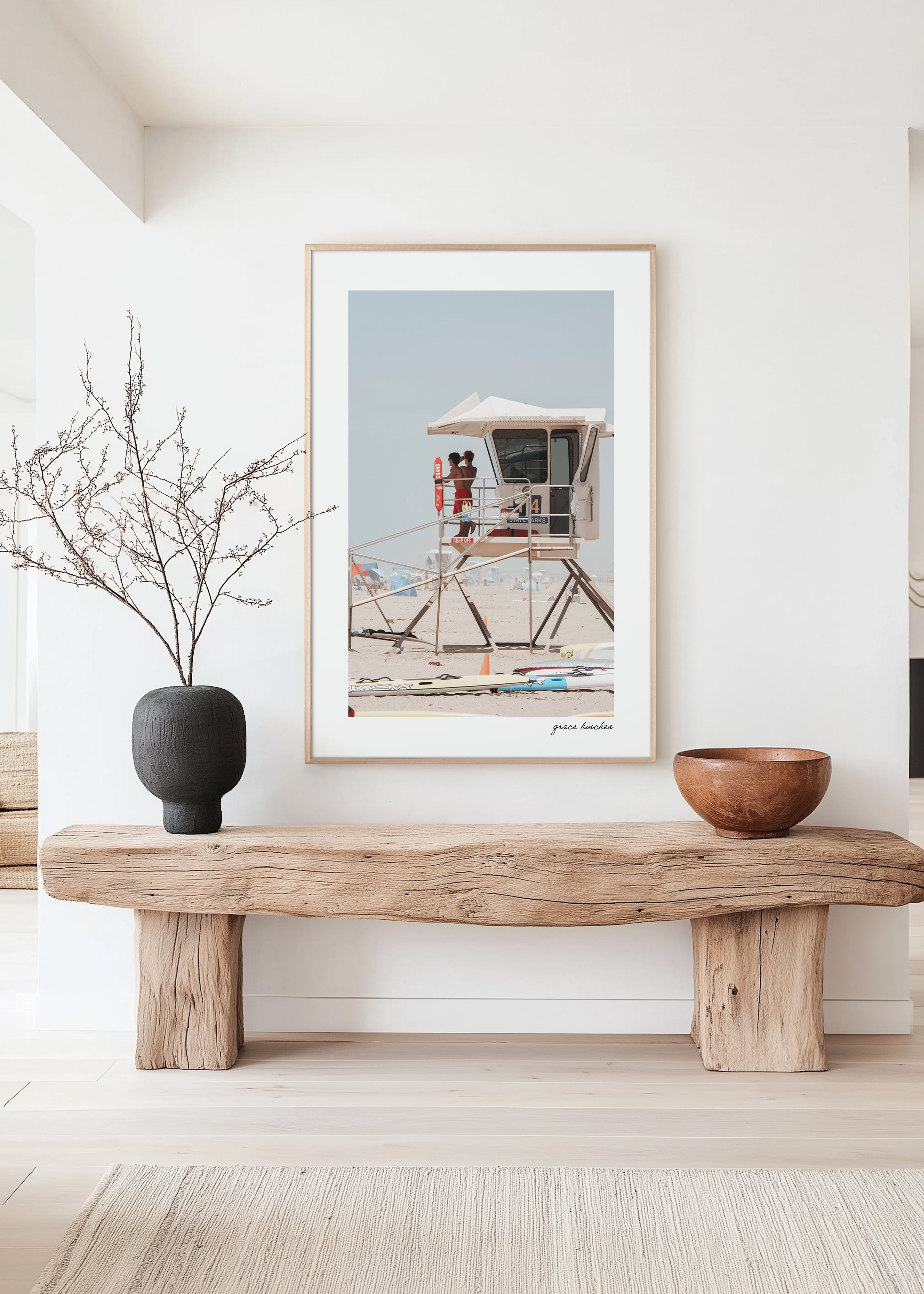 Huntington Beach lifeguards scan the ocean with binoculars, August 2025.