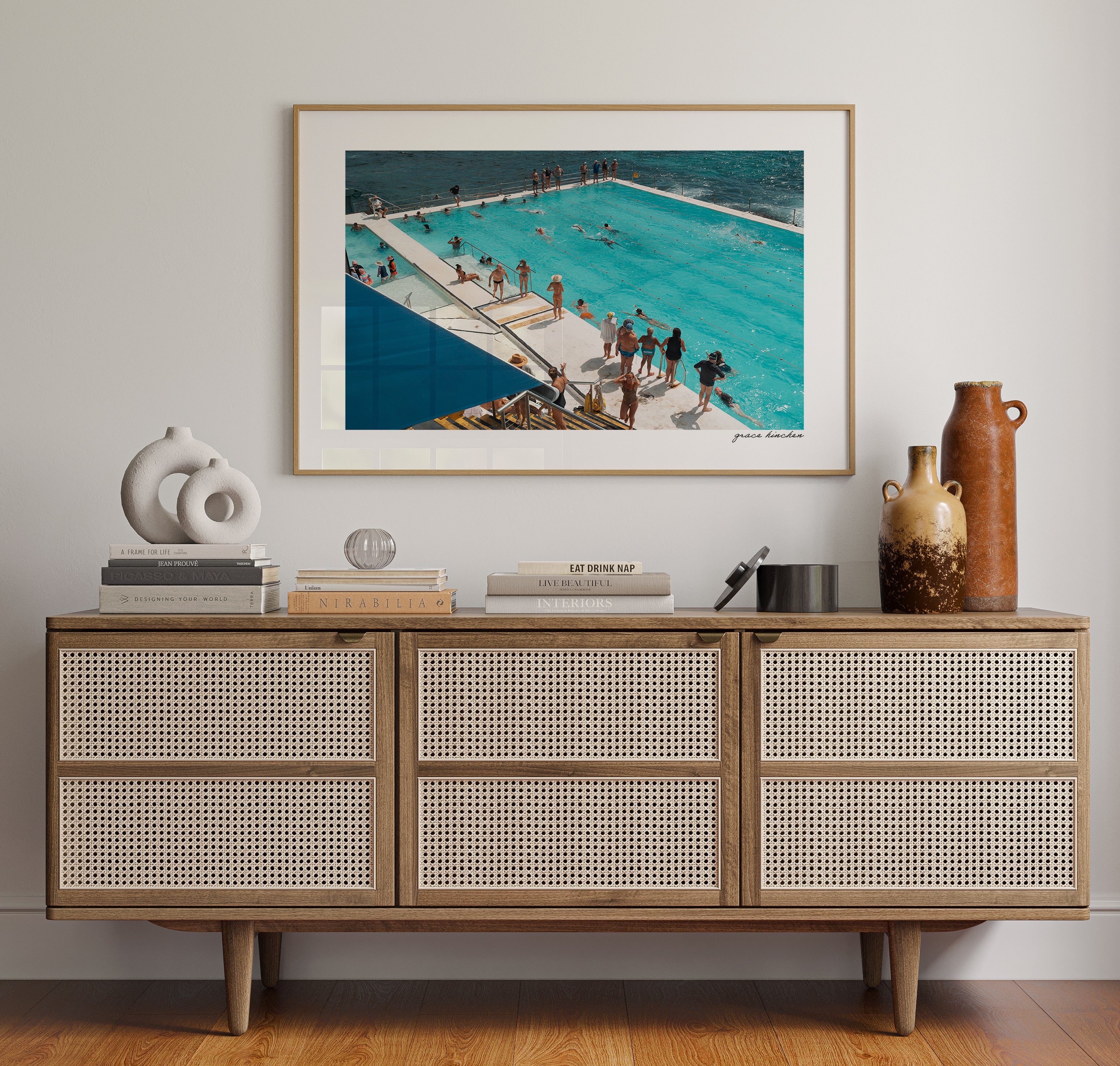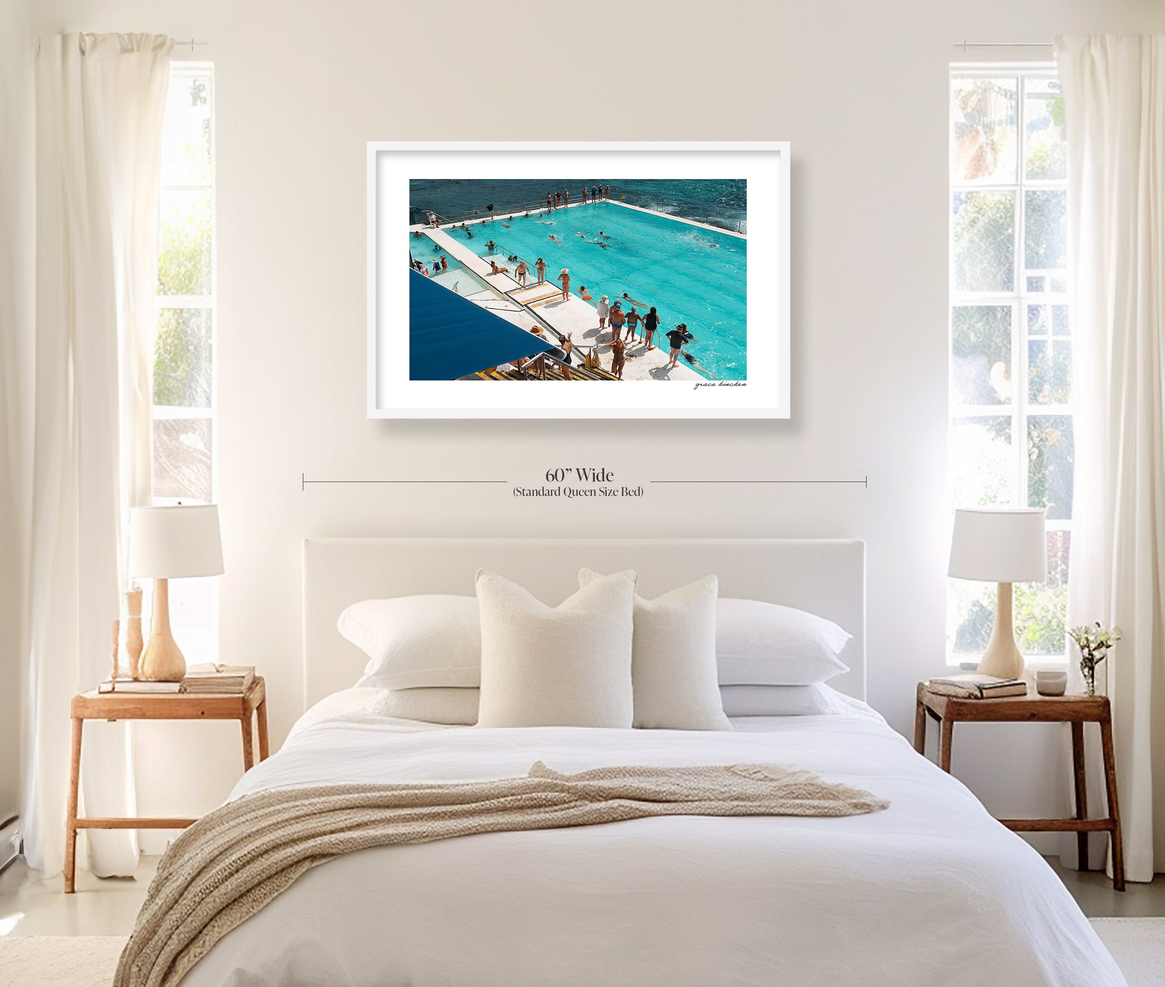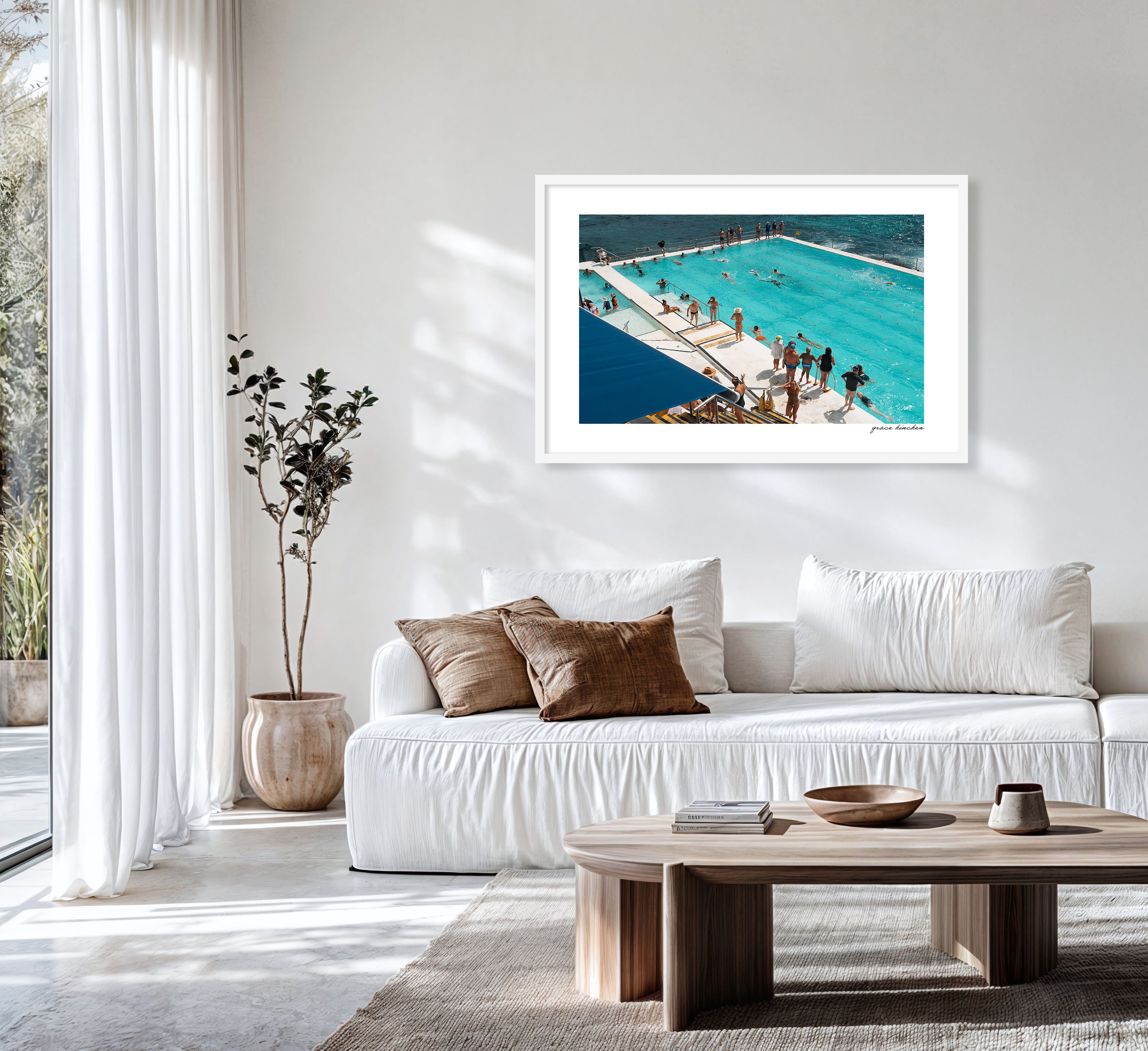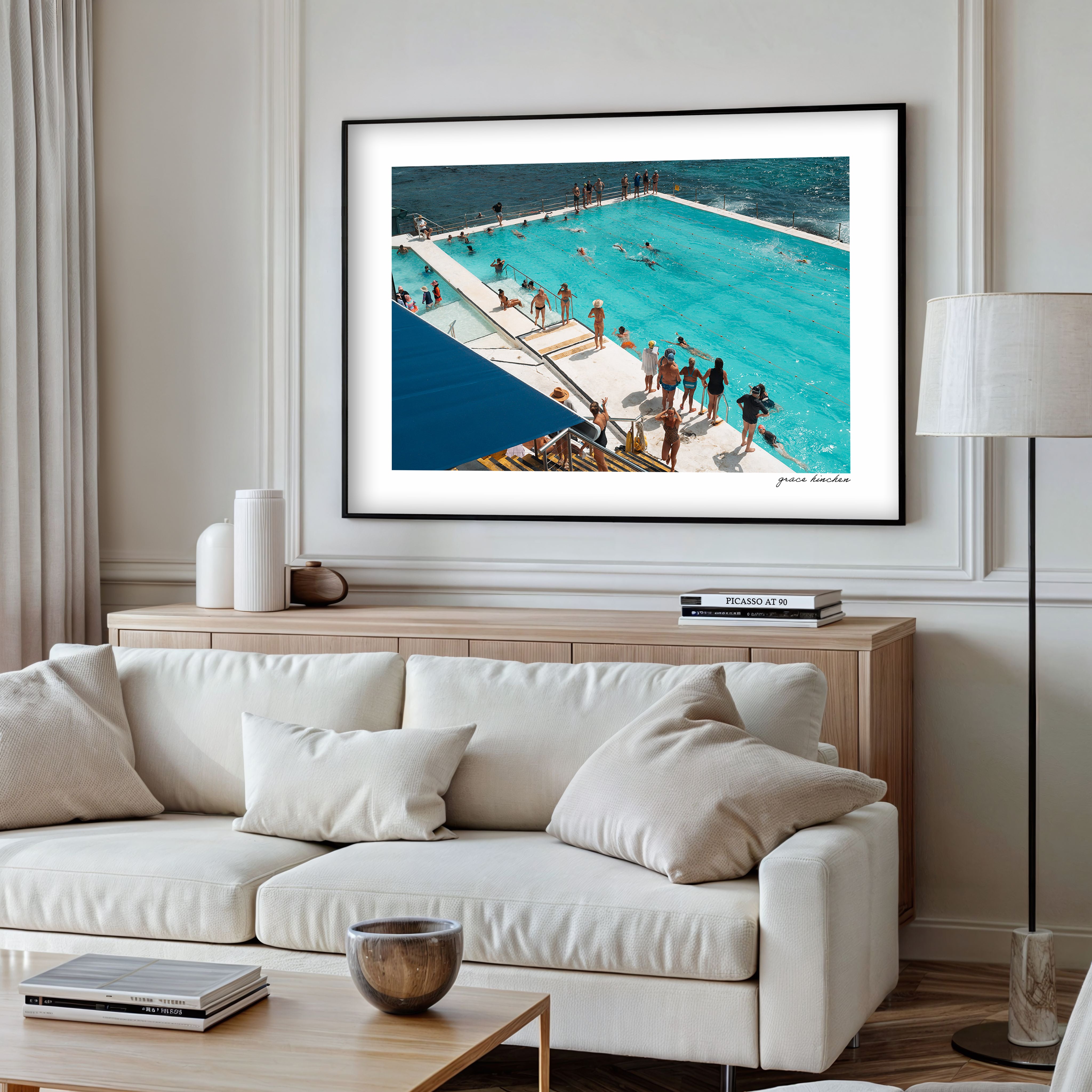 Men and women emerge from Bondi Icebergs pool, showcasing a range of beachwear, January 2025.