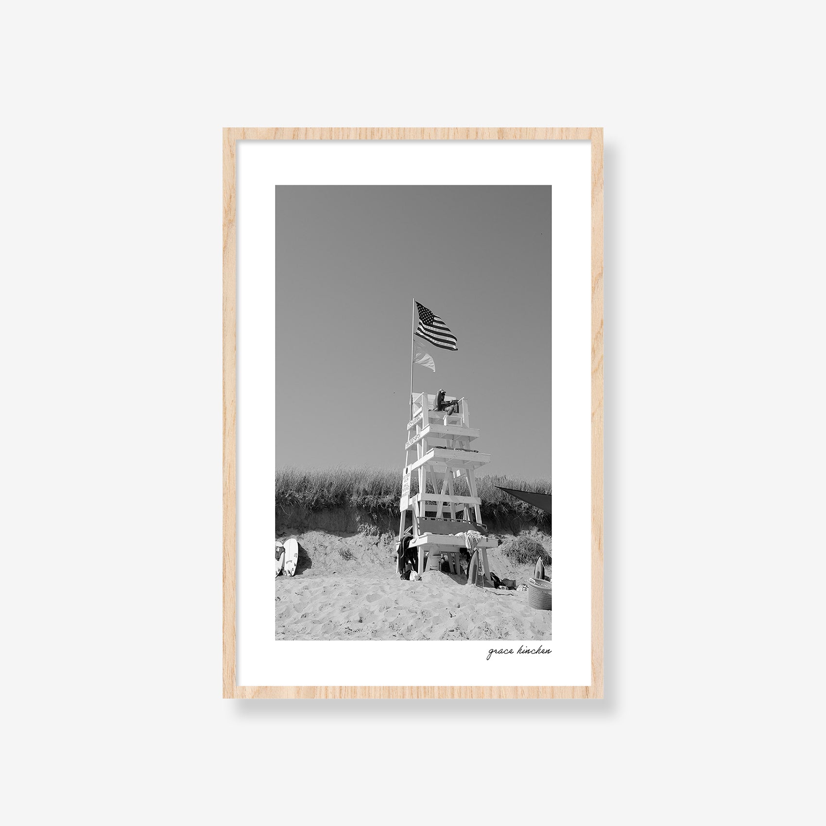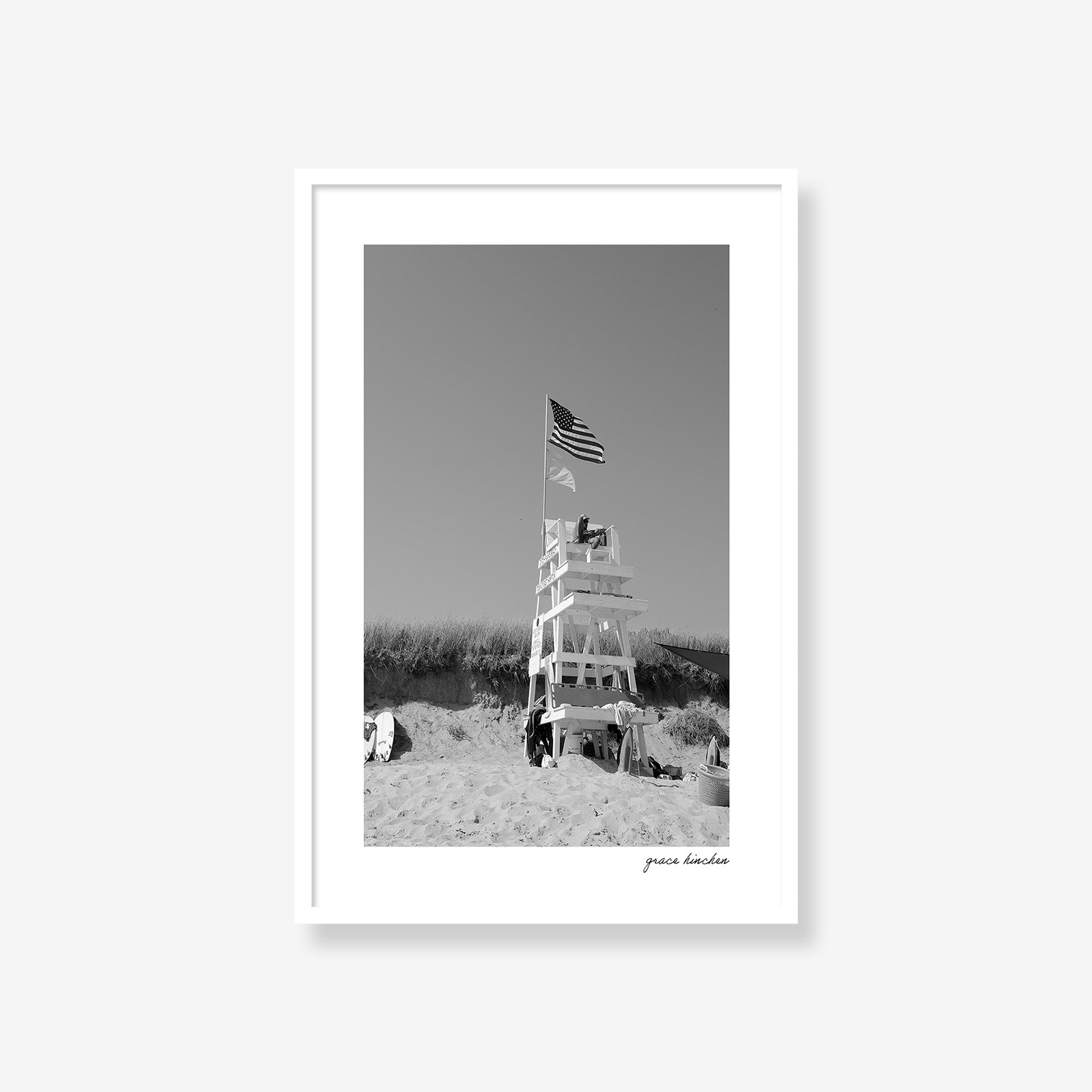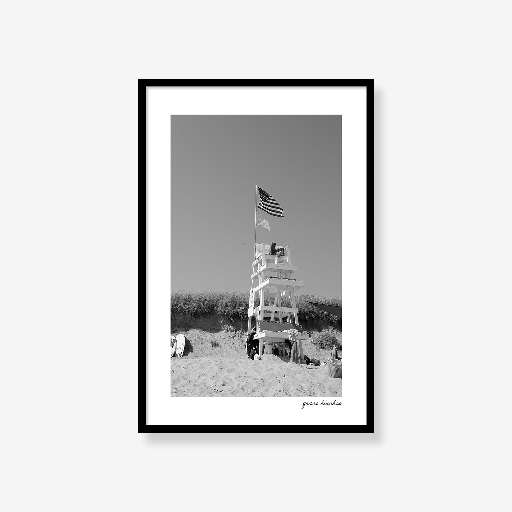 A Ditch Plains lifeguard on duty on a summer's day in Montauk. July 2023.