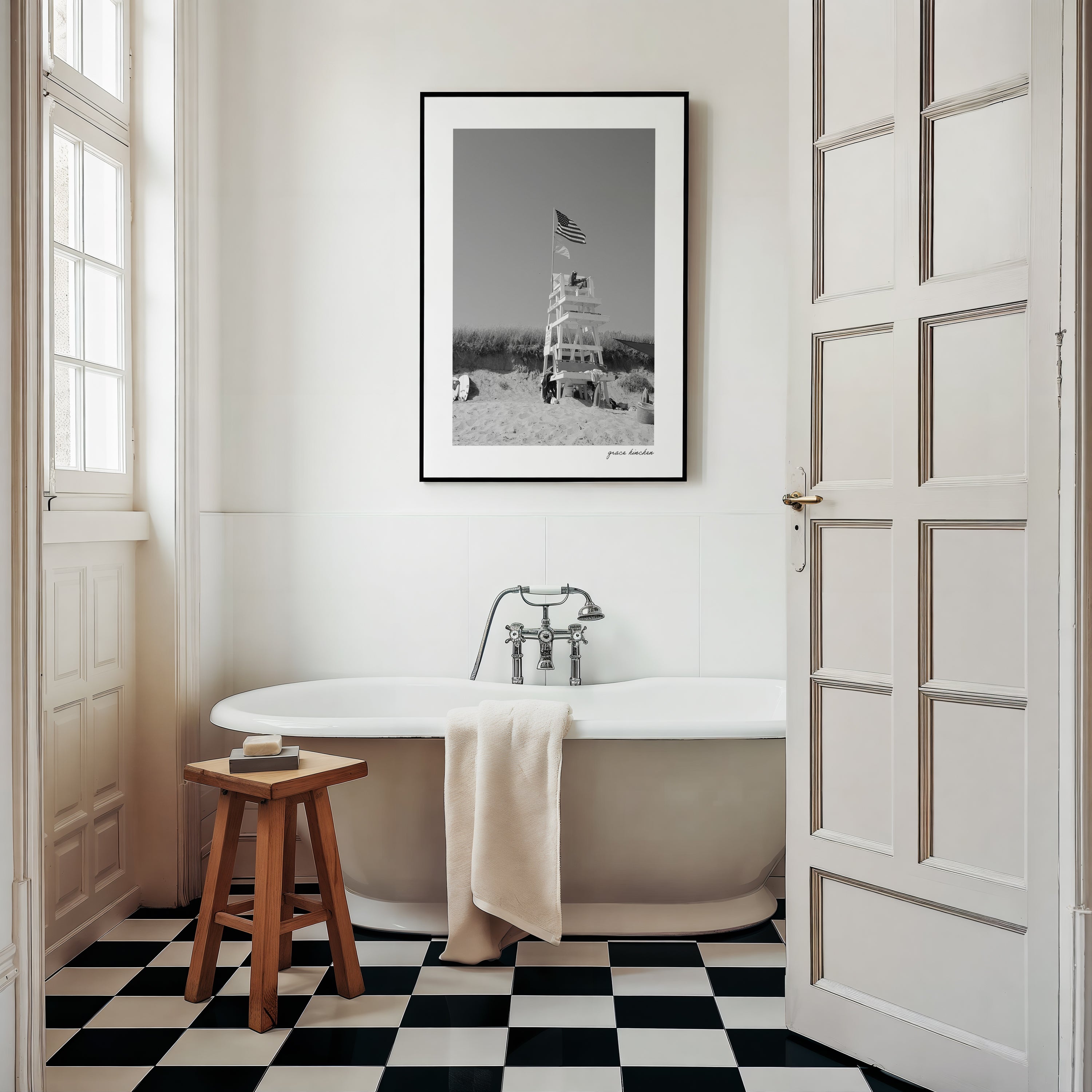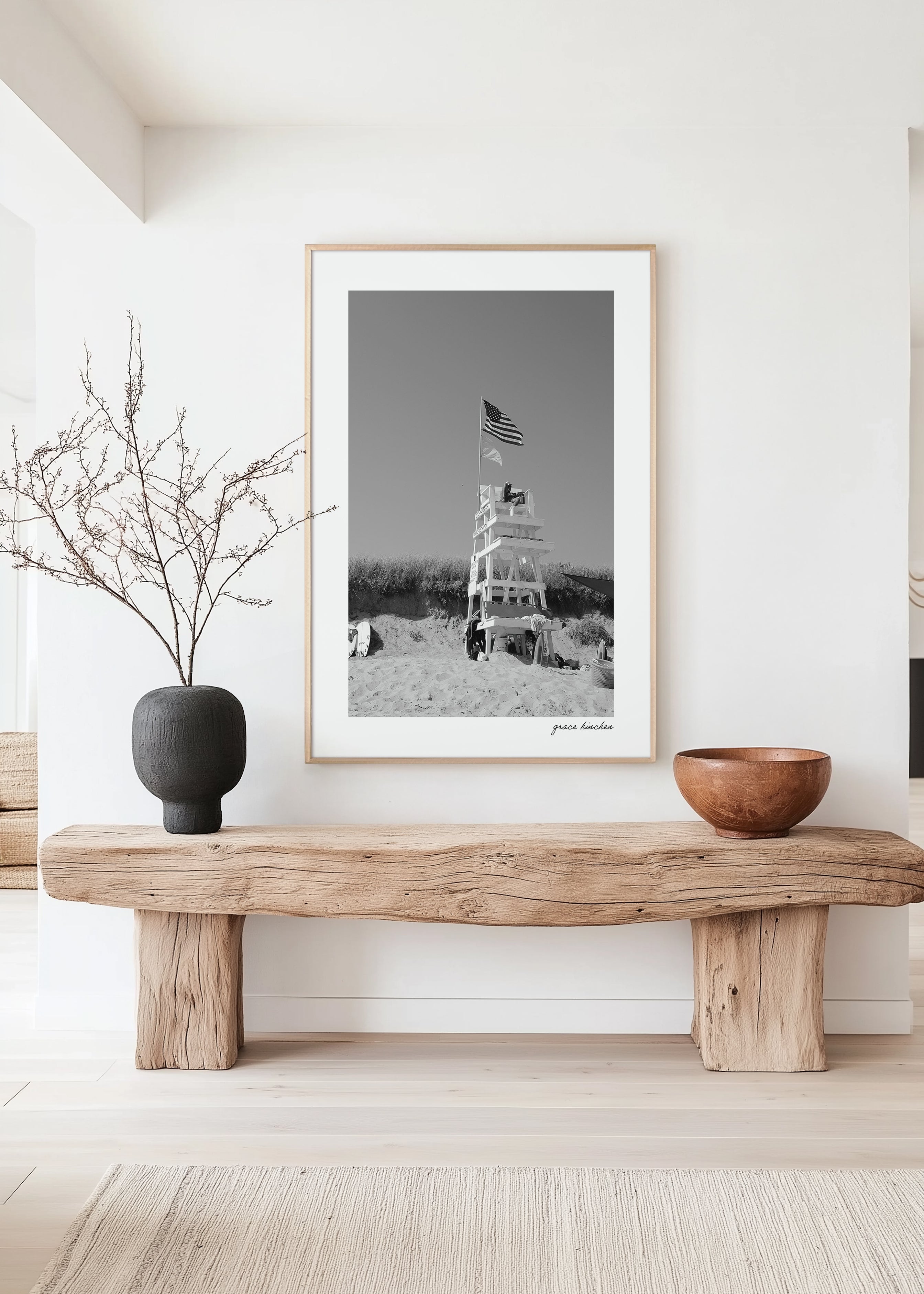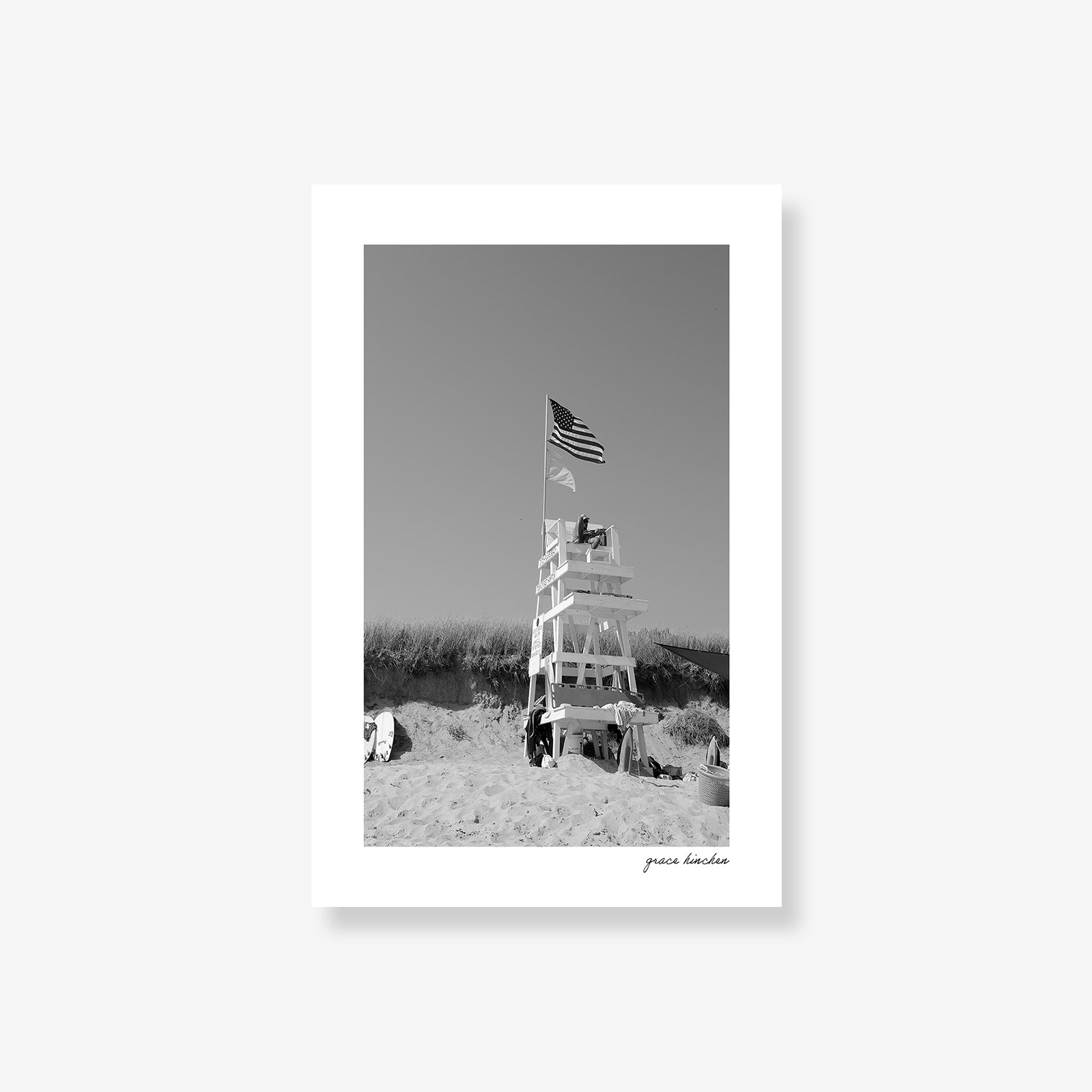 A Ditch Plains lifeguard on duty on a summer's day in Montauk. July 2023.