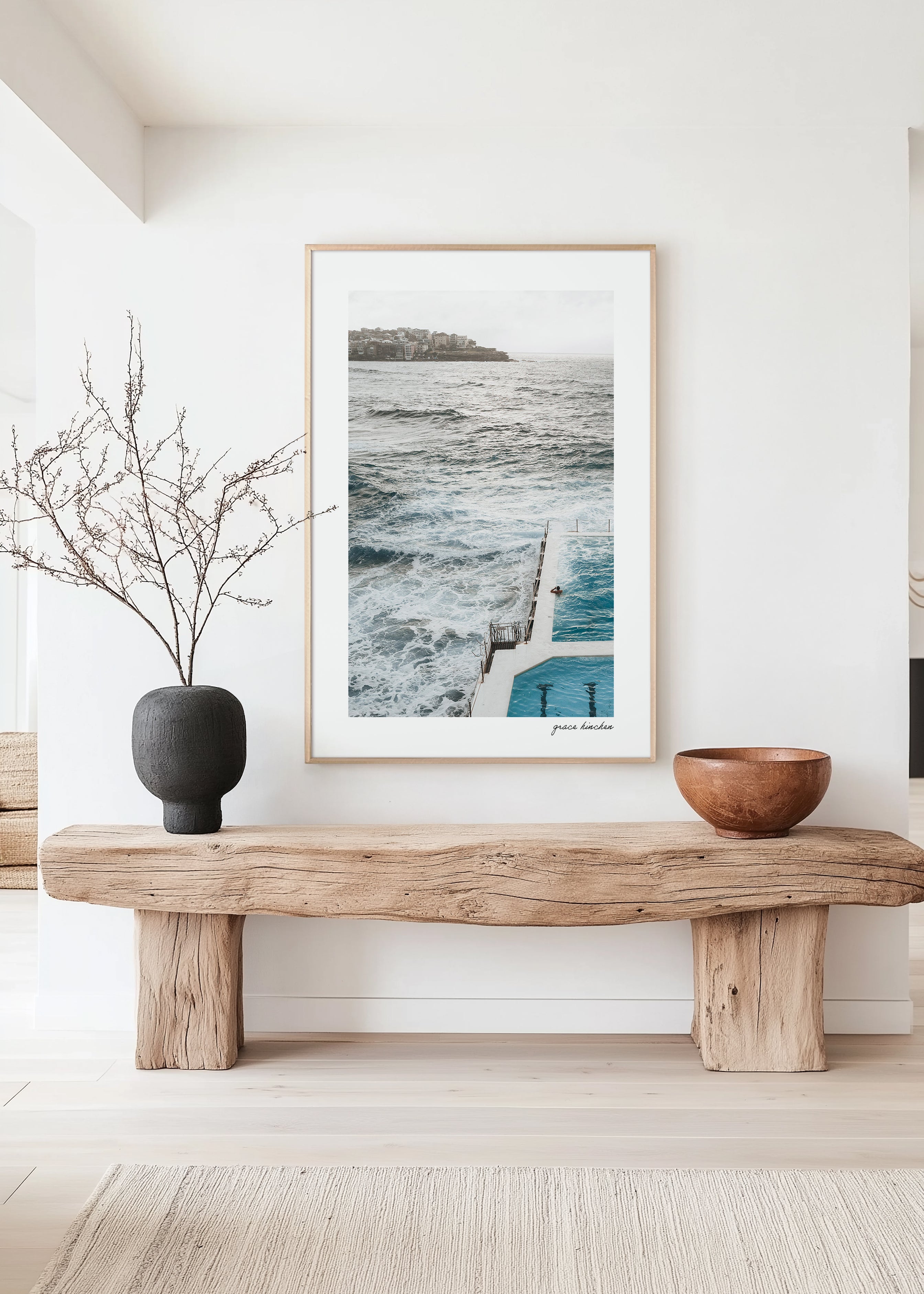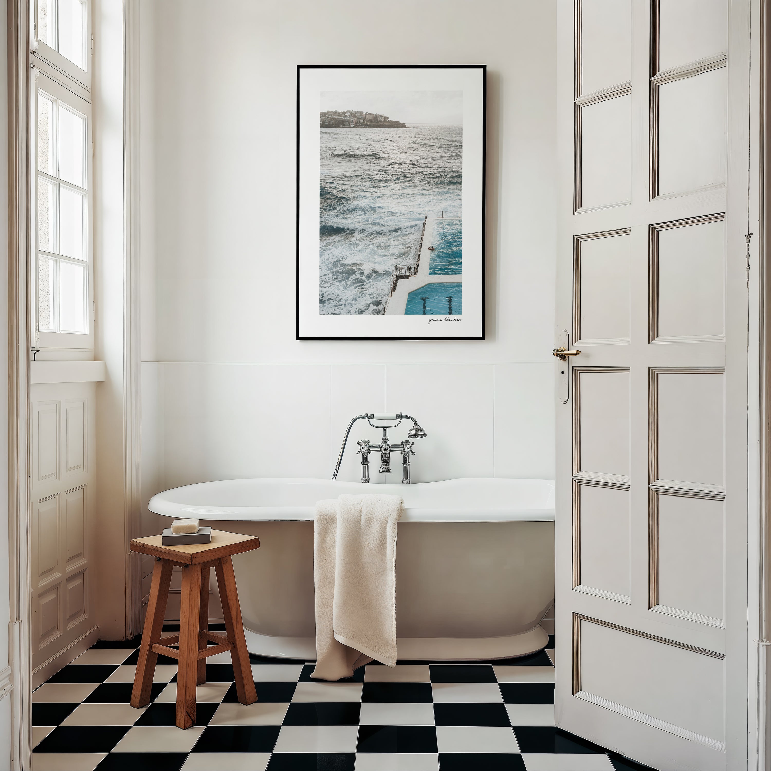 A swimmer takes a break in the Bondi Icebergs pool during the early morning light, January 2025.