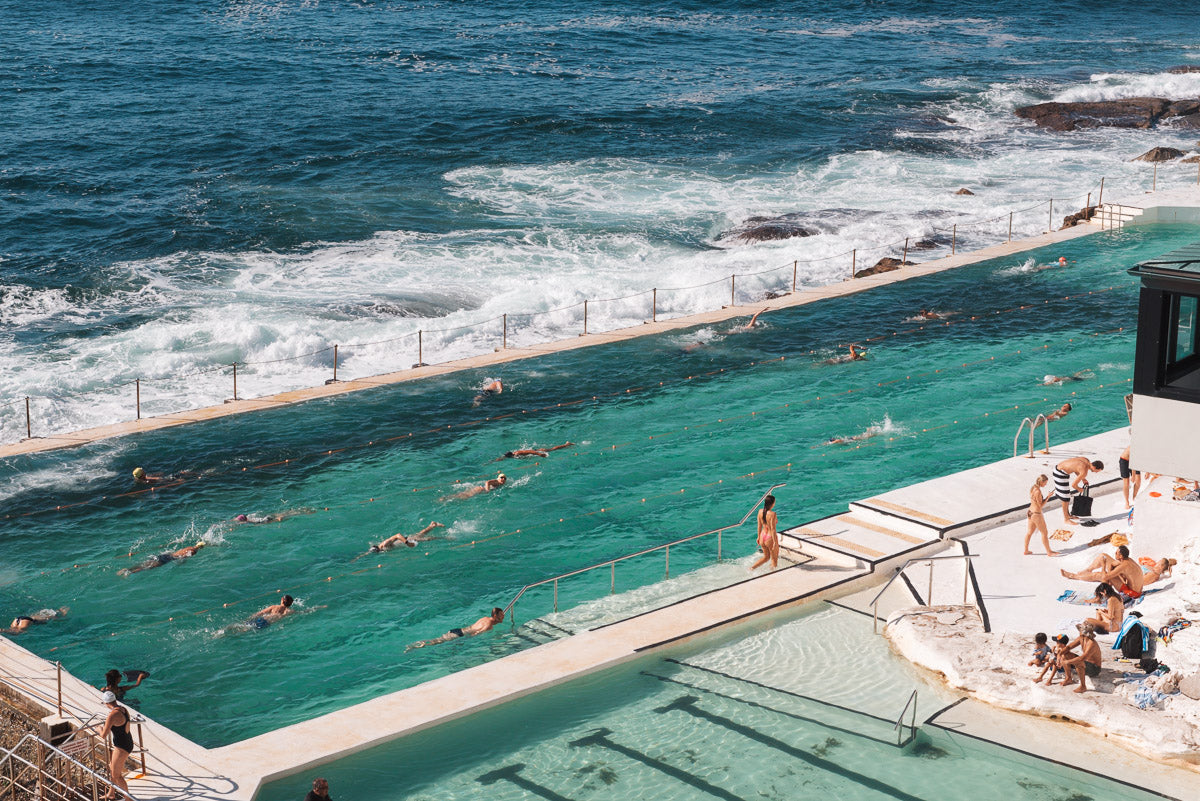 A woman stepping out of the Bondi Icebergs lap pool after a swim, April 2022.