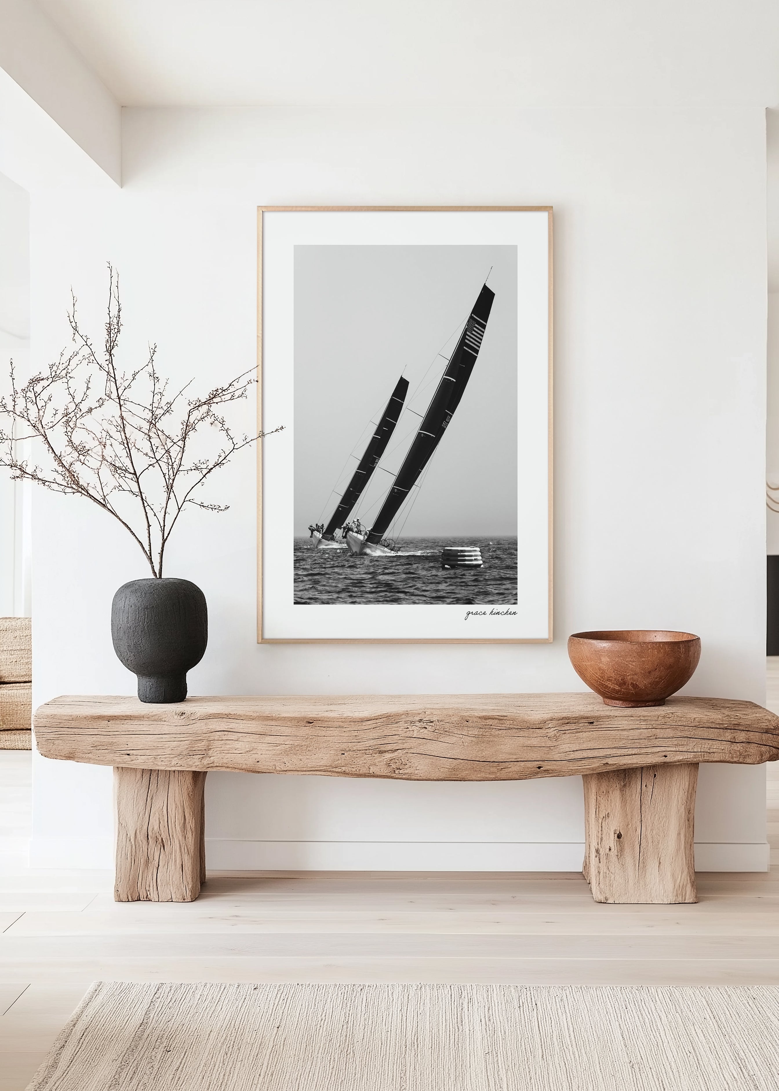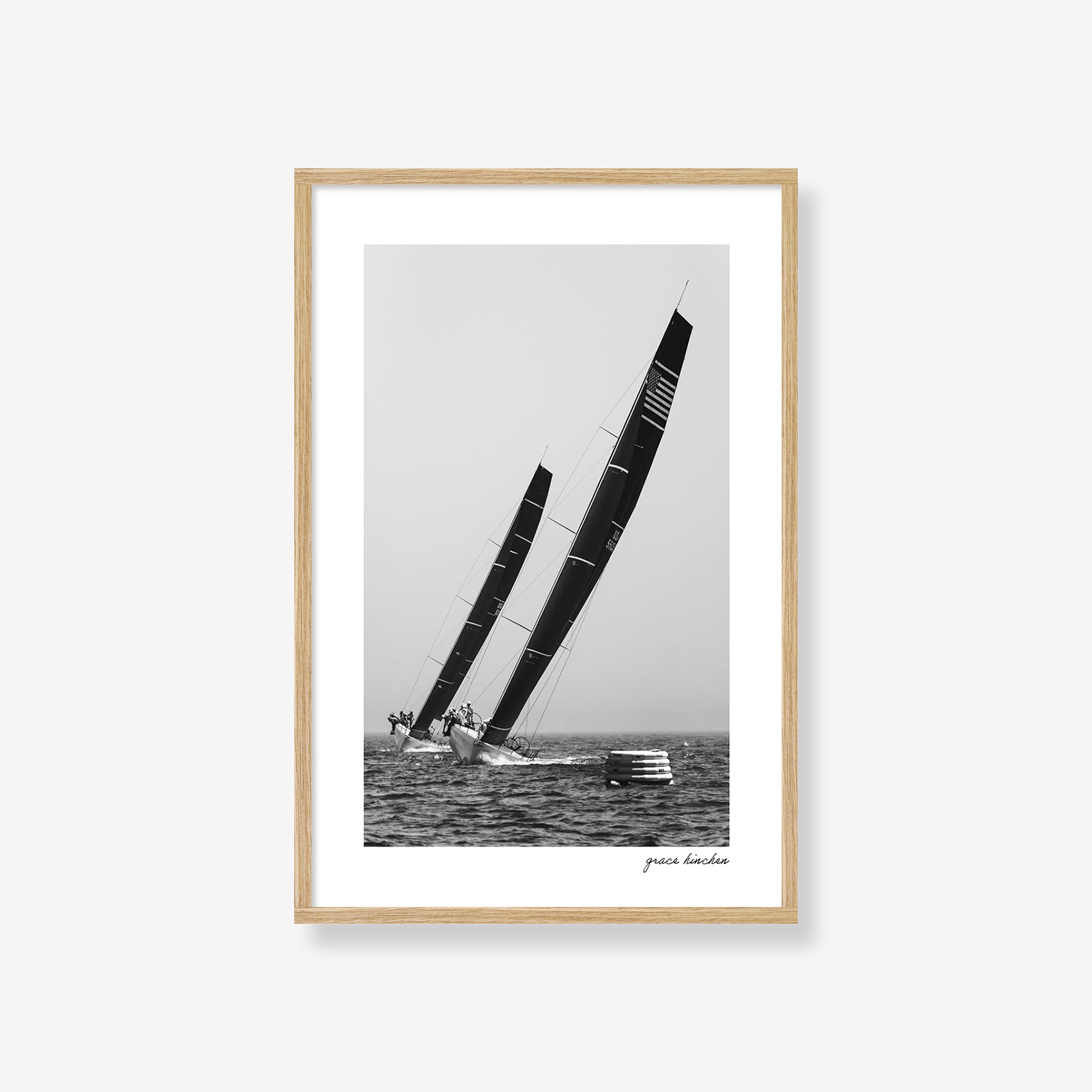 Each print is signed by Grace in the lower right corner. All frames are hand-made of wood, and available in three styles - natural oak, white or black finish. Frames are presented in a modern shadow box format, with ⅜ to ¼ inch spacing between the glass and archival dry mounted photographs. Small prints include a one-inch white border, while all other sizes feature a two-inch white border around the image, offering space to breathe and enhancing the visual presence once framed.