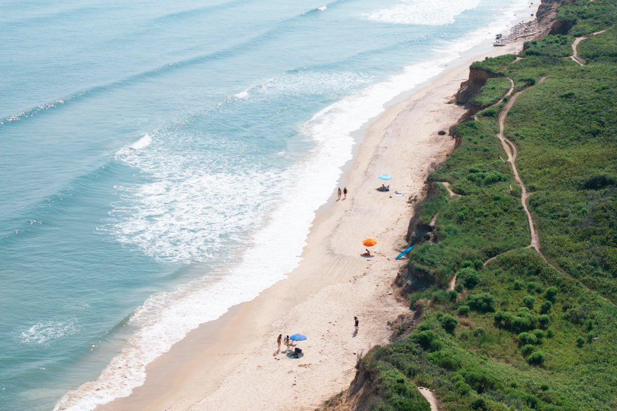 Aerial view of Shadmoor State Park in Montauk looking toward Poles surf break. Shot by drone, July 2025.