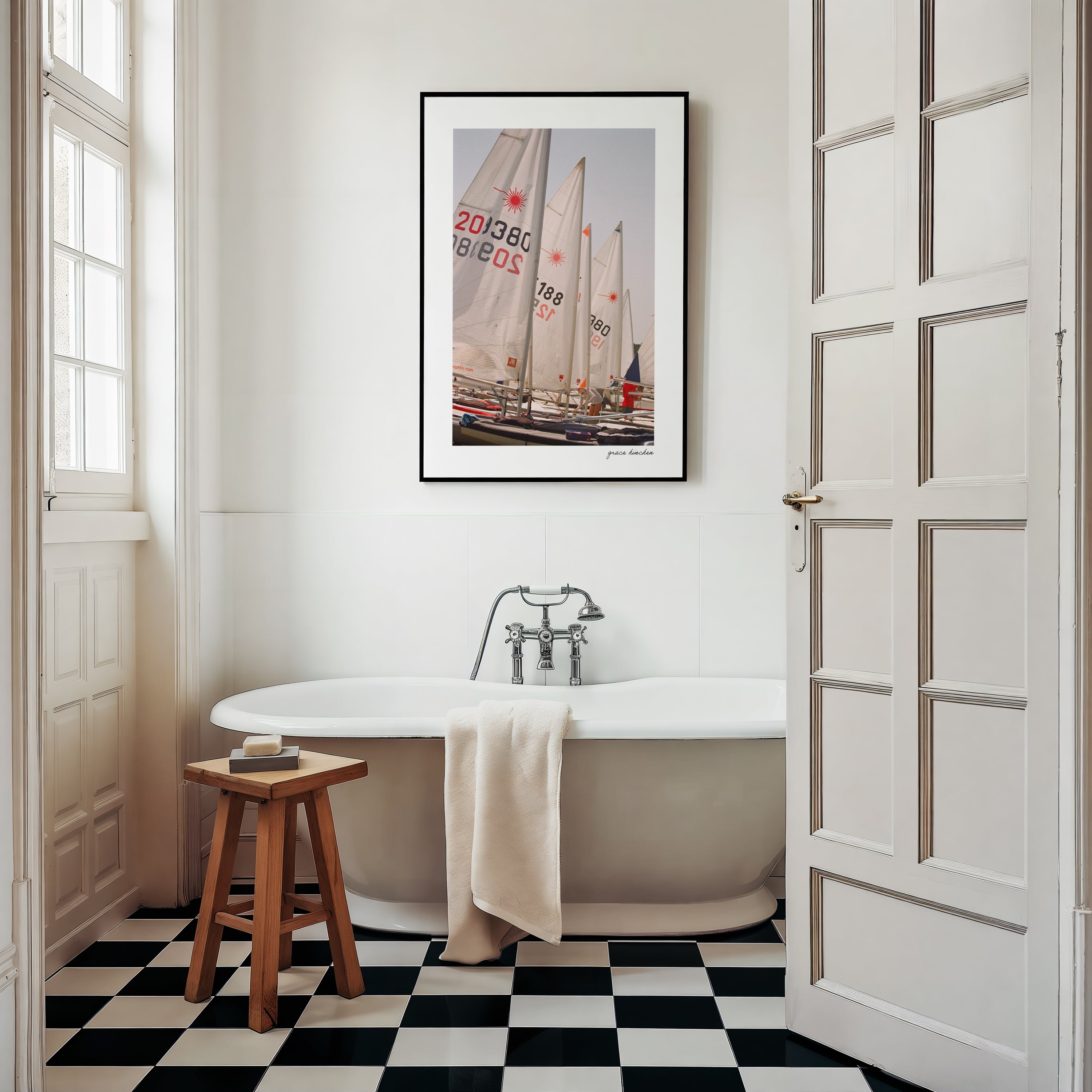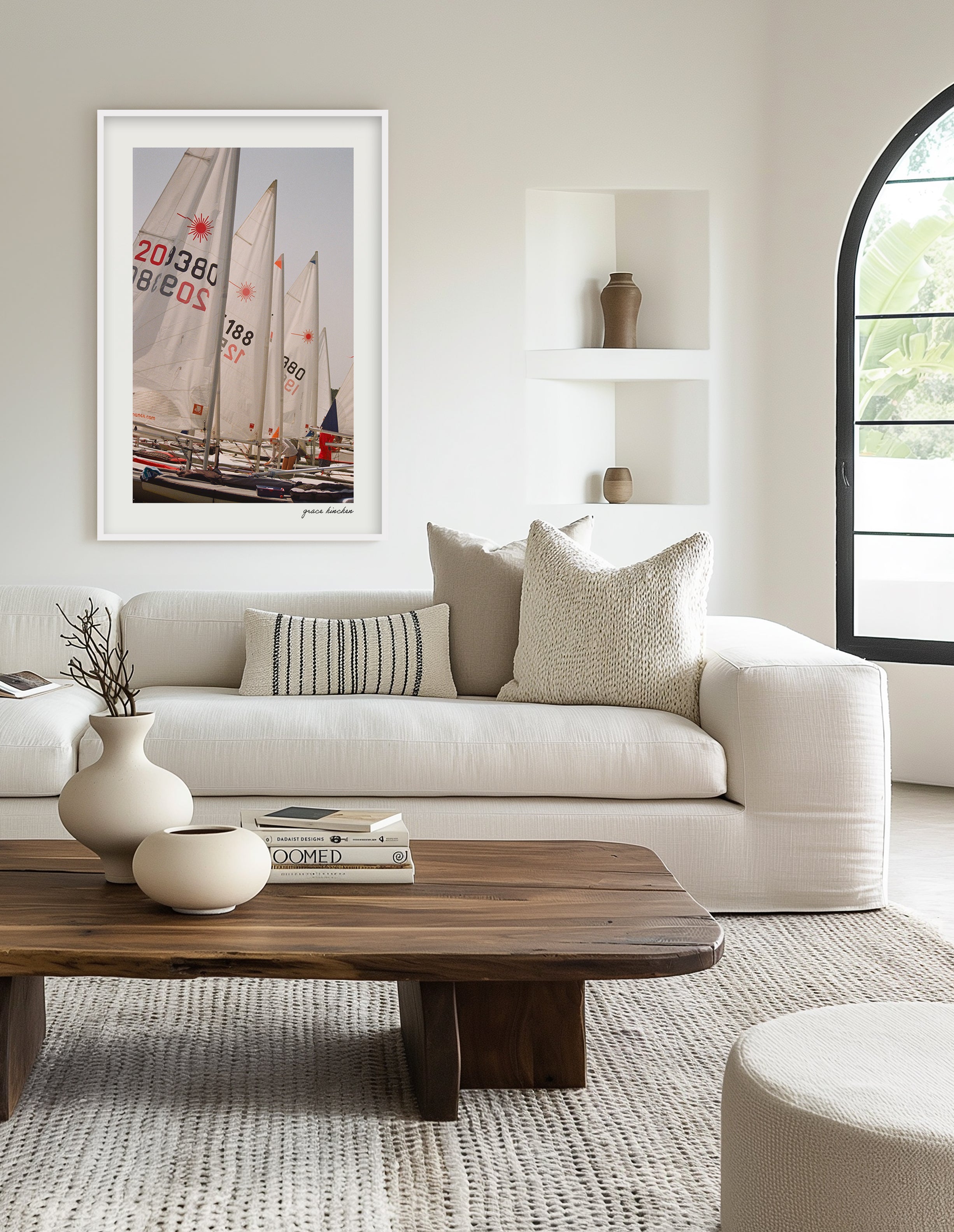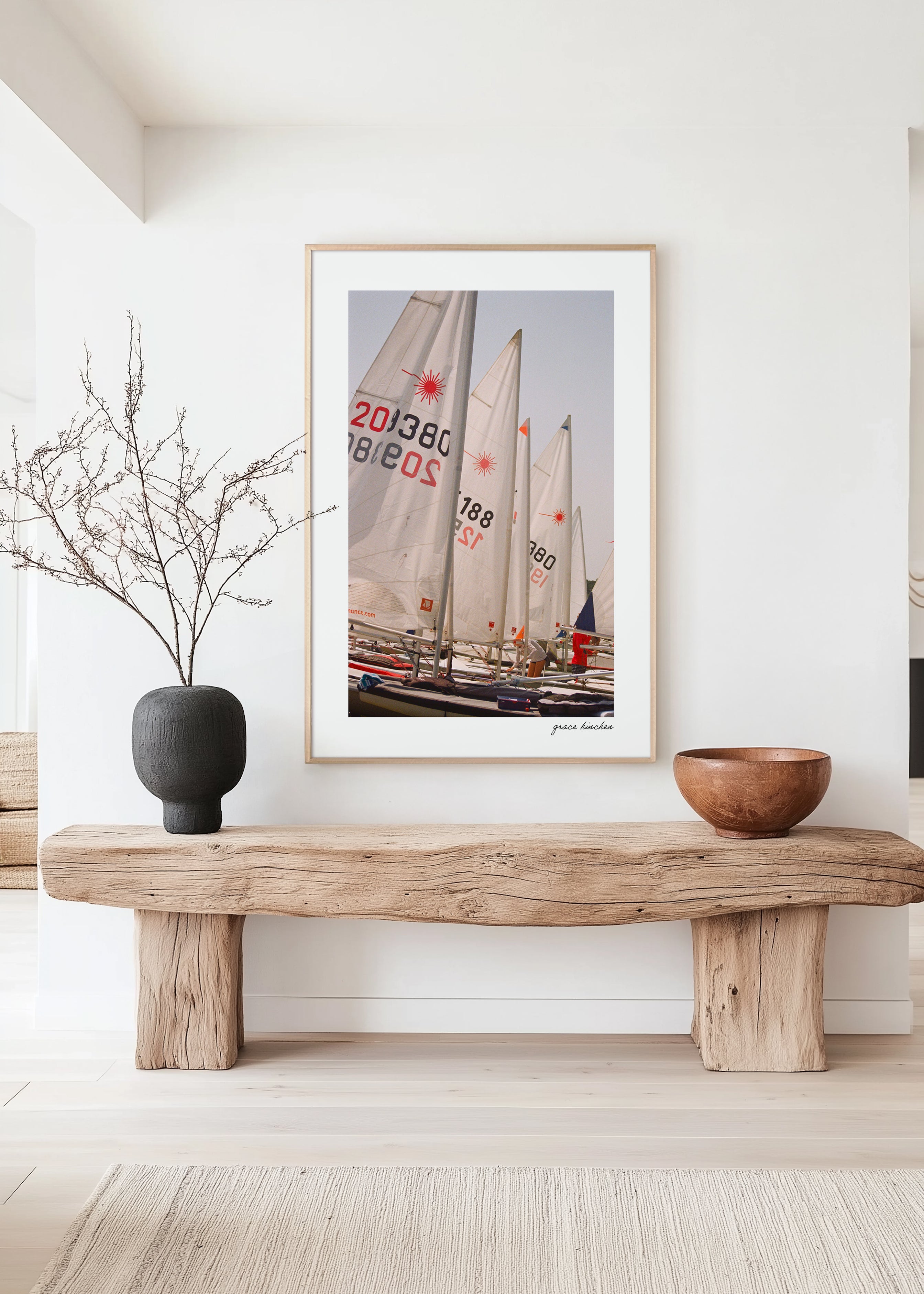 Laser sailboats during the Shelter Island Yacht Club regatta. Shot on film in July 2024.
