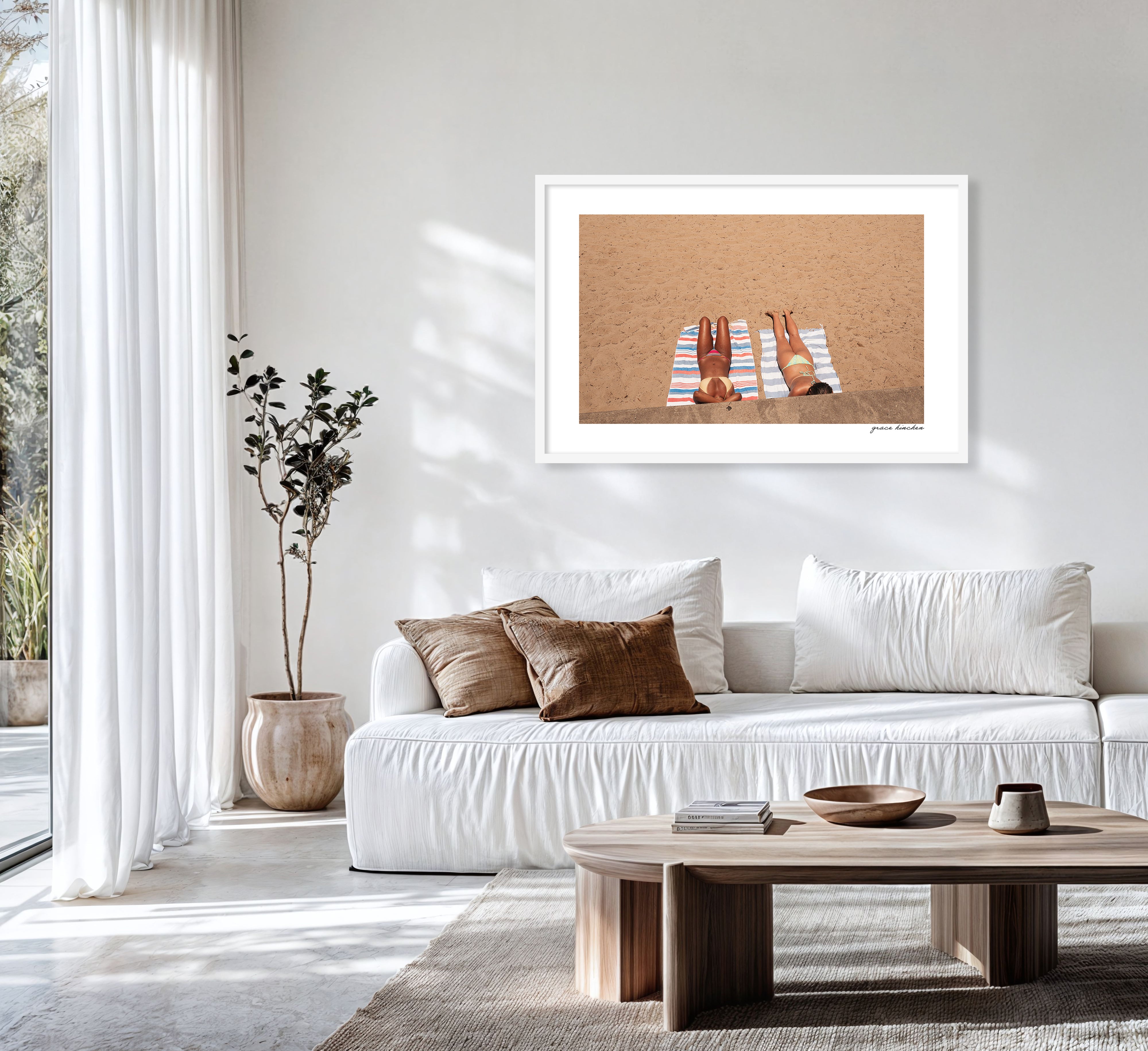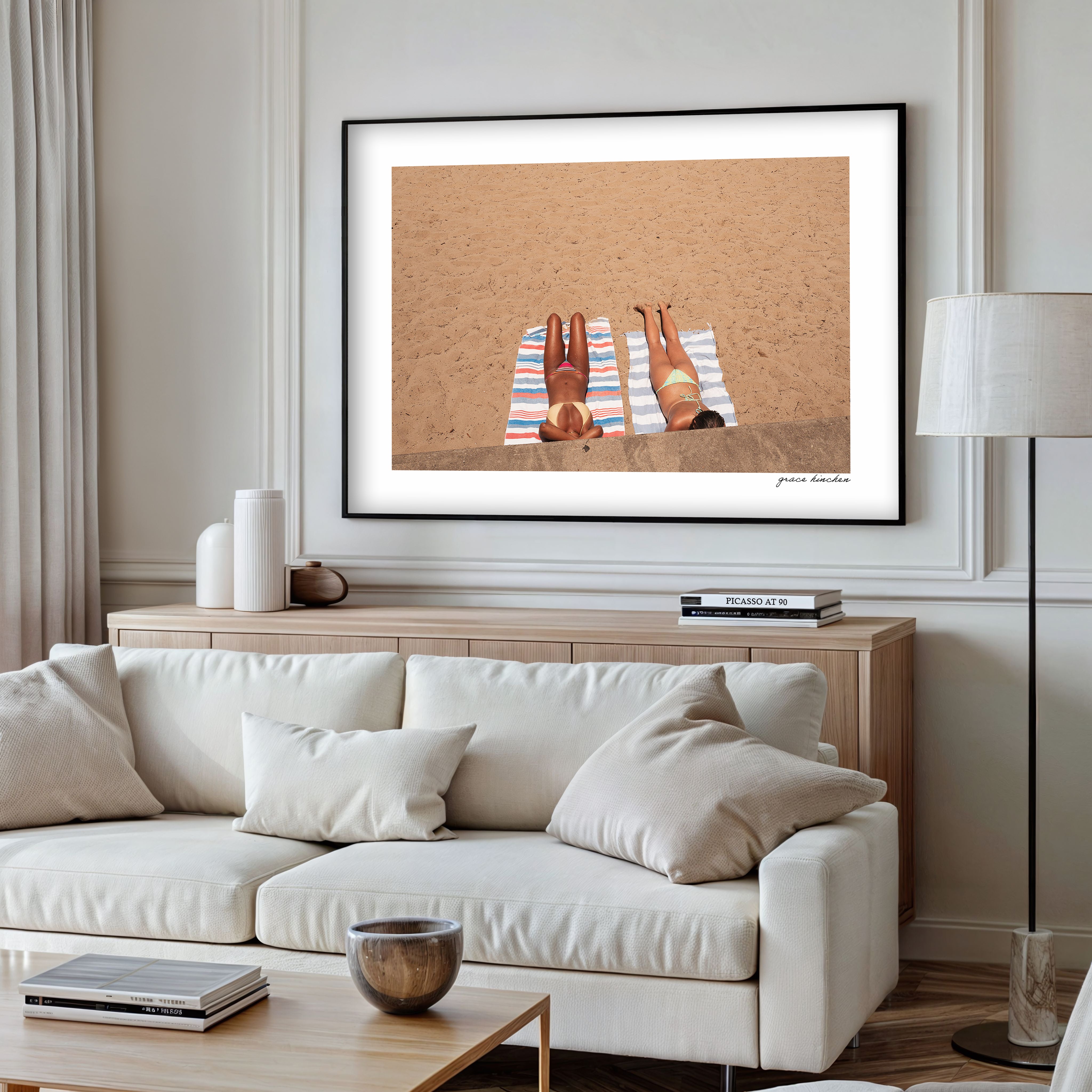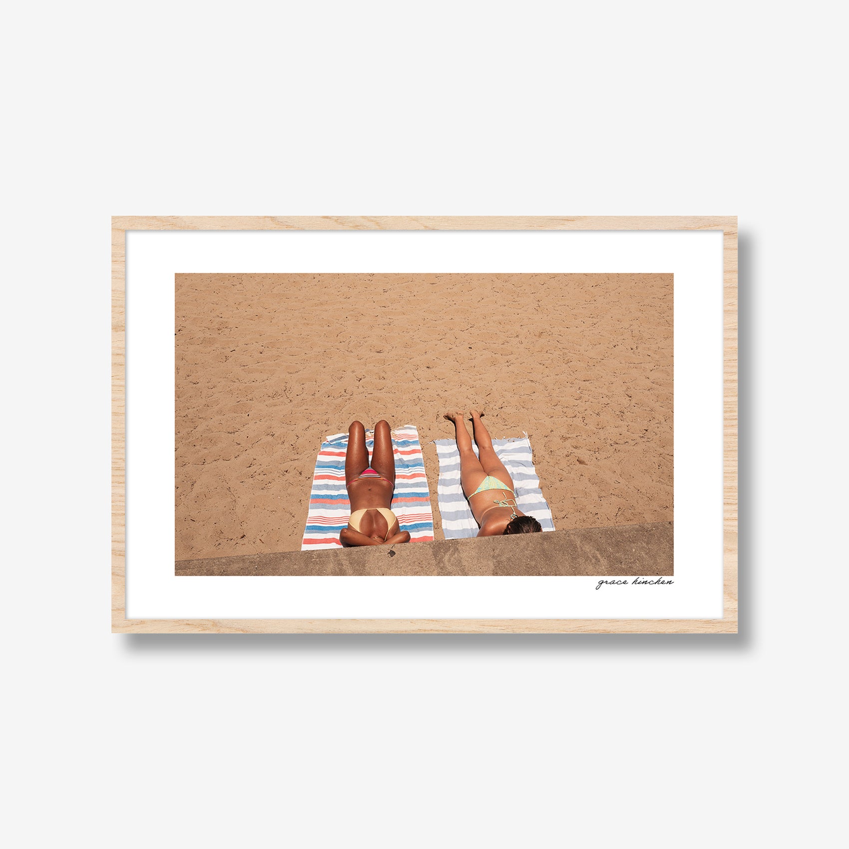 Two girls sunbathe on the sand at Manly Cove Beach, January 2025.
