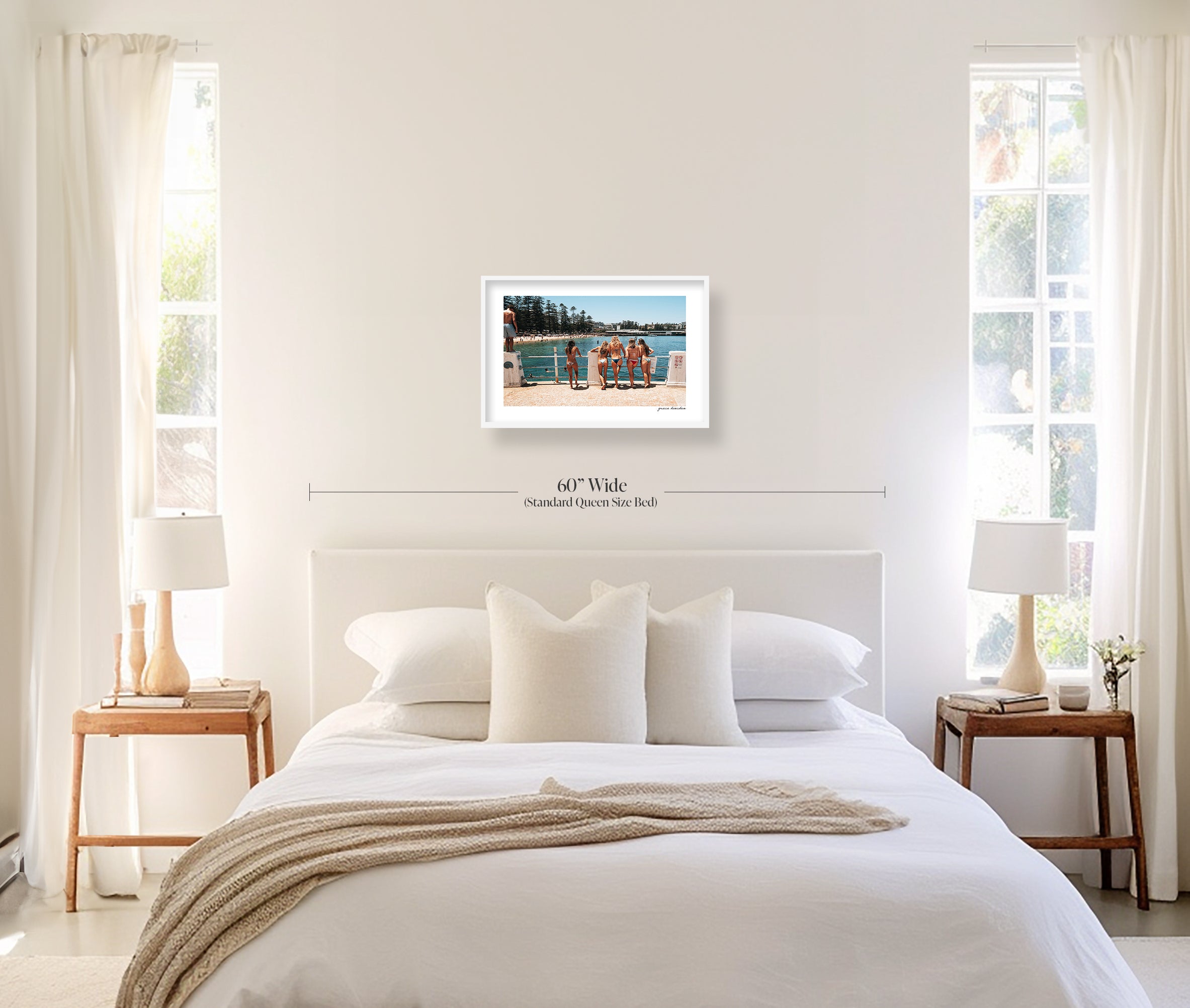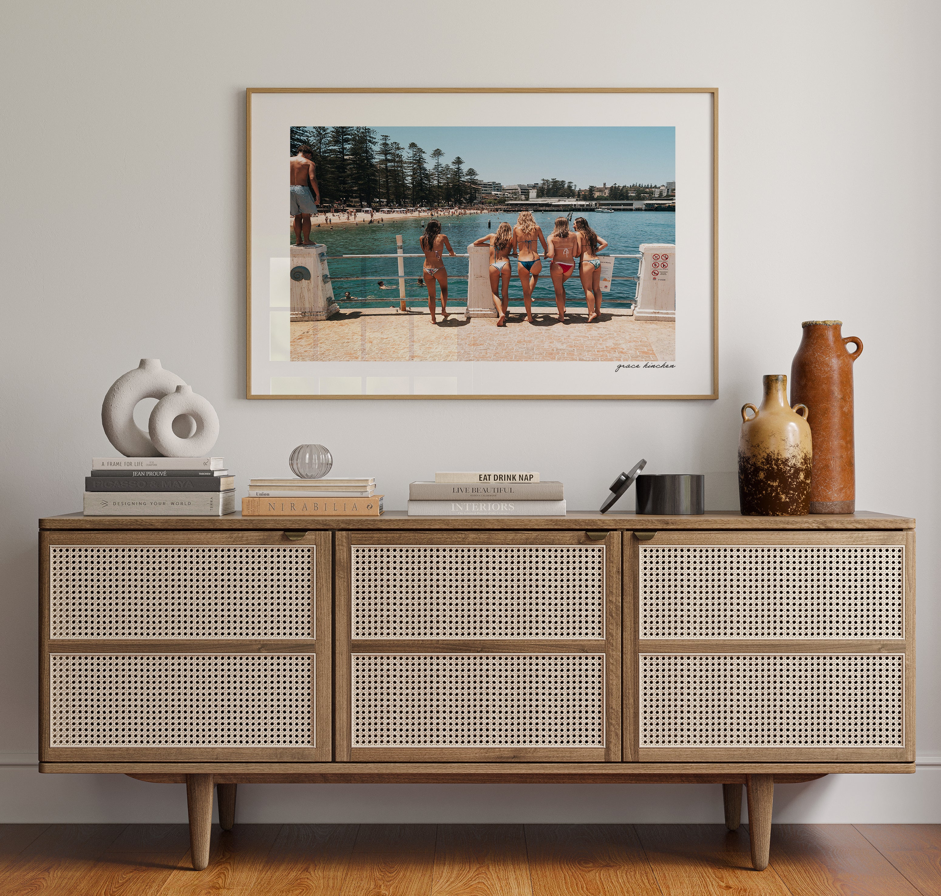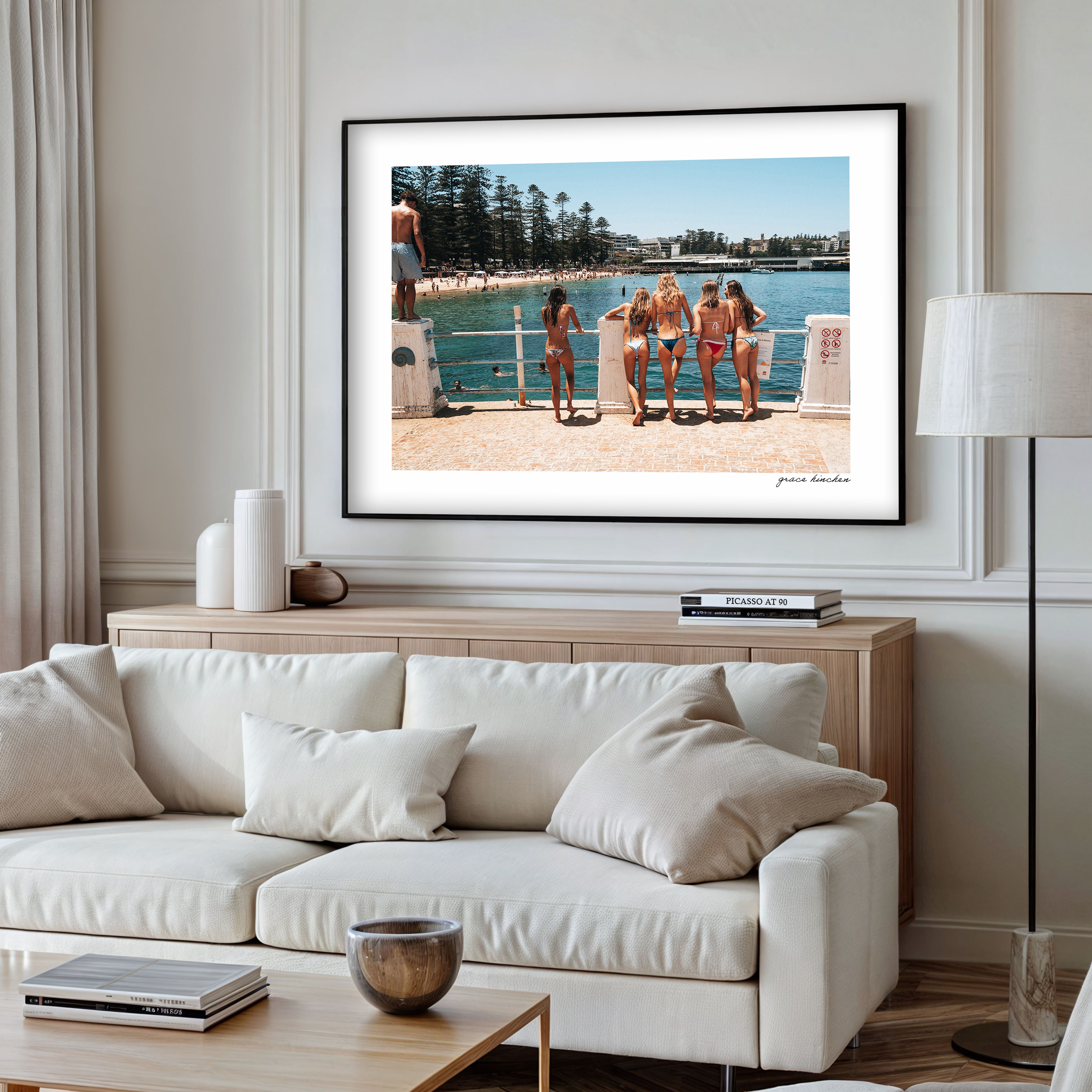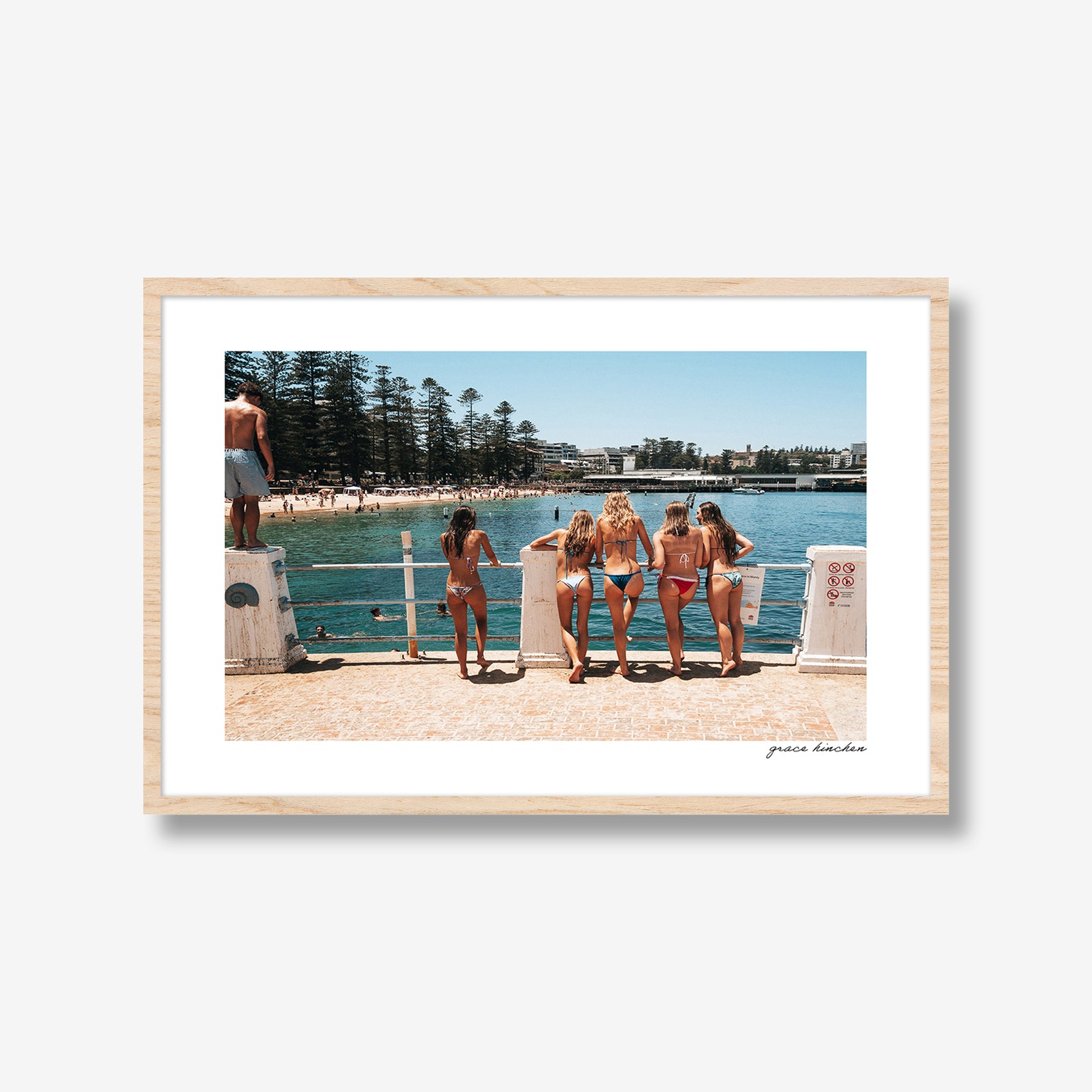 A group of girls prepare to leap from the Esplanade into the harbor at Manly, January 2025.
