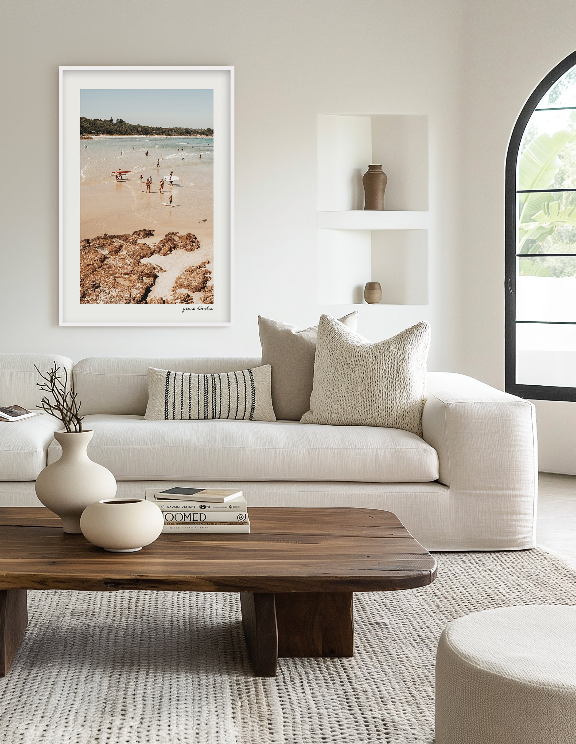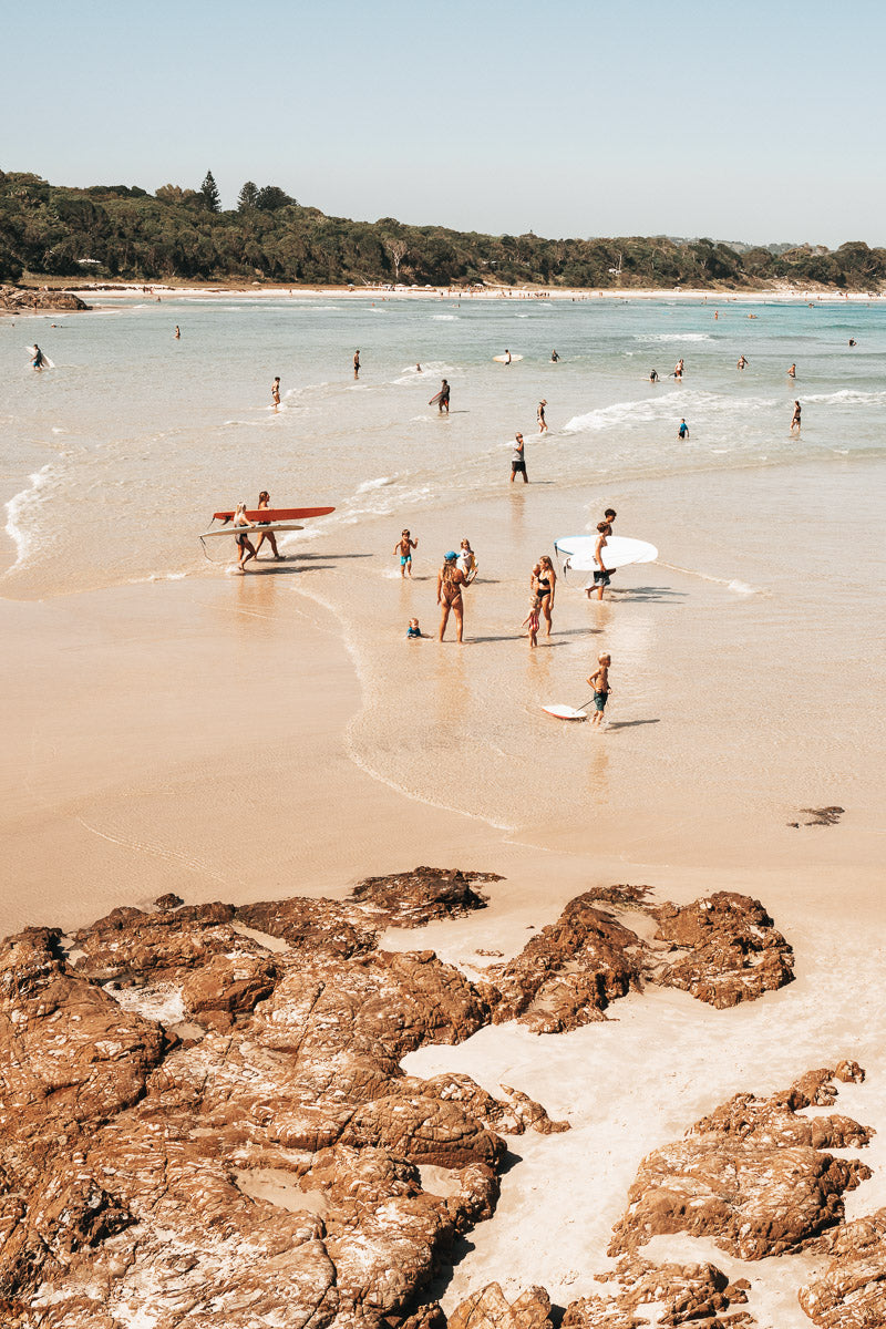 The Pass at Byron Bay offers a relaxed and natural setting for surfers and beachgoers alike, with earthy tones enhancing the beach's charm, January 2025.