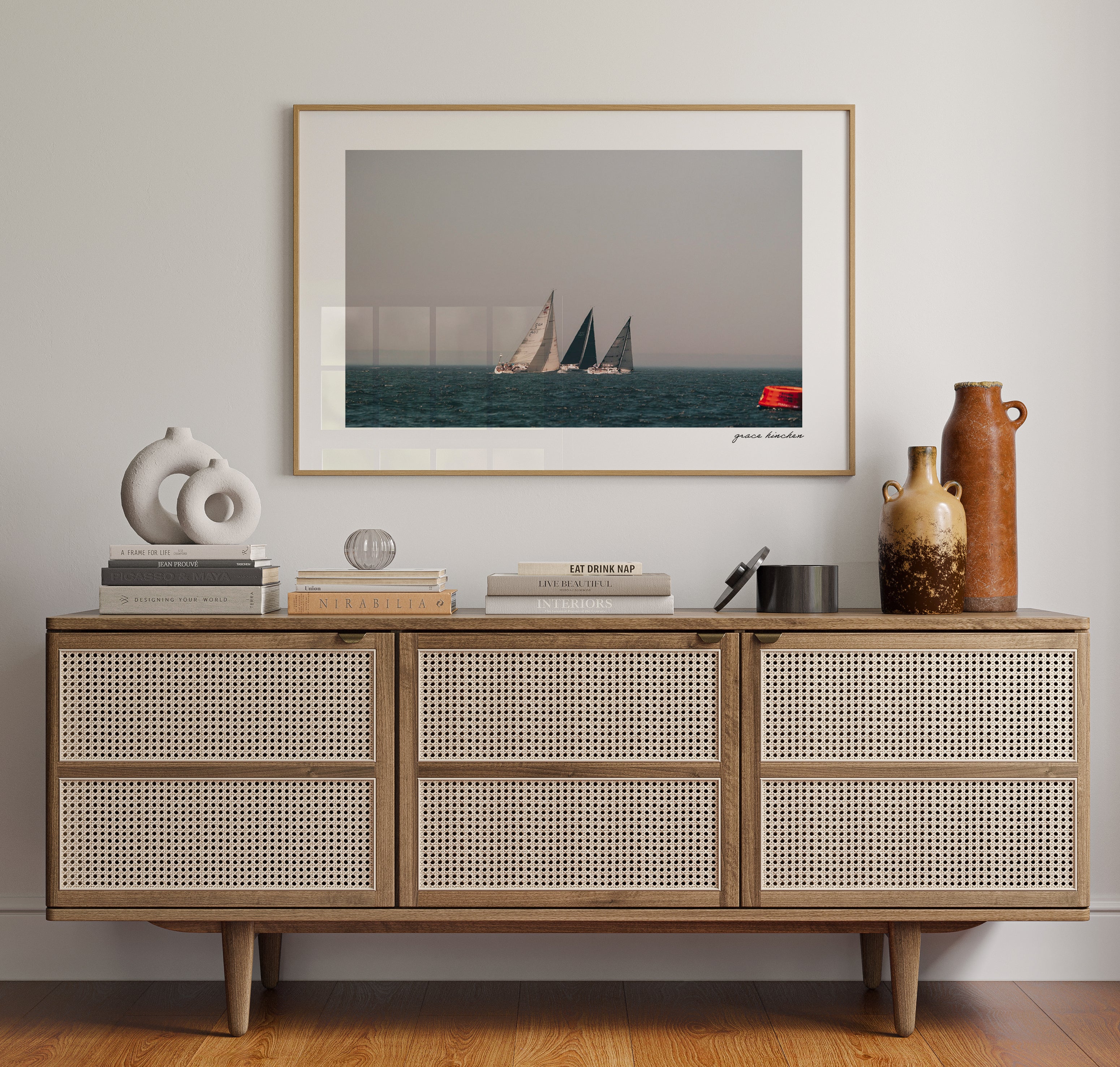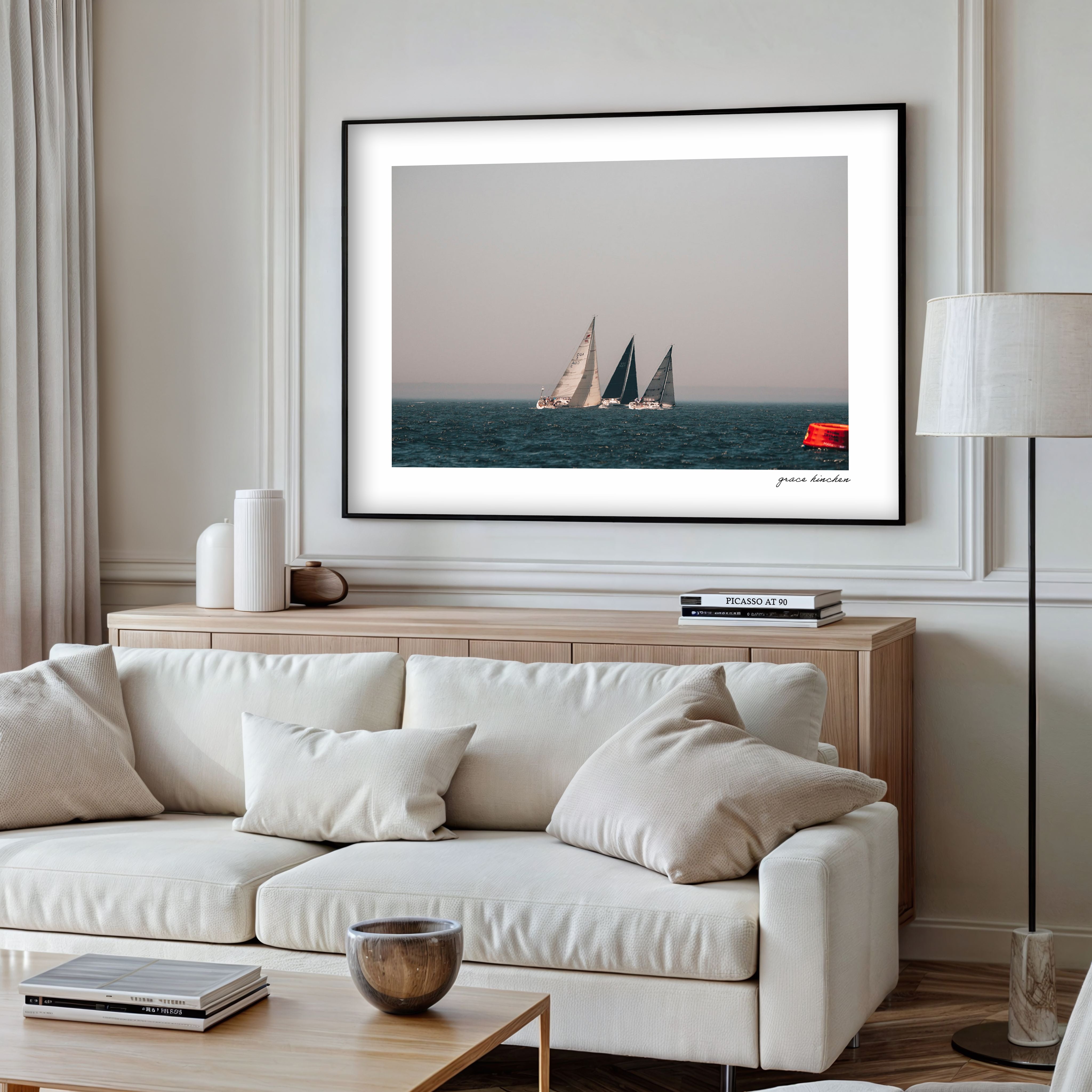 Each print is signed by Grace in the lower right corner. All frames are hand-made of wood, and available in three styles - natural oak, white or black finish. Frames are presented in a modern shadow box format, with ⅜ to ¼ inch spacing between the glass and archival dry mounted photographs. Small prints include a one-inch white border, while all other sizes feature a two-inch white border around the image, offering space to breathe and enhancing the visual presence once framed.
