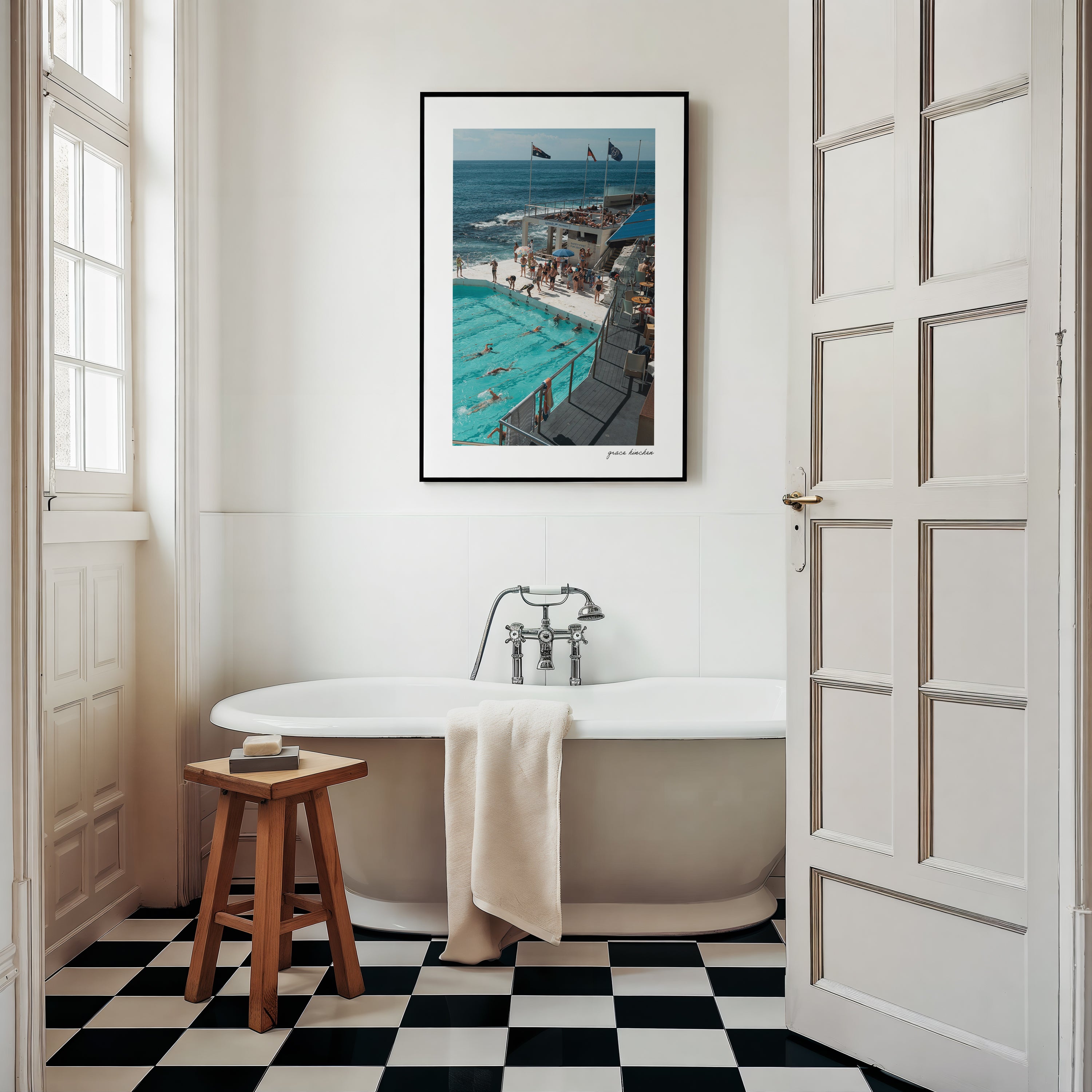 Members of the Bondi Icebergs take part in time trials in the lap pool, continuing the club's long-standing tradition, January 2025.