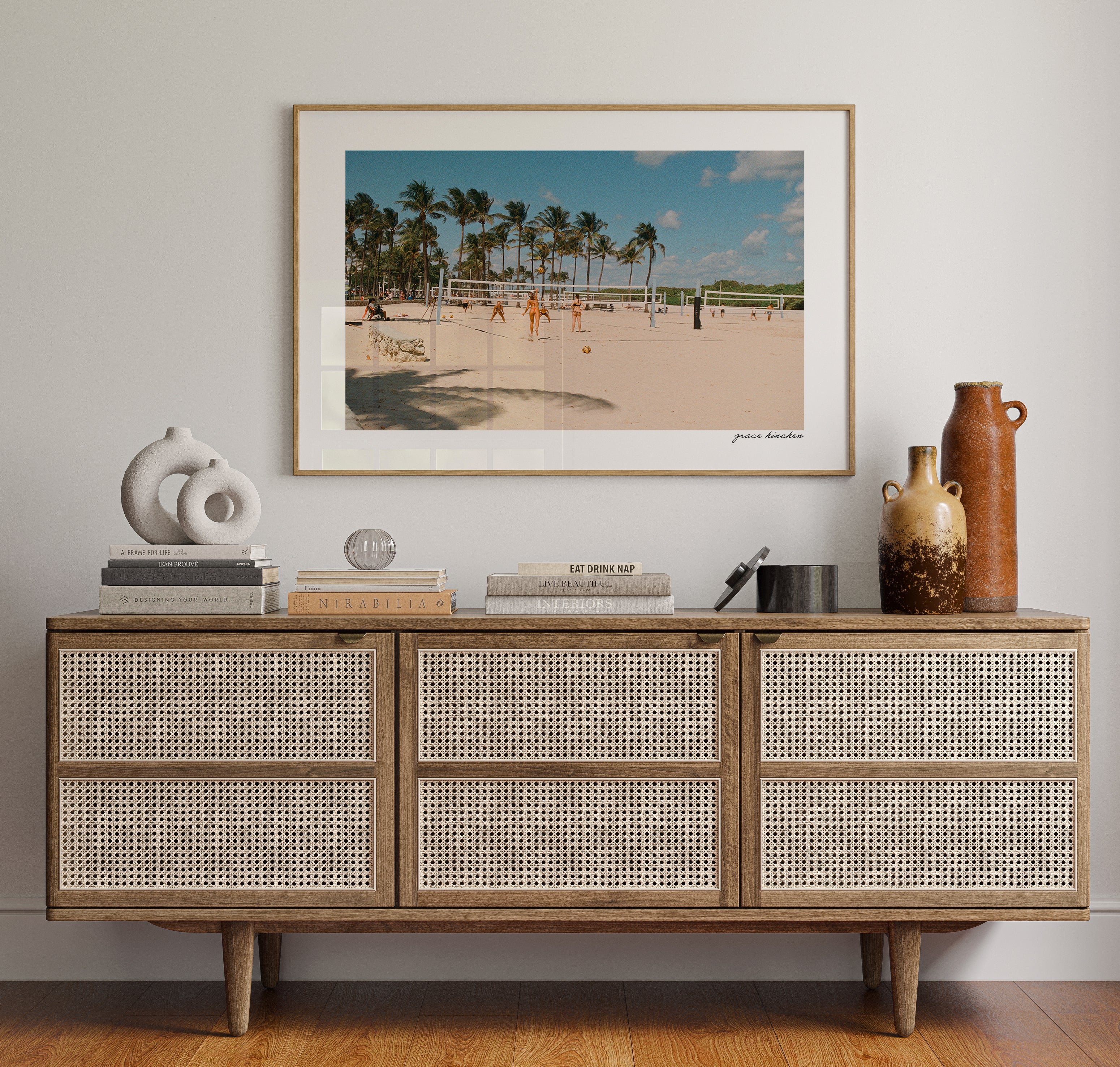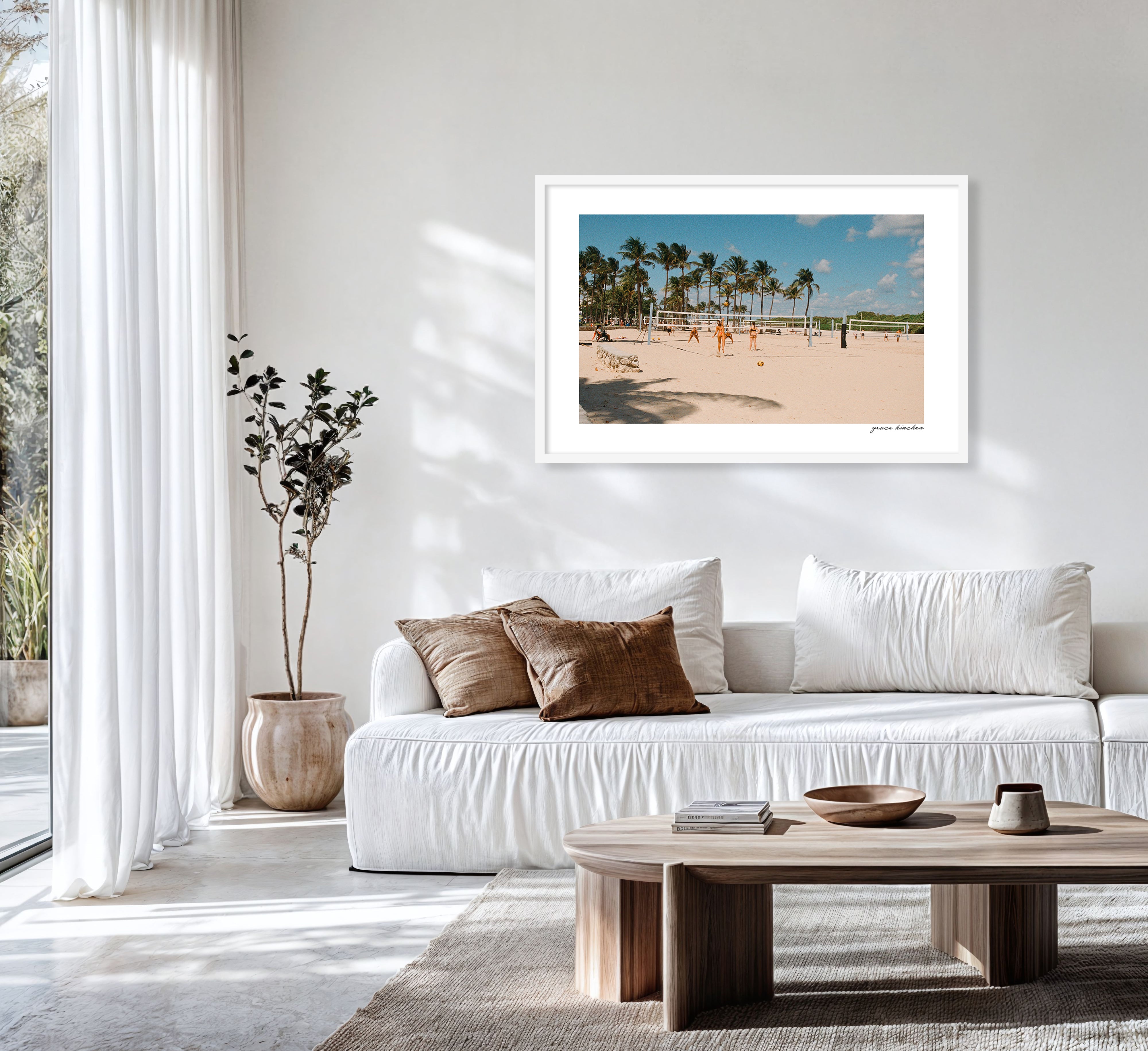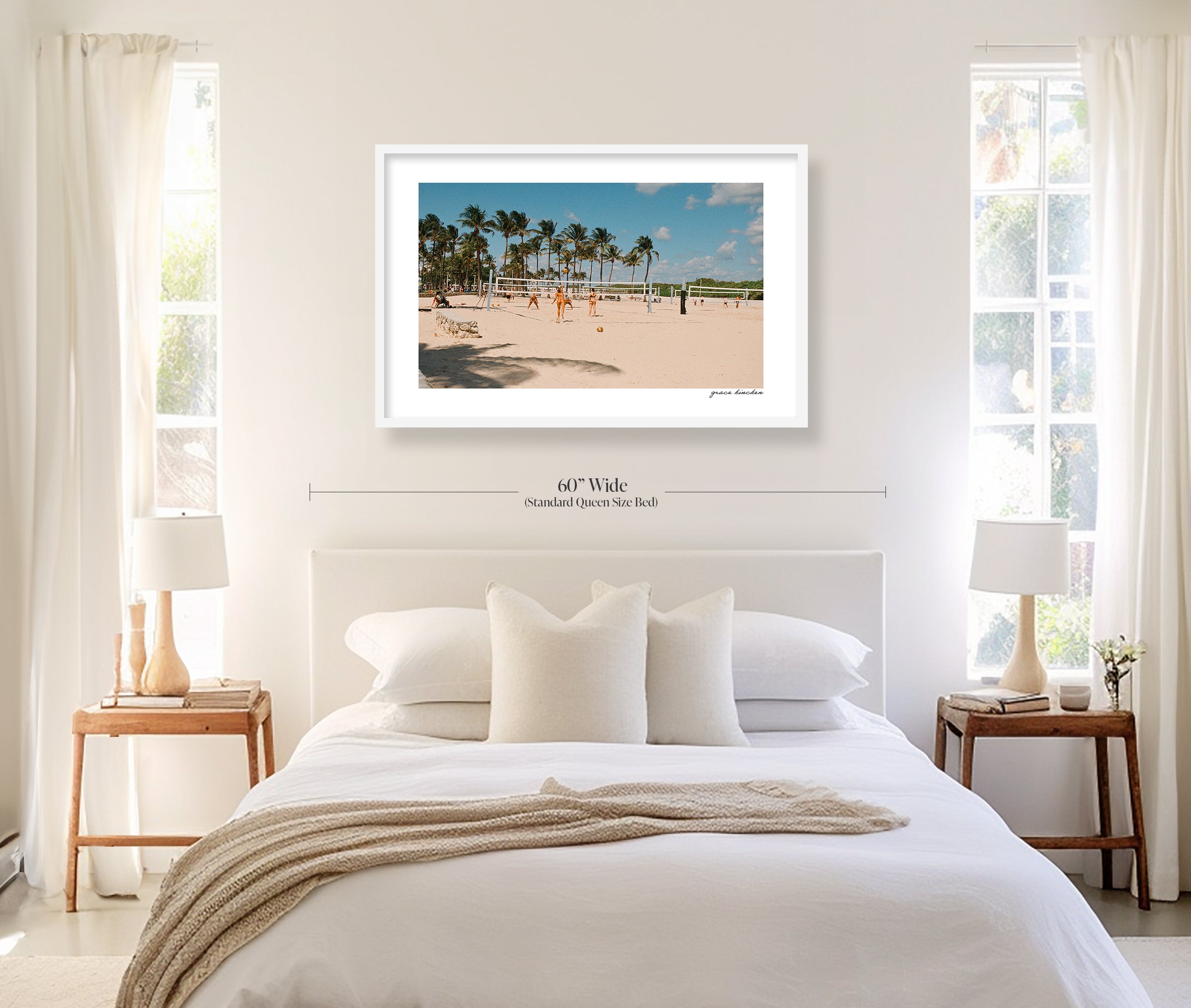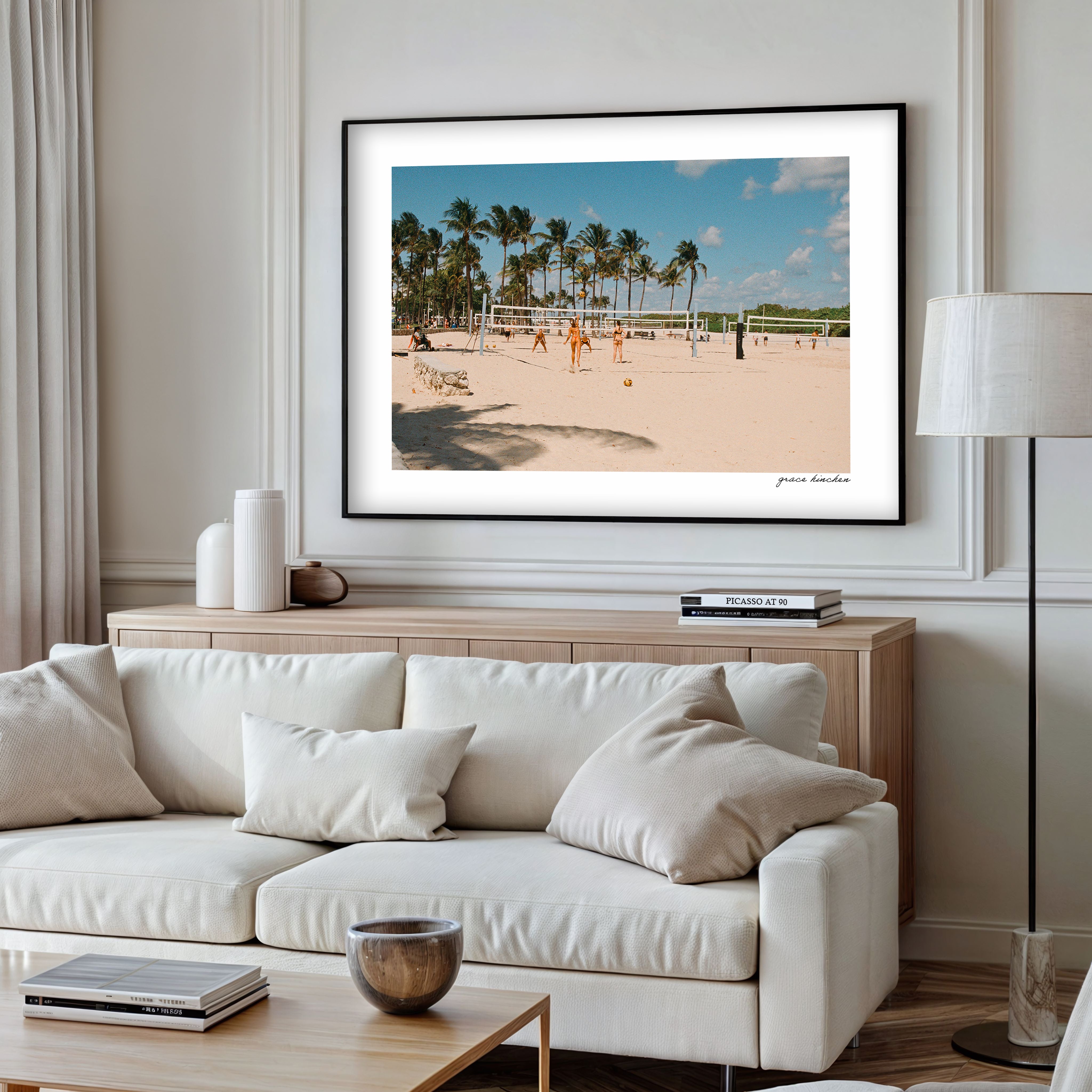 Women playing beach volleyball along Ocean Drive in South Beach, Miami, March 2025. Shot on 35mm film.