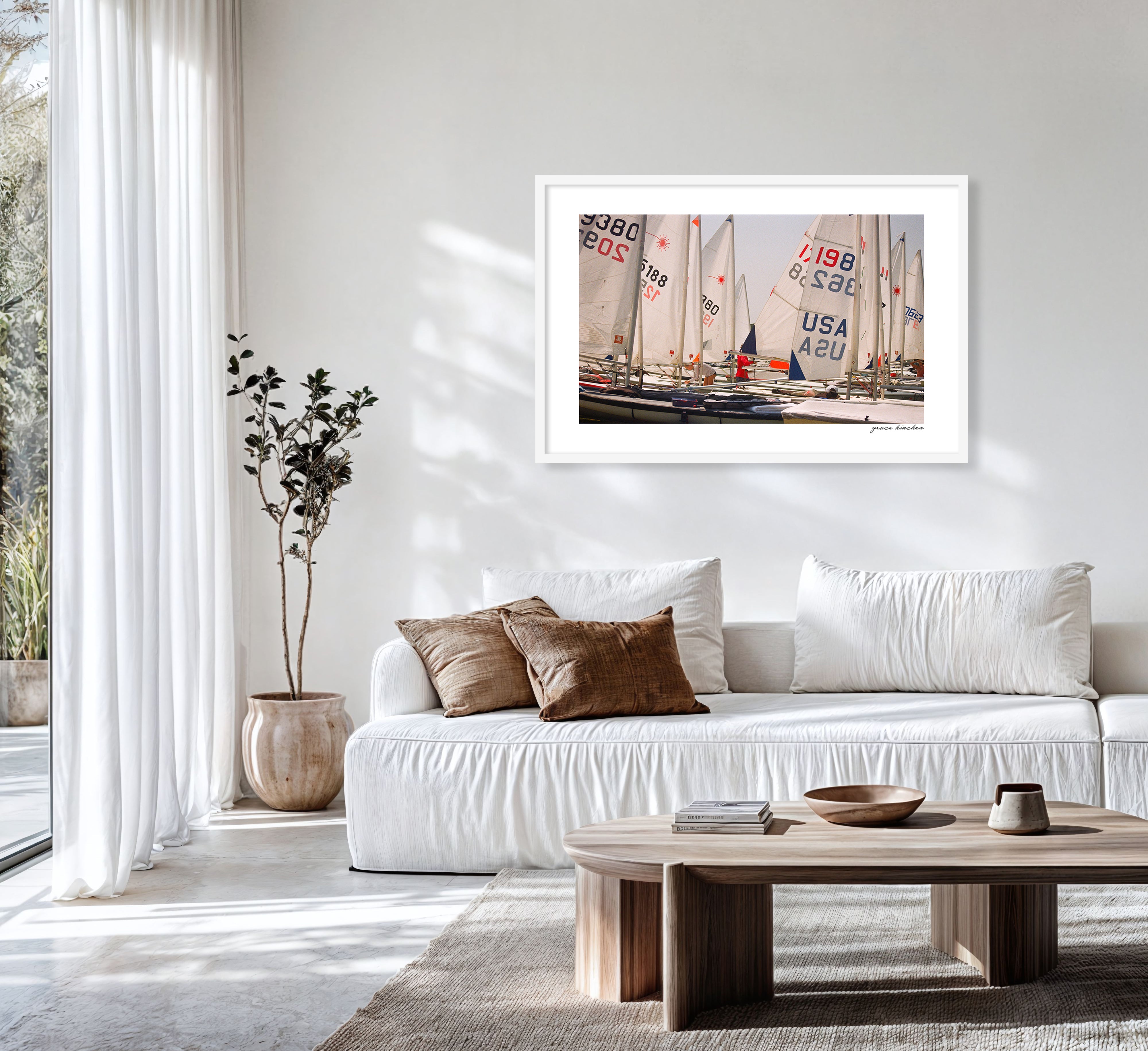 Young sailors prepare their boats on the docks of the Shelter Island Yacht Club ahead of a summer regatta, July 2024. Shot on film.